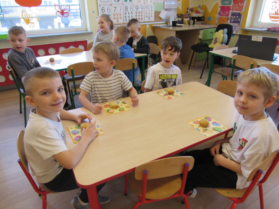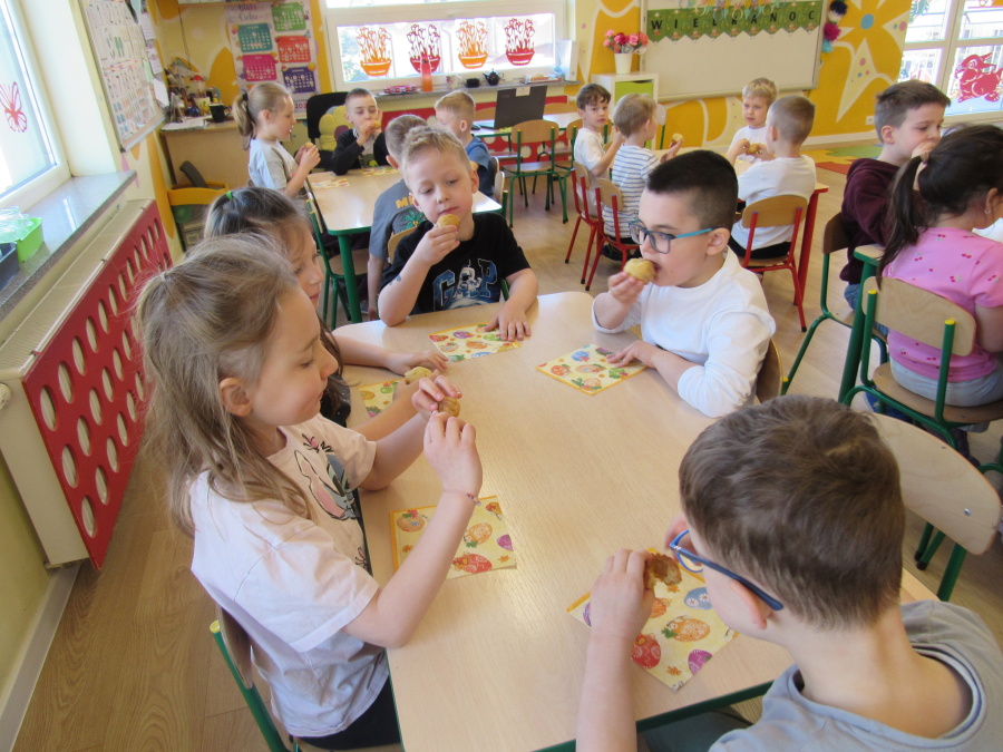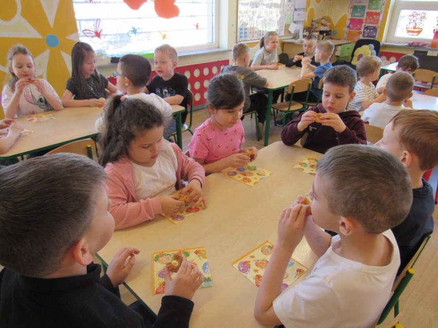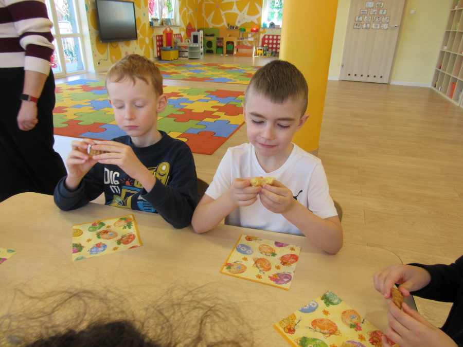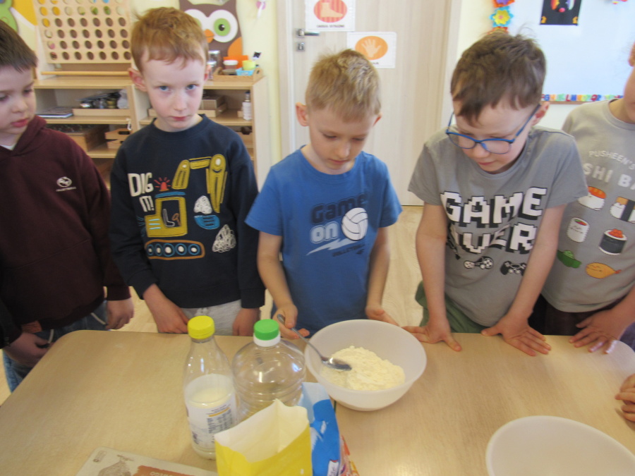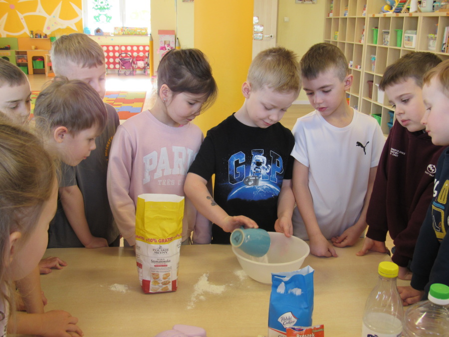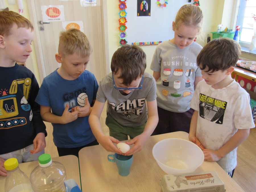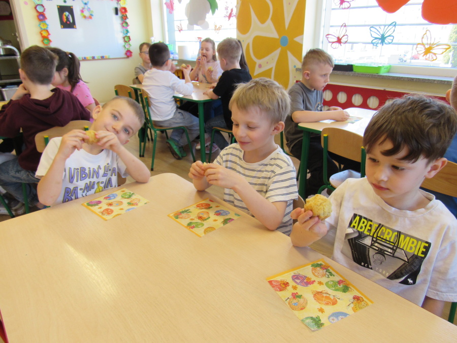 Zbliżające się Wielkanoc sprawiła, że gr. Kropeczek przystąpiła dziś do wypieków. Odmierzaliśmy składniki, przesypywaliśmy i przelewaliśmy, mieszaliśmy je ze sobą. Powstała masa trafiła do foremek. Czas oczekiwania na upieczenie i ostygnięcie babeczek bardzo się nam dłużył.Na szczęście warto było czekać. Babeczki i króliczek były przepyszne.