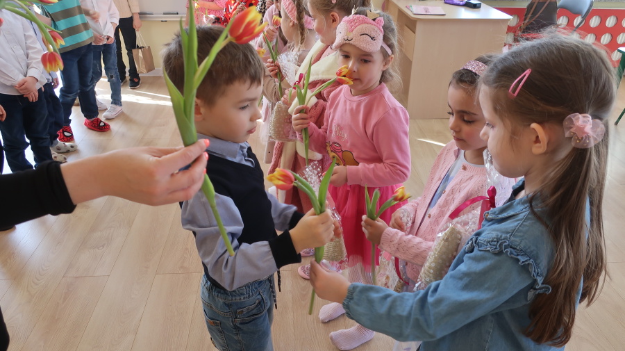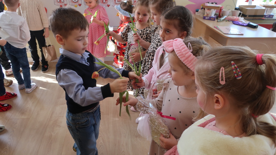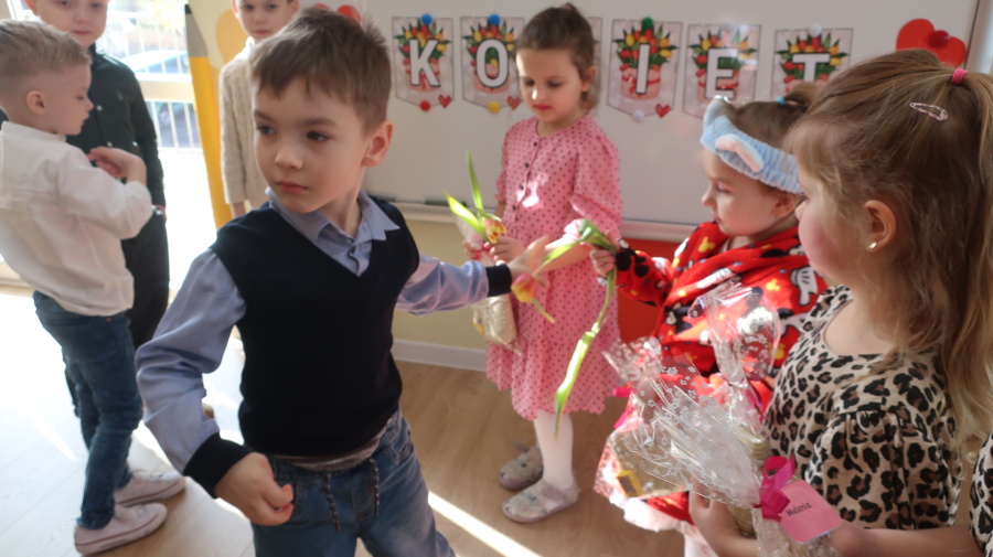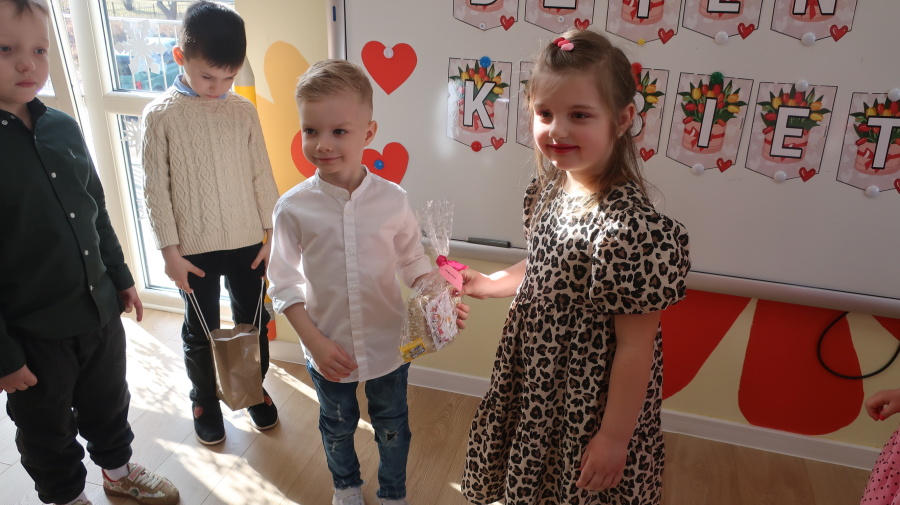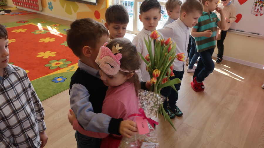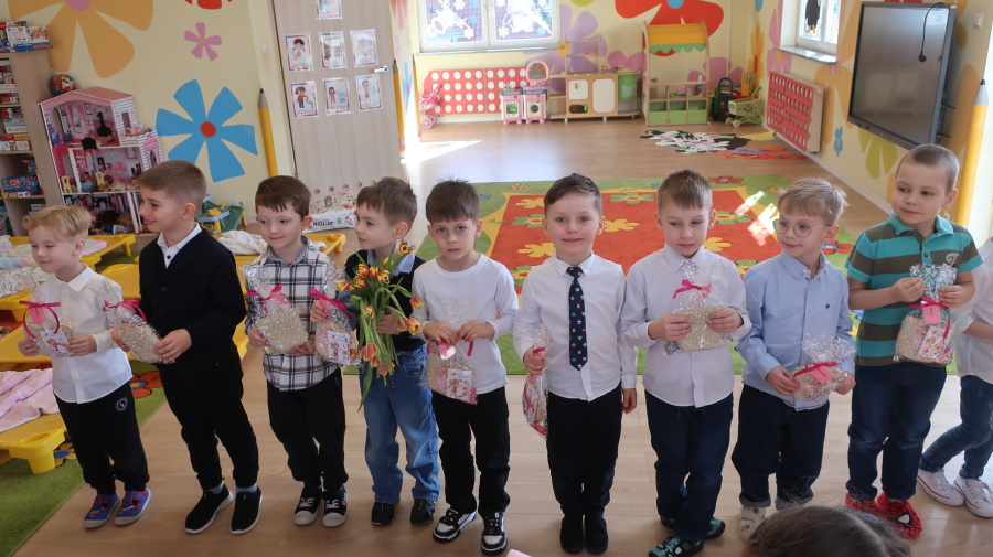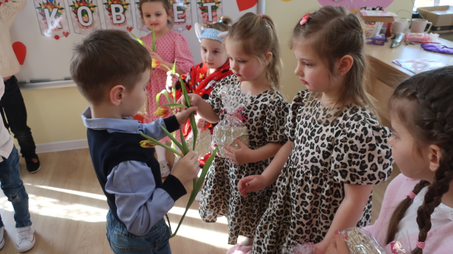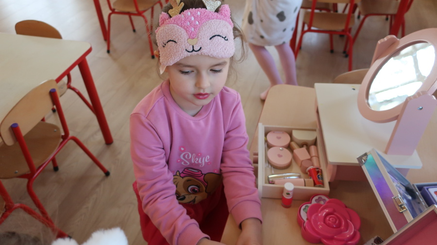 Dzisiaj w naszym przedszkolu świętowaliśmy Dzień Kobiet. Z tej okazji przygotowaliśmy dla dziewczynek wyjątkowy, relaksujący dzień w przedszkolnym SPA. Dziewczynki ubrane w szlafroczki odpoczywały na leżakach, a na oczach miały plasterki ogórka – jak w prawdziwym salonie urody. Był to czas relaksu, wyciszenia i dobrej zabawy. Nie zabrakło także atrakcji w postaci hydromasażu stóp w wodzie z bąbelkami, który sprawił dzieciom wiele radości. Dziewczynki mogły również korzystać z dziecięcych kosmetyków, malować paznokcie i poczuć się naprawdę wyjątkowo. Miłym akcentem tego dnia było również to, że chłopcy wręczyli dziewczynkom drobne upominki, składając im serdeczne życzenia. Dzień upłynął w bardzo miłej atmosferze, pełnej uśmiechu, radości i wspólnej zabawy.