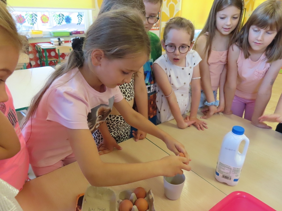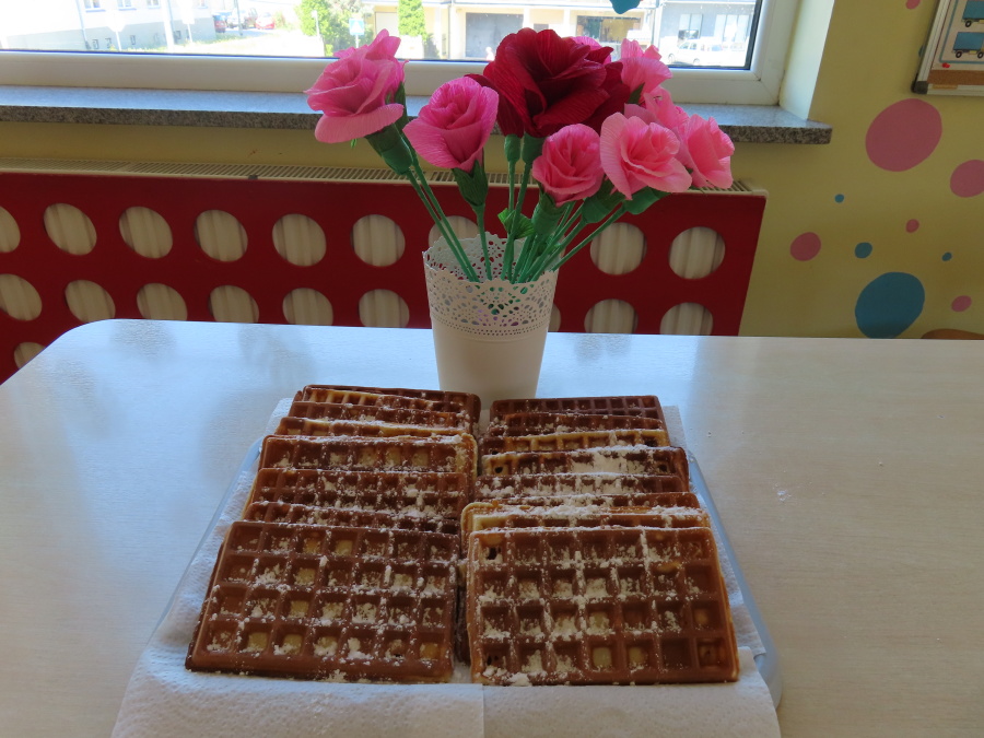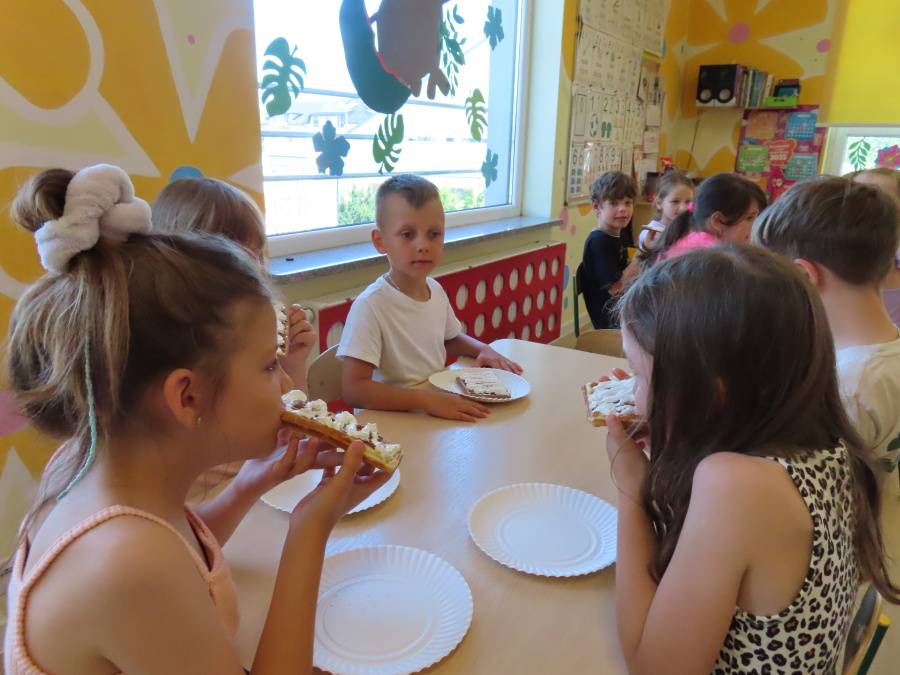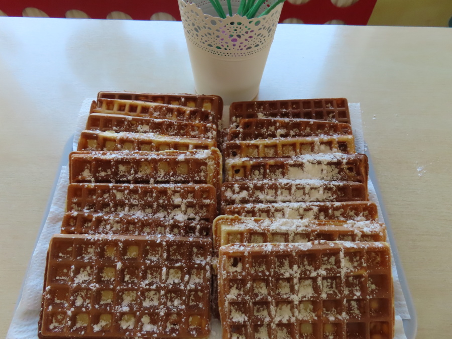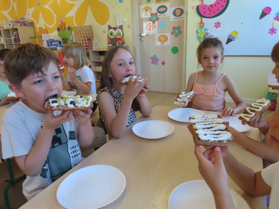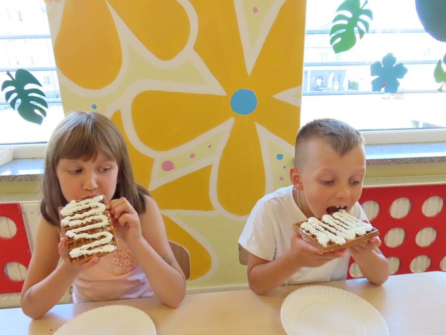 Gofry - ulubiony przysmak nad polskim morzem. Dzisiejsza pogoda: upalna, słoneczna i zachęcająca do kąpieli sprawiła, że przygotowane dziś w gr. Kropeczek gofry przywołały wspomnienia letniej bryzy nad Bałtykiem. Dzieci odmierzały składniki, mieszały je mikserem. Przygotowane ciastu upiekła pani Ania. Przedszkolaki wybierały dodatki: cukier puder, bitą śmietanę czy owoce. Wszystkie gofry zostały spałaszowane ze smakiem.