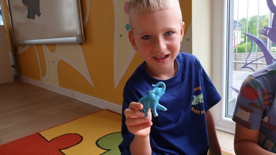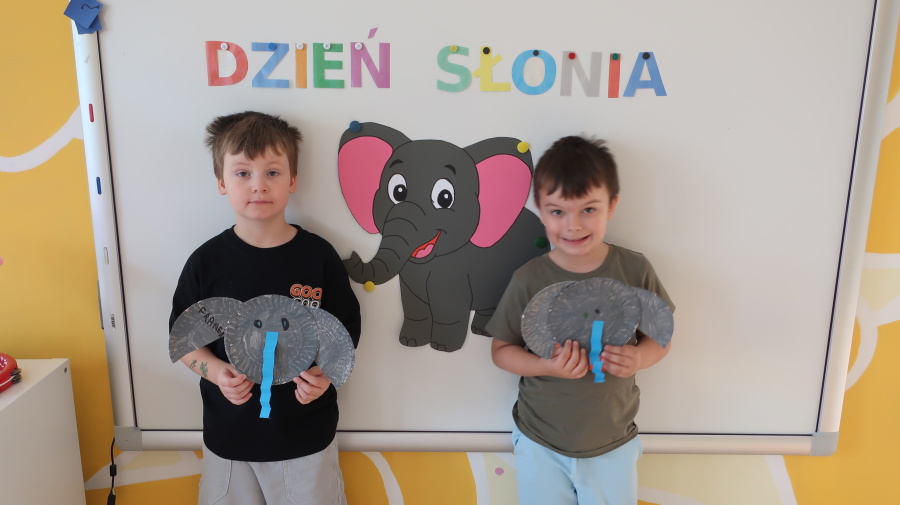 Dzień Słonia w przedszkolu ???????? Dziś nasze przedszkole opanowały... słonie! ???? Dzieci poznały mnóstwo ciekawostek o tych ogromnych zwierzakach – że mają świetną pamięć, uwielbiają błotne kąpiele i trąbią, kiedy tylko chcą. Potem przyszedł czas na słoniowy taniec! Przy wesołej piosence wszyscy udawali słonie – były trąby z rąk, tupanie, machanie uszami i dużo śmiechu! Na koniec powstały piękne słonie z papierowych talerzyków – każdy wyjątkowy, zupełnie jak nasze przedszkolaki!