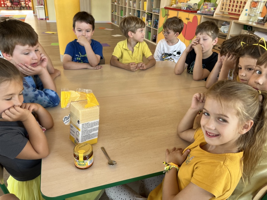W Kropeczkach dziś pszczoły rządziły! Dzieci dowiedziały się, jak powstaje miód – nie z fabryki, tylko z ciężkiej pracy malutkich, skrzydlatych robotnic. Poznały też różne pszczele ciekawostki – że królowa pszczół ma własny tron (prawie!), a pszczoły tańczą, żeby się dogadać! Było też bzycząco w rytmie hitu „Pszczółka Maja” – nogi same tańczyły! ???????? Na deser – miodzik na wafelku, palce lizać! A na koniec każdy zrobił swój własny plaster miodu z papieru – bez żądeł, za to z dużą dawką kreatywności! Słodko, wesoło i z humorem – tak właśnie świętują Kropeczki! ????????