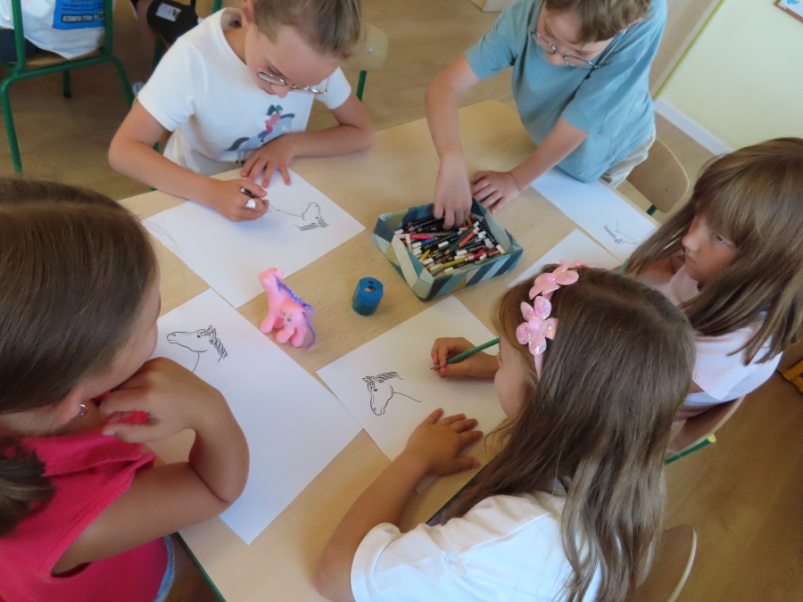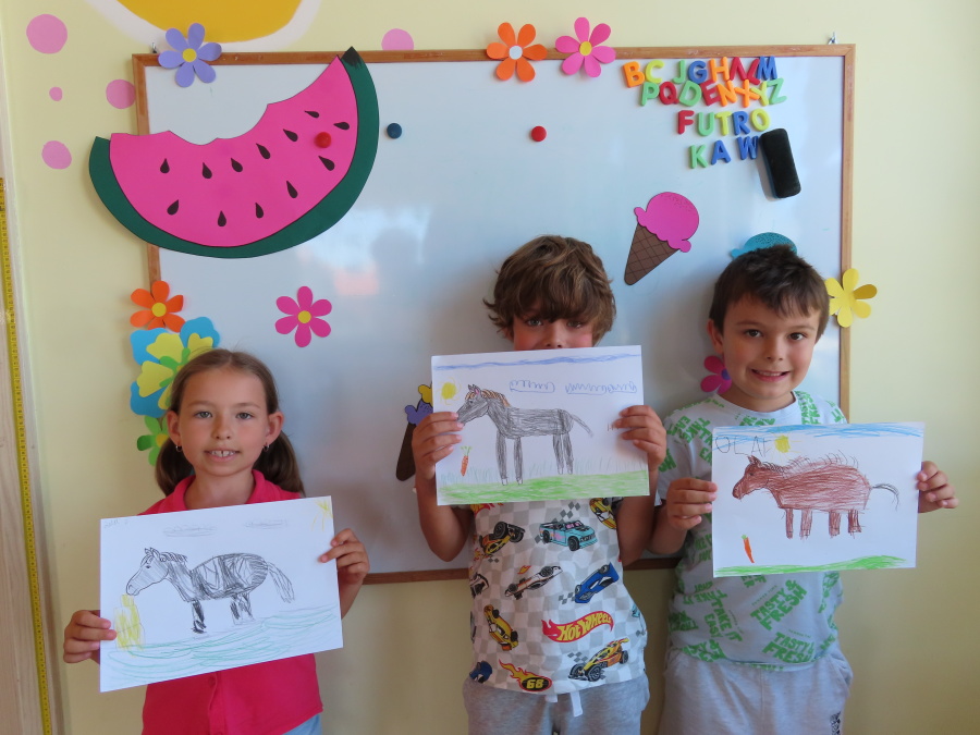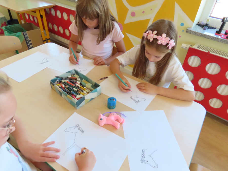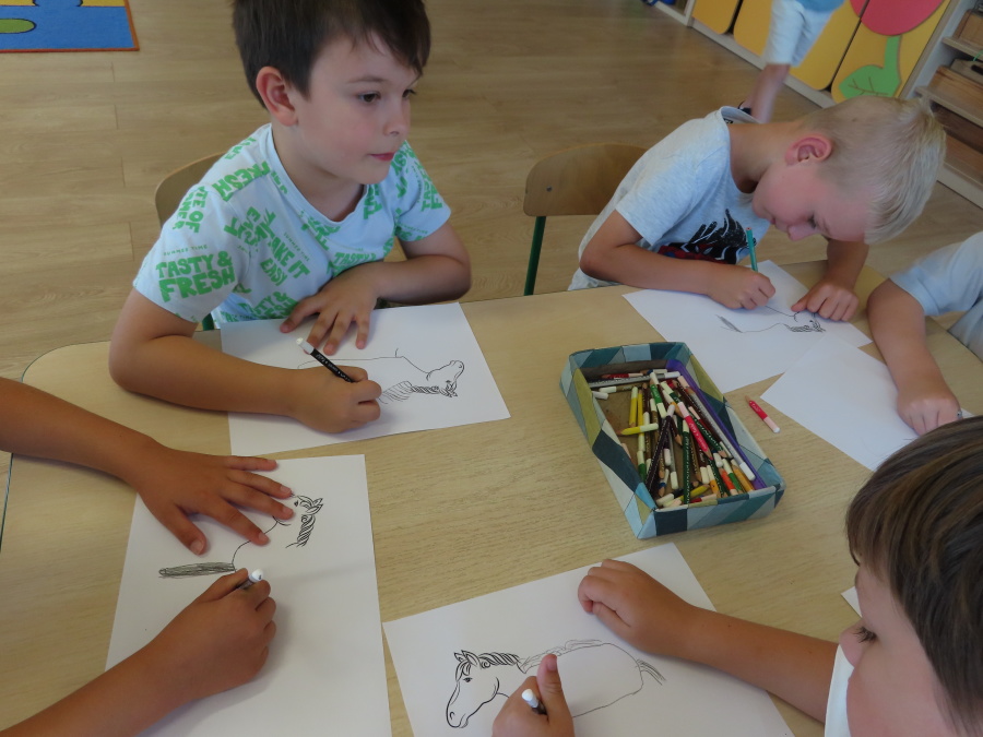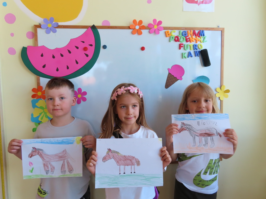 Dziś w gr. Kropeczek odbył się Dzień konia. Dzieci poznały wygląd i zwyczaje tego zwierzęcia oraz pożywienie. ????????????Dowiedziały się także, jaką rolę pełnił koń w życiu człowieka kiedyś, a jaką dziś. ????☀️ Kropeczki poznały również dyscypliny sportowe z wykorzystaniem konia: wyścigi konne, skok przez przeszkody oraz wyścigi zaprzęgów. Przedszkolaki uczestniczyły w zabawach ruchowych naśladując sposób poruszania się i odgłosy konia. Na koniec każde dziecko wykonało pracę plastyczną.
