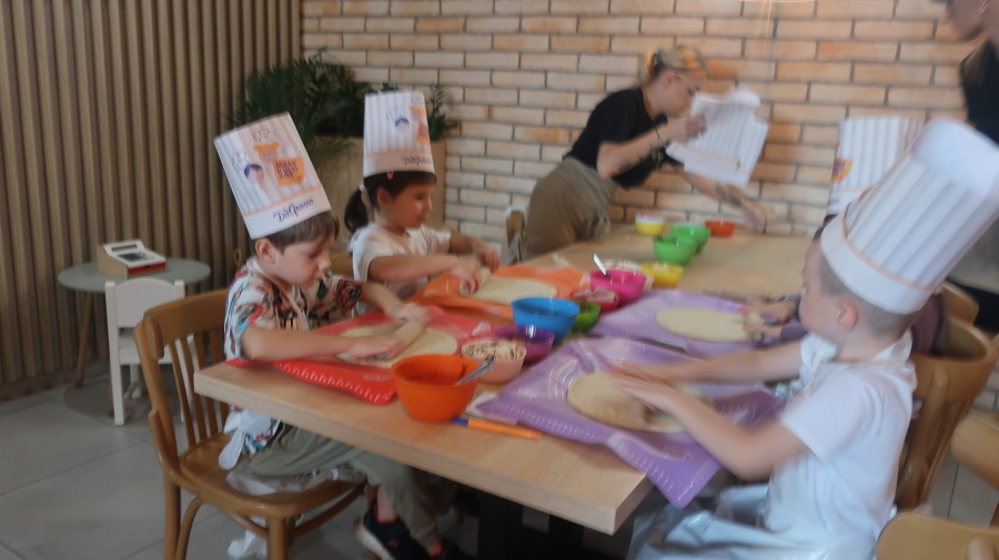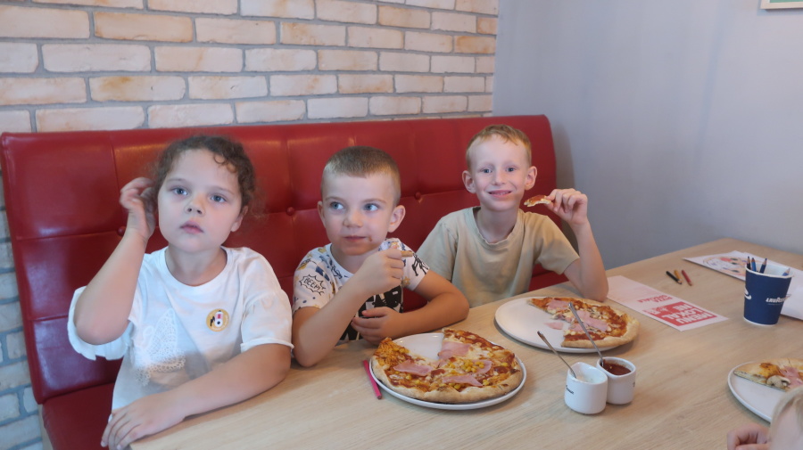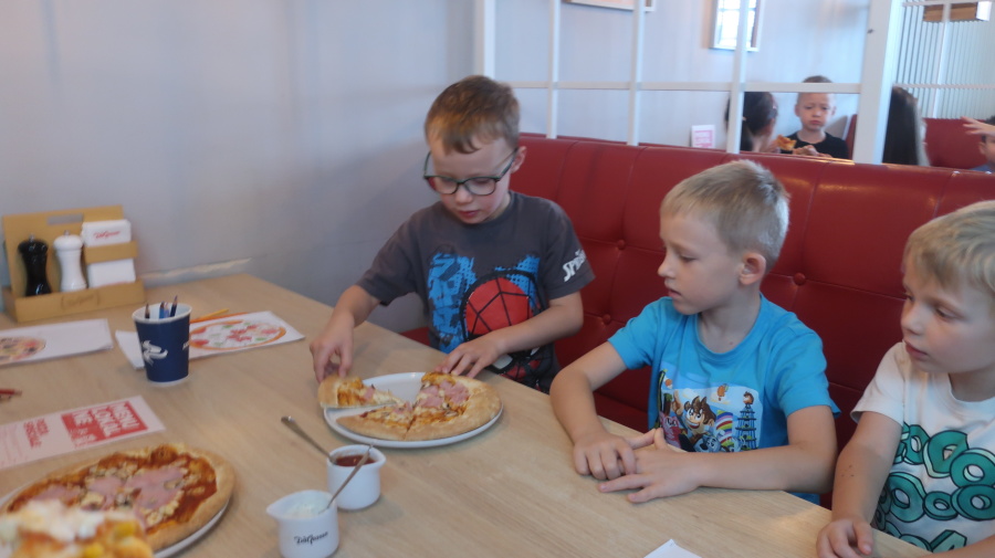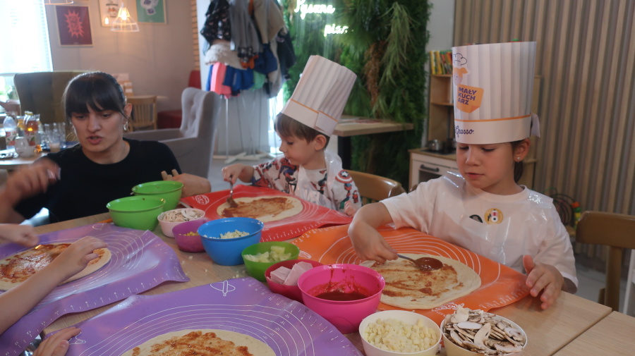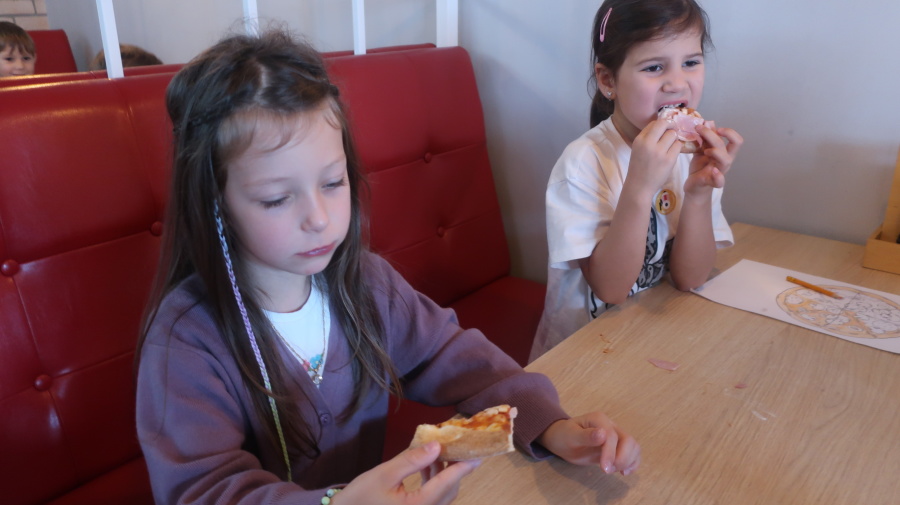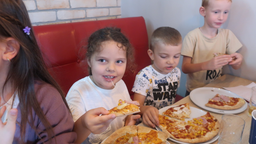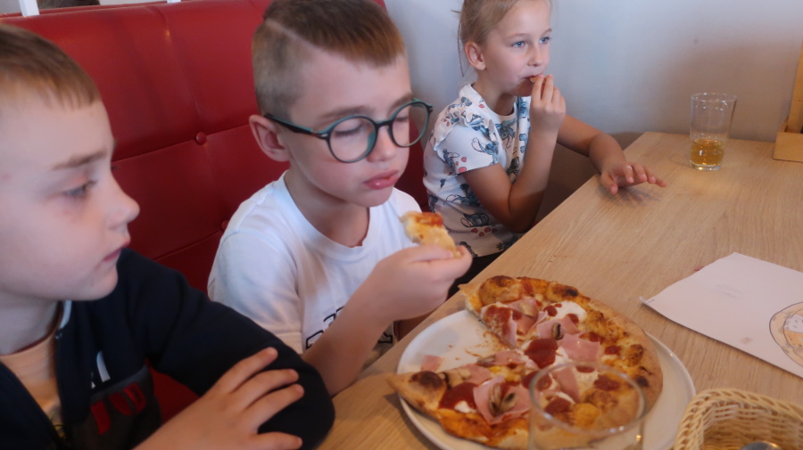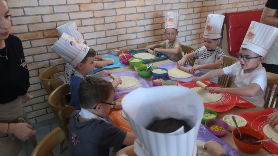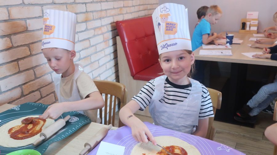 Dzień Przedszkolaka Kropeczki spędziły dziś wcielając się w ,,Małych Kucharzy\". Dzieci udało się wraz z paniami i do pizzerii gdzie brało udział w warsztatach robienia pizzy. Przedszkolaki wałkowały ciasto, nakładały na nie sos, następnie układały swoje ulubione składniki. W oczekiwaniu na pizzę dzieci kolorowały kolorowanki. Każda przygotowana pizza, po lekkim ostygnięciu, została spałaszowana. Kropeczki wykazały sie w pizzerii kulturą i koleżeństwem dzieląc się z koleżankami i kolegami swoją pizzą.