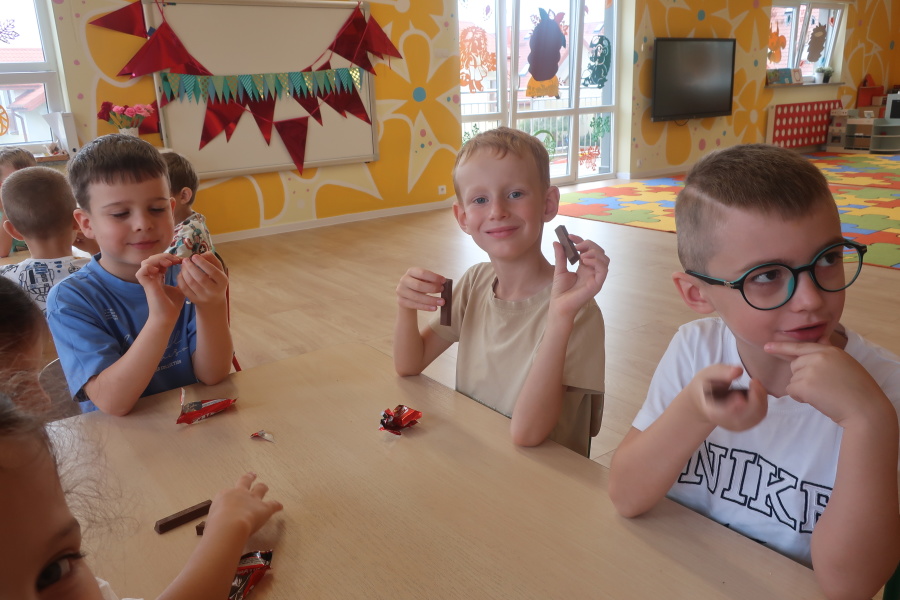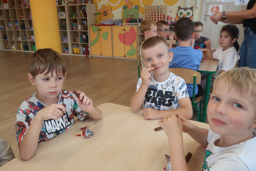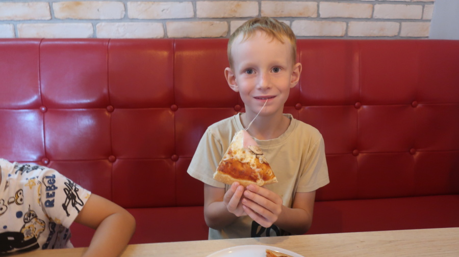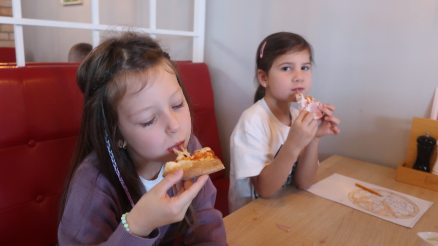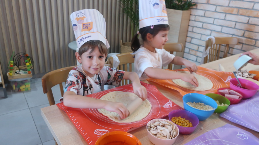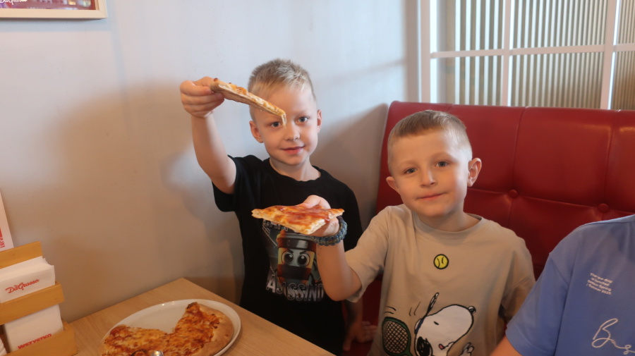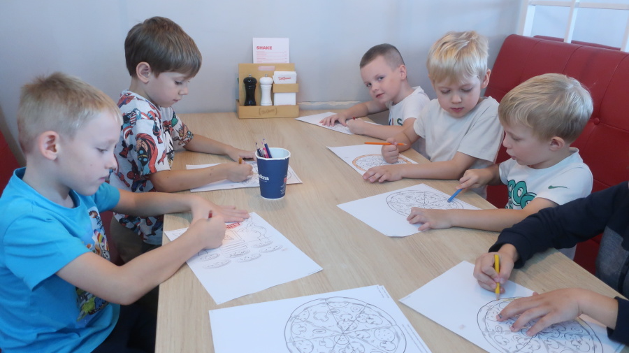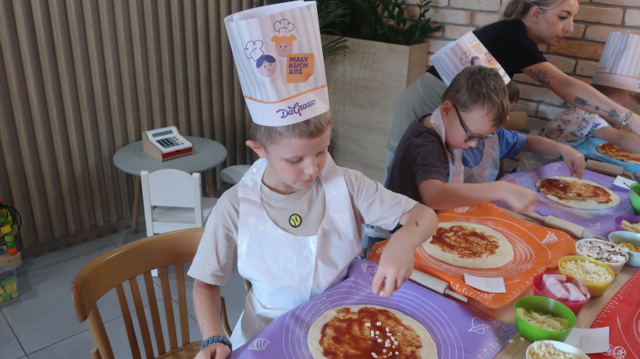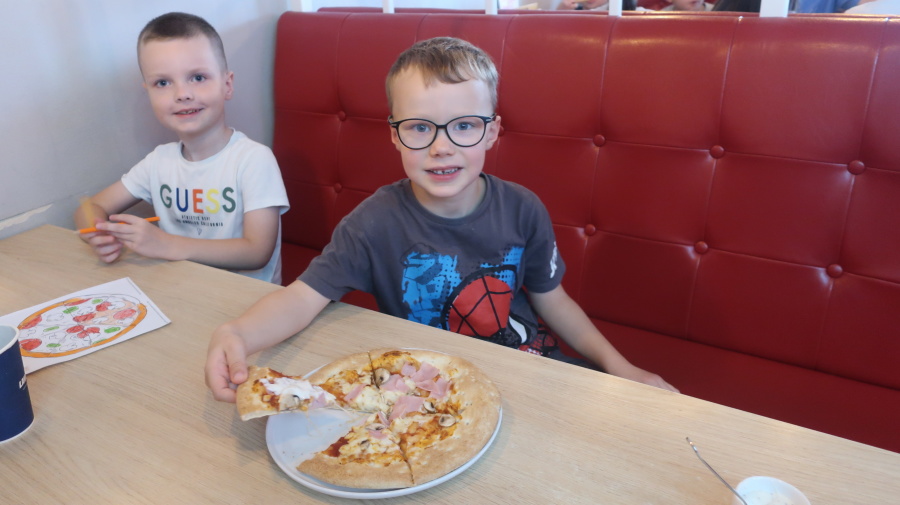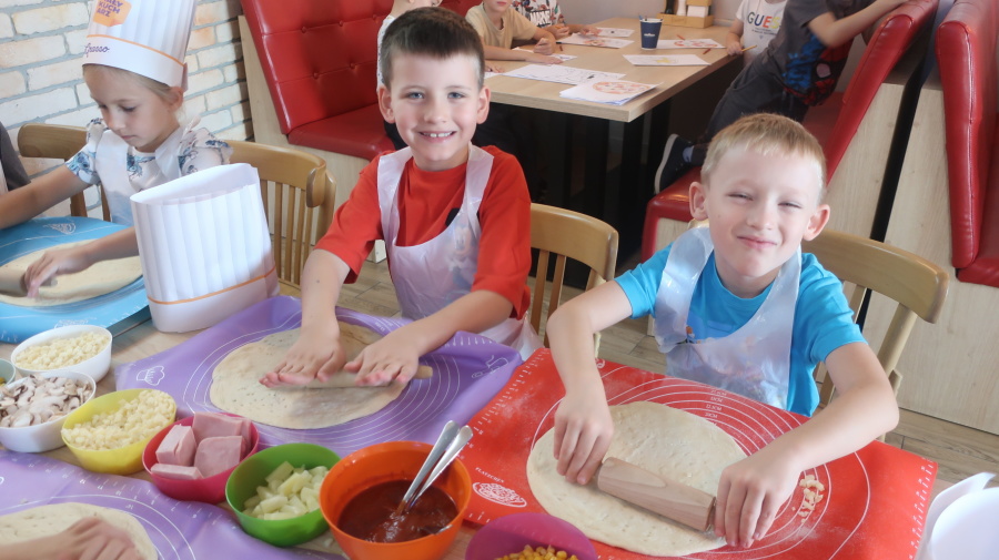 Dzień Przedszkolaka Kropeczki spędziły dziś wcielając się w ,,Małych Kucharzy\". Dzieci udało się wraz z paniami i do pizzerii gdzie brało udział w warsztatach robienia pizzy. Przedszkolaki wałkowały ciasto, nakładały na nie sos, następnie układały swoje ulubione składniki. W oczekiwaniu na pizzę dzieci kolorowały kolorowanki. Każda przygotowana pizza, po lekkim ostygnięciu, została spałaszowana. Kropeczki wykazały sie w pizzerii kulturą i koleżeństwem dzieląc się z koleżankami i kolegami swoją pizzą.