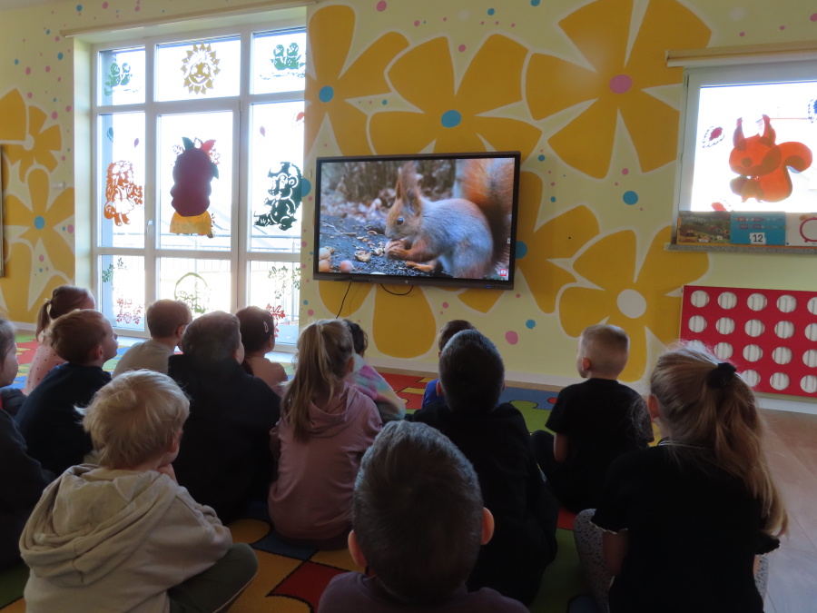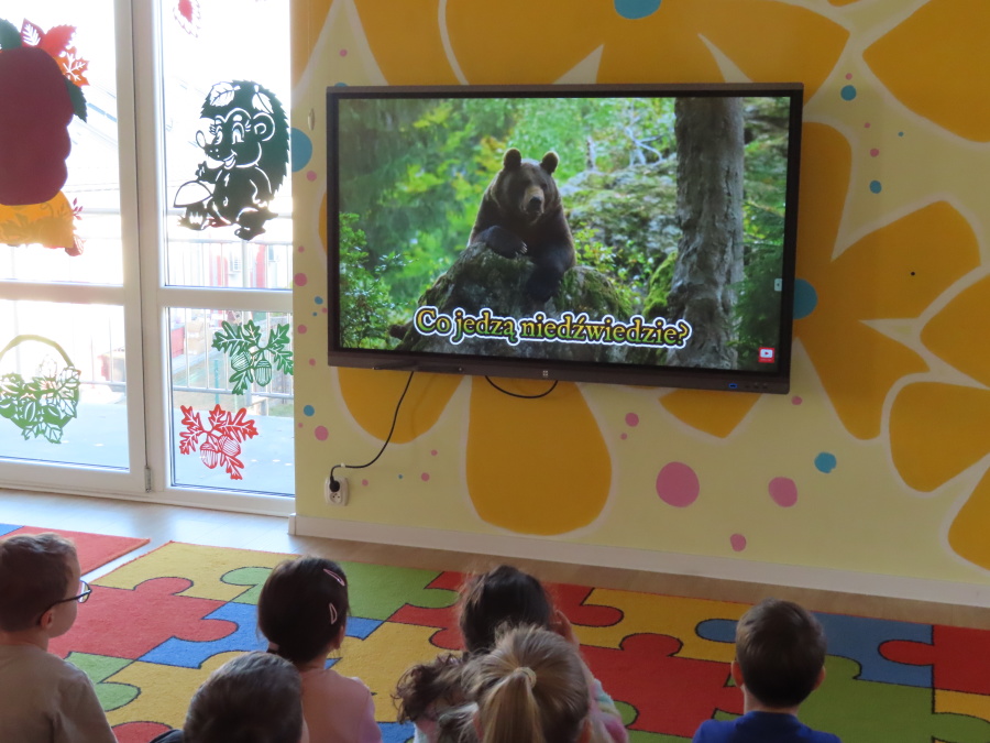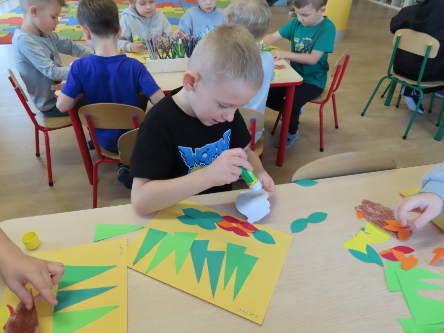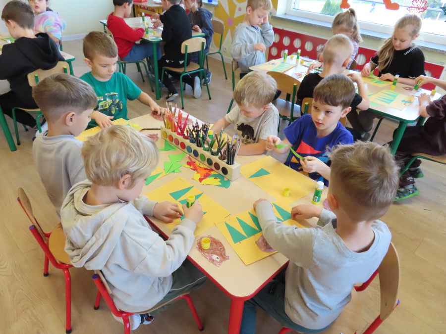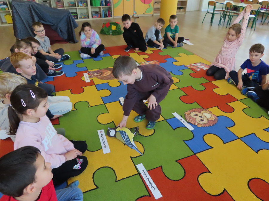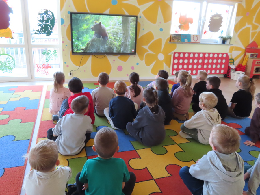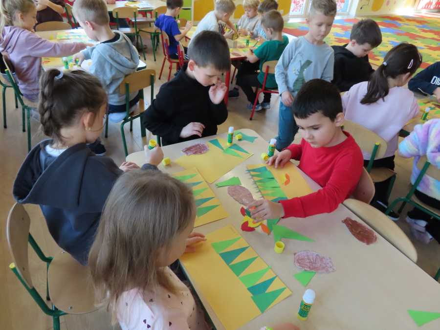„Jak zwierzęta przygotowują się do zimy?” - pod tym hasłem odbyły się dzisiejsze zajęcia w grupie Kropeczek. Dzieci dowiedziały się, że zwierzęta przygotowują się do nadchodzącej mroźnej pory roku na kilka sposobów: poprzez migrację do cieplejszych krajów (np. bociany, żurawie), gromadzenie zapasów (np. wiewiórki, które zakopują orzechy), zmianę ubarwienia lub futra na zimowe (np. zające, sarny), czy zapadanie w sen zimowy lub hibernację (np. niedźwiedzie, jeże). Przedszkolaki wspólnie tworzyły „domy” dla poszczególnych zwierząt zimujących w Polsce oraz odszukiwały i dopasowywały podpisy różnorodnych schronień. Na zakończenie każde dziecko wykonało pracę plastyczną pt. „Gawra niedźwiedzia”.