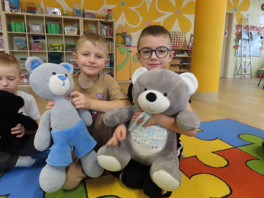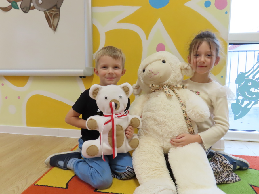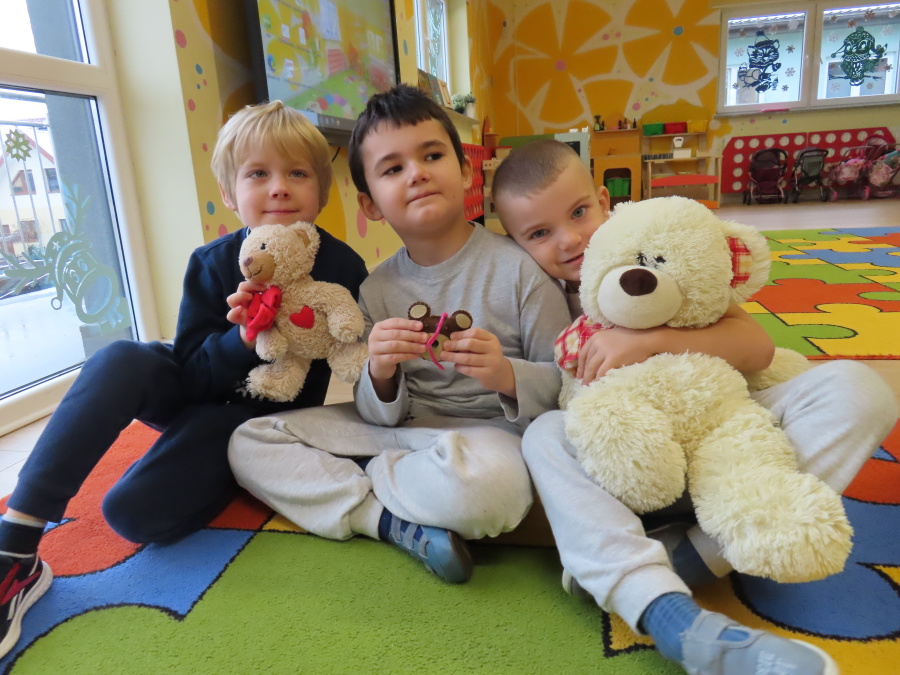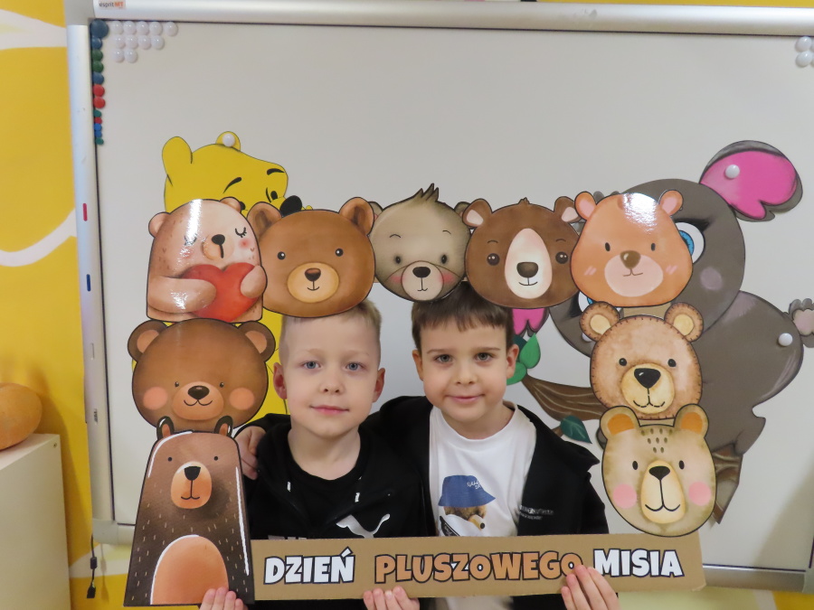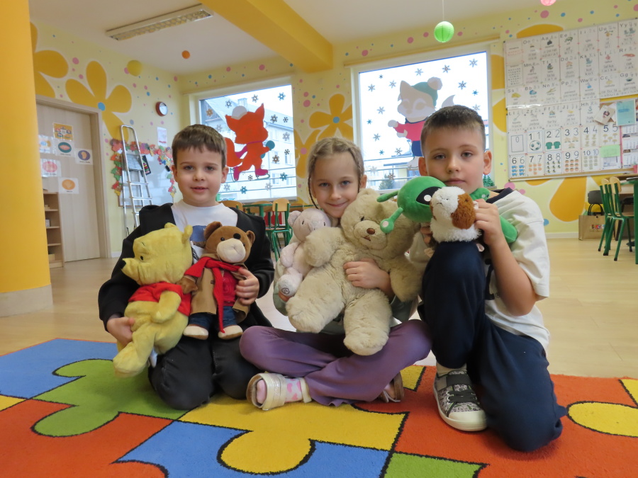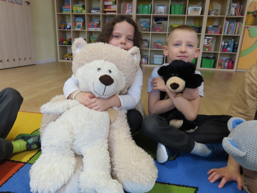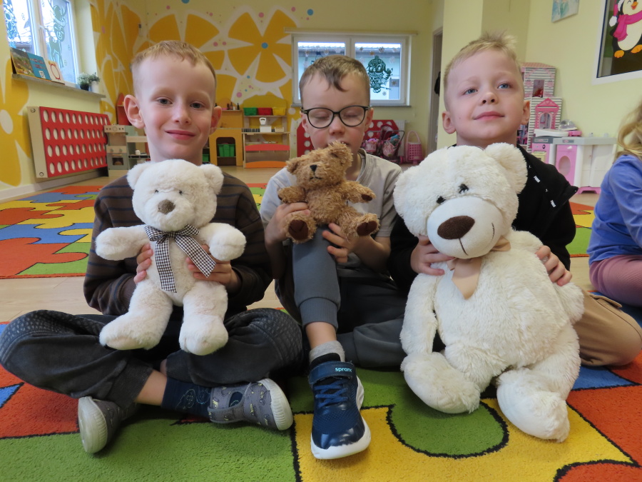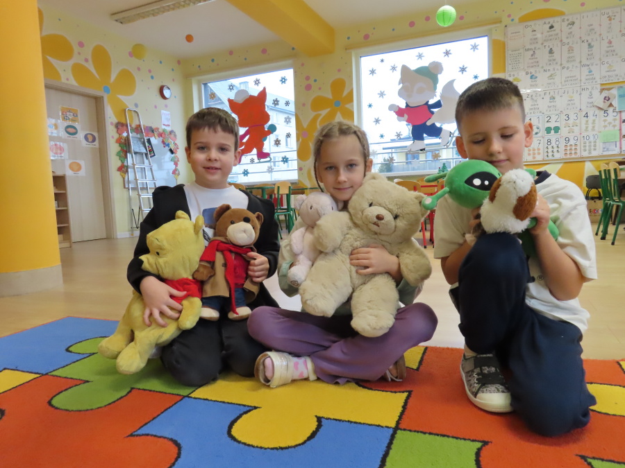 Obchodzony w tym tygodniu Dzień Pluszowego Misia był motywacją do spotkania z pluszowymi misiami w grupie Kropeczek. Dzieci przyniosły misie małe, duże i ogromne. Każdy z nich miał swoją historię, która została przedstawiona koleżankom i kolegom. Miś jako symbol przyjaźni, ciepła i bezpieczeństwa jest często powiernikiem i najlepszym przyjacielem dzieci. Kropeczki wspólnie zagrały w memory na tablicy interaktywnej oraz rozwiązały zagdaki i zadania z misiami w roli głownej. Przedszkolaki odkodowały misia na tablicy interaktywnej oraz na kartce.