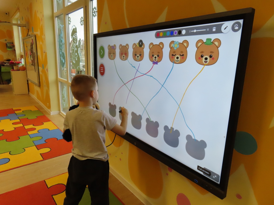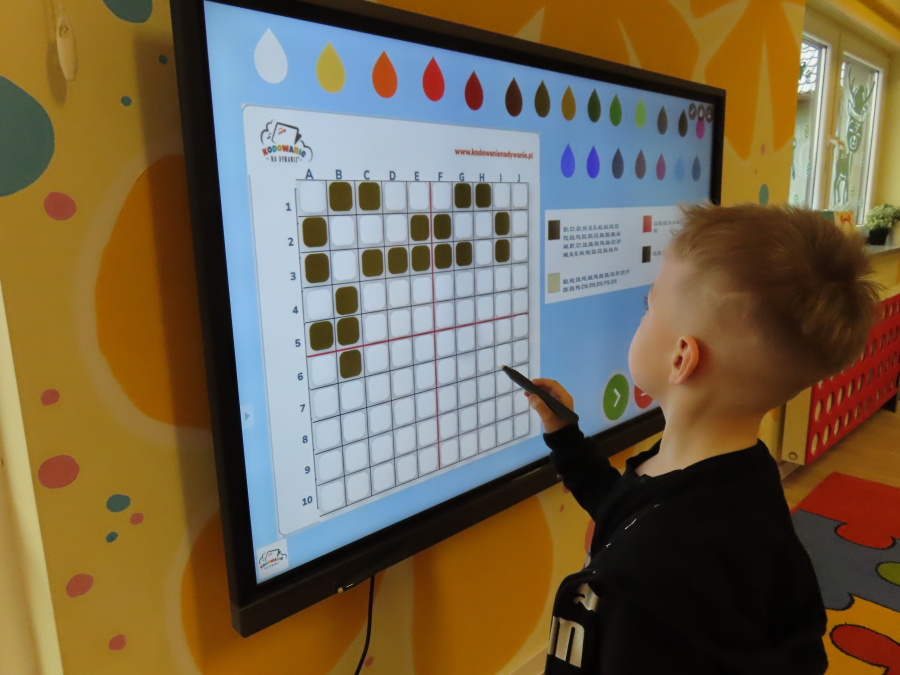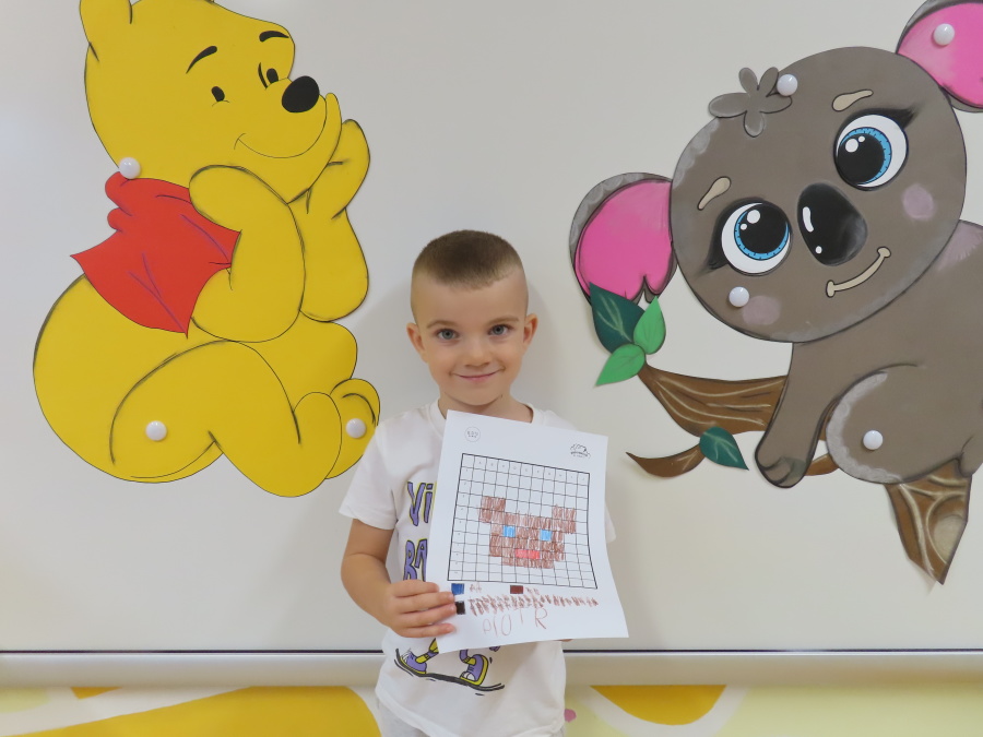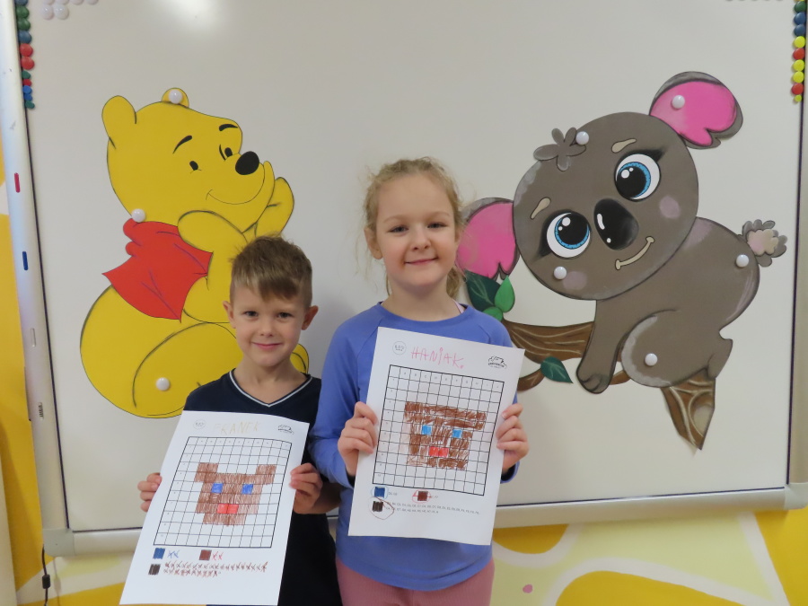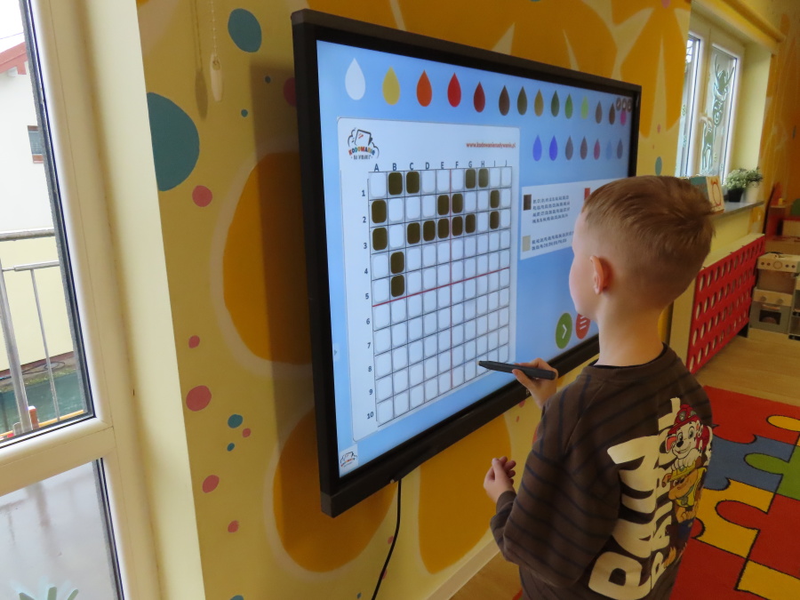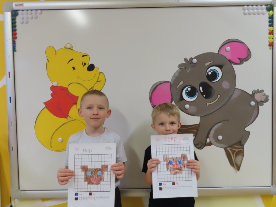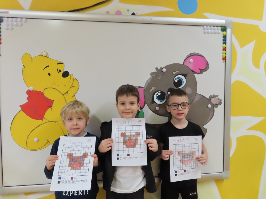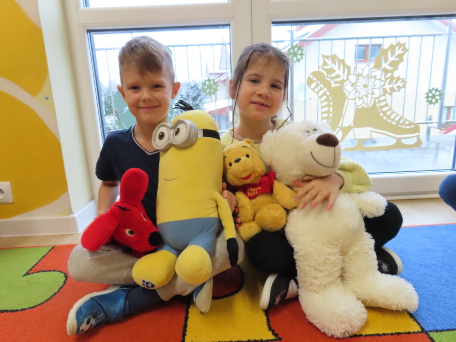 Obchodzony w tym tygodniu Dzień Pluszowego Misia był motywacją do spotkania z pluszowymi misiami w grupie Kropeczek. Dzieci przyniosły misie małe, duże i ogromne. Każdy z nich miał swoją historię, która została przedstawiona koleżankom i kolegom. Miś jako symbol przyjaźni, ciepła i bezpieczeństwa jest często powiernikiem i najlepszym przyjacielem dzieci. Kropeczki wspólnie zagrały w memory na tablicy interaktywnej oraz rozwiązały zagdaki i zadania z misiami w roli głownej. Przedszkolaki odkodowały misia na tablicy interaktywnej oraz na kartce.