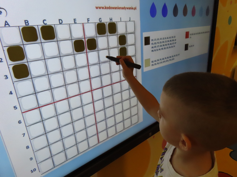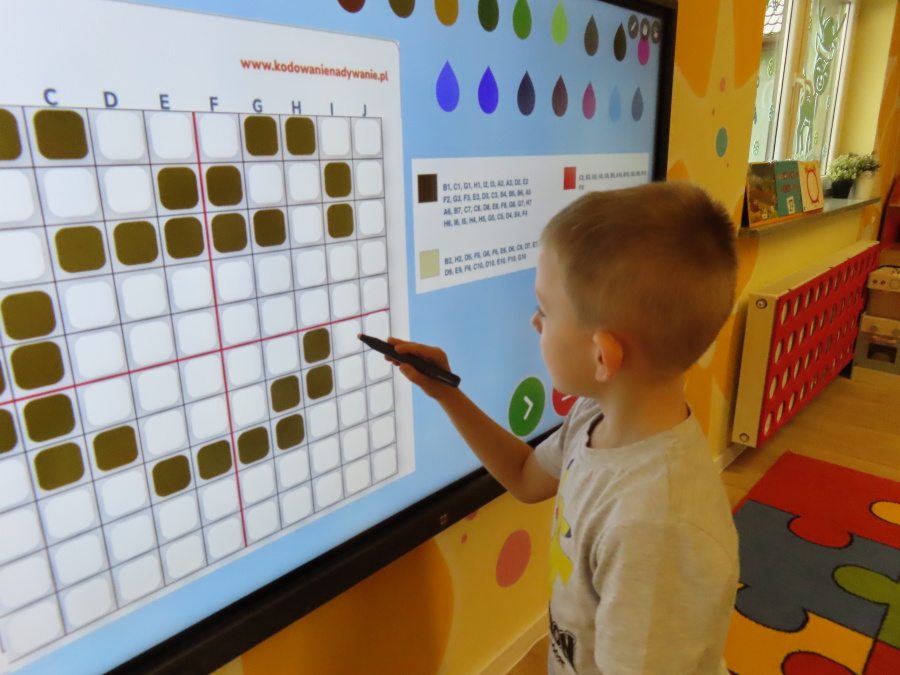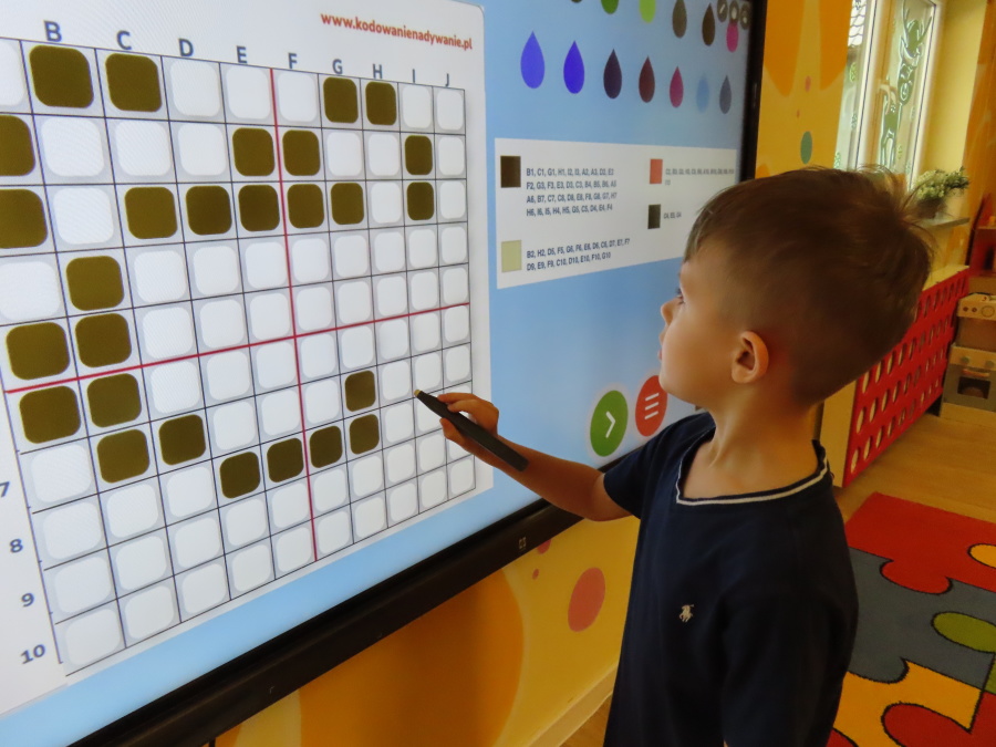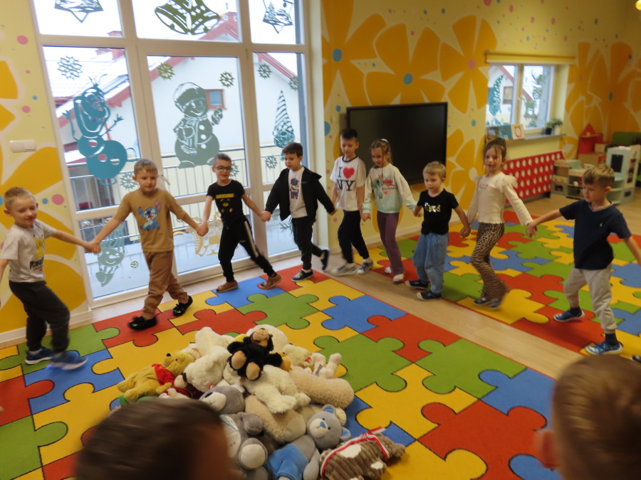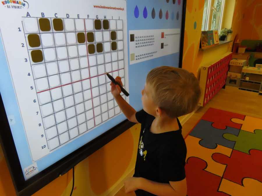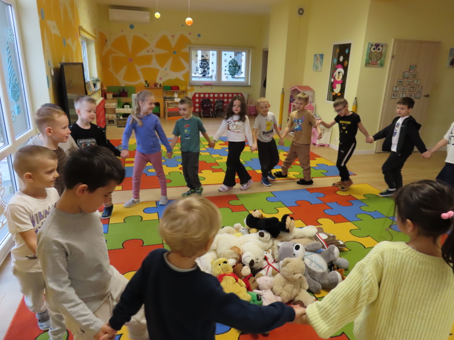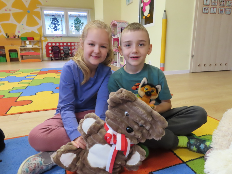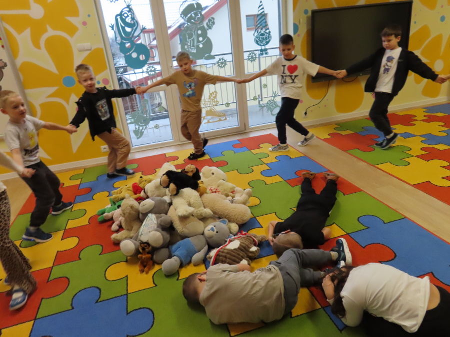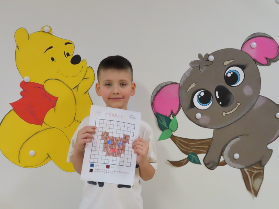 Obchodzony w tym tygodniu Dzień Pluszowego Misia był motywacją do spotkania z pluszowymi misiami w grupie Kropeczek. Dzieci przyniosły misie małe, duże i ogromne. Każdy z nich miał swoją historię, która została przedstawiona koleżankom i kolegom. Miś jako symbol przyjaźni, ciepła i bezpieczeństwa jest często powiernikiem i najlepszym przyjacielem dzieci. Kropeczki wspólnie zagrały w memory na tablicy interaktywnej oraz rozwiązały zagdaki i zadania z misiami w roli głownej. Przedszkolaki odkodowały misia na tablicy interaktywnej oraz na kartce.