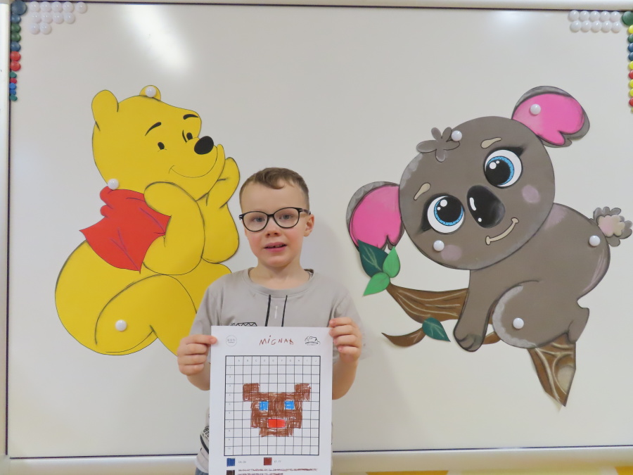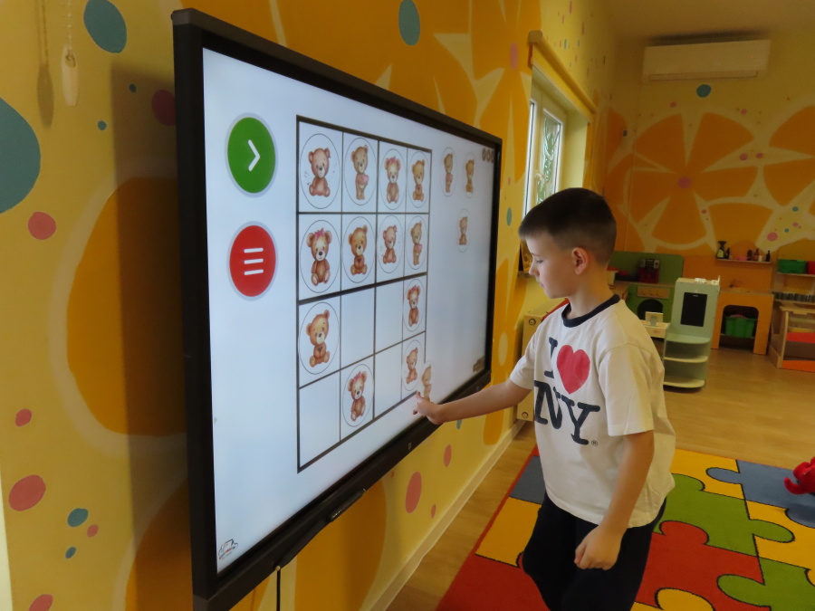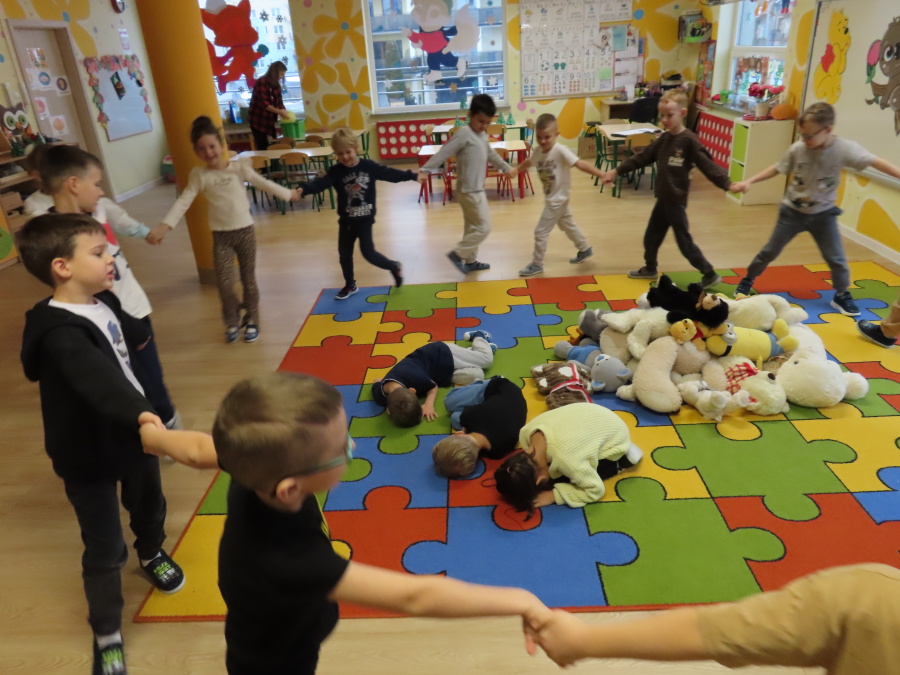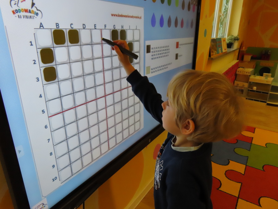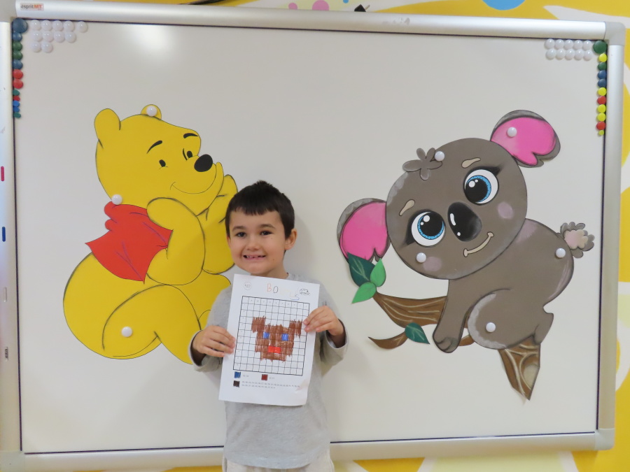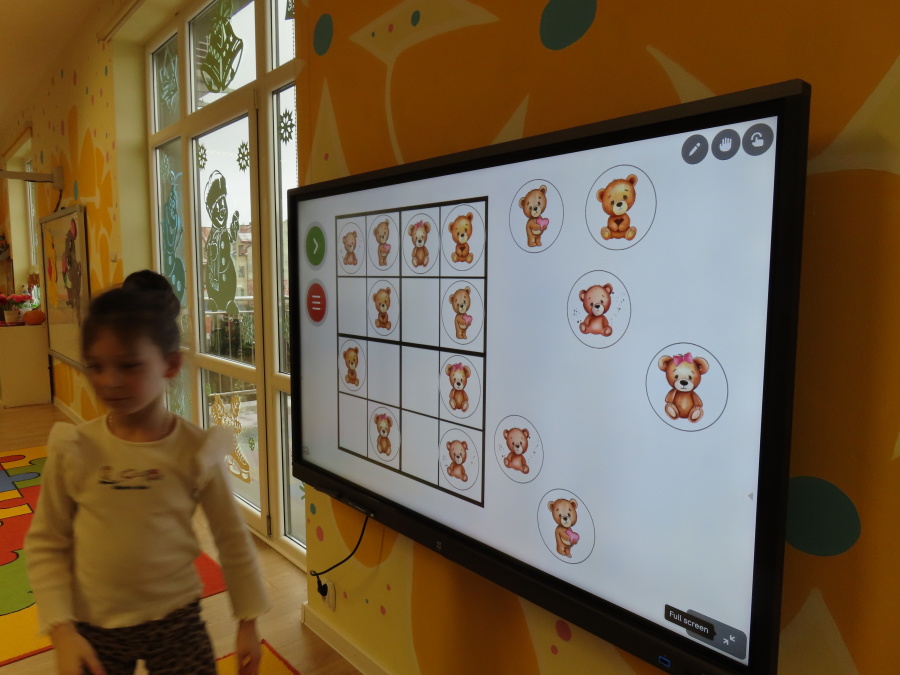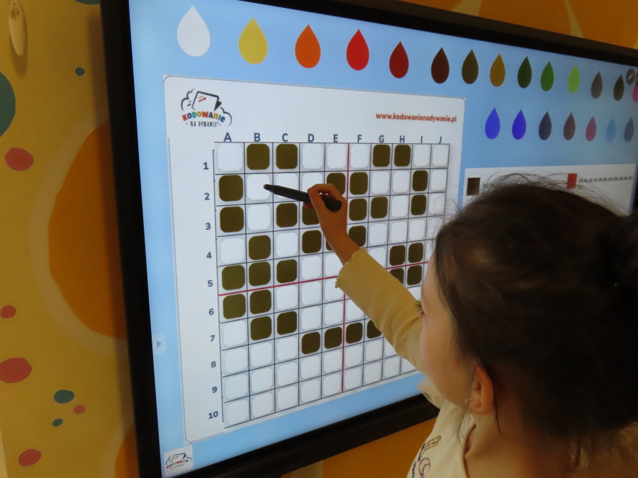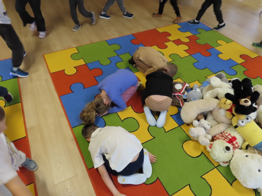 Obchodzony w tym tygodniu Dzień Pluszowego Misia był motywacją do spotkania z pluszowymi misiami w grupie Kropeczek. Dzieci przyniosły misie małe, duże i ogromne. Każdy z nich miał swoją historię, która została przedstawiona koleżankom i kolegom. Miś jako symbol przyjaźni, ciepła i bezpieczeństwa jest często powiernikiem i najlepszym przyjacielem dzieci. Kropeczki wspólnie zagrały w memory na tablicy interaktywnej oraz rozwiązały zagdaki i zadania z misiami w roli głownej. Przedszkolaki odkodowały misia na tablicy interaktywnej oraz na kartce.