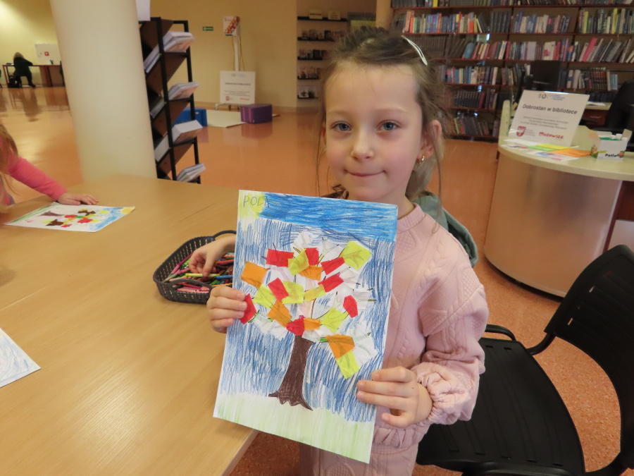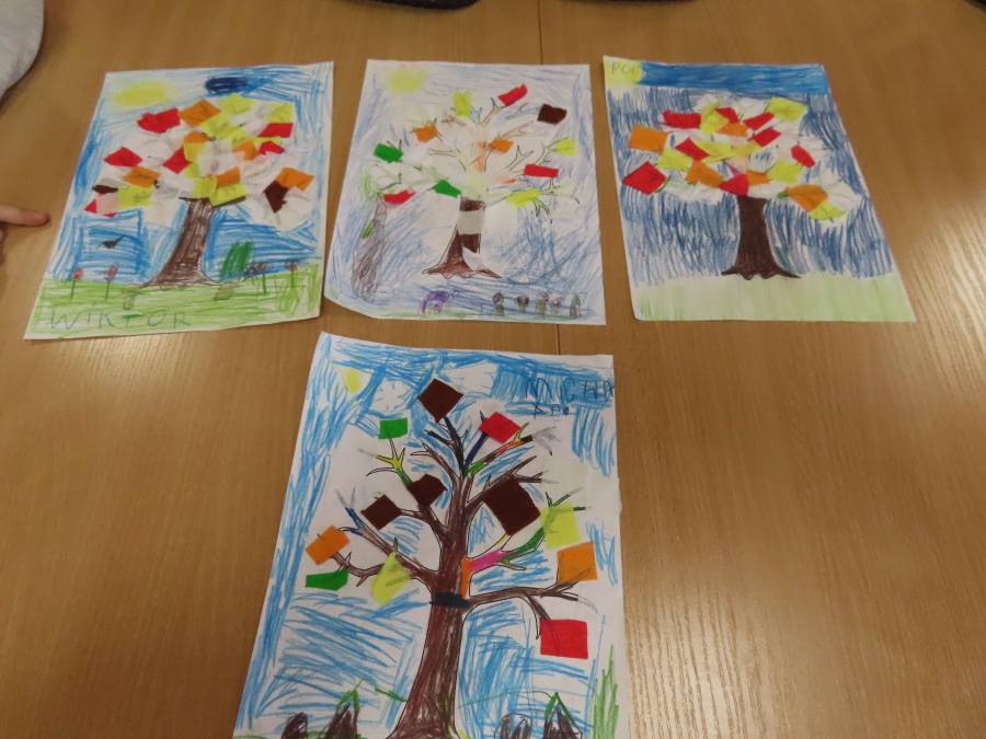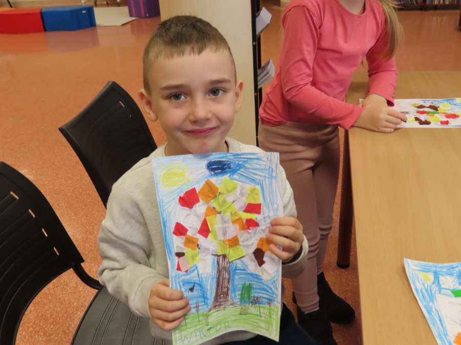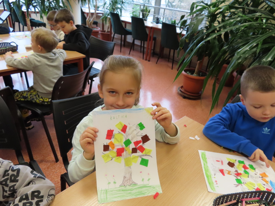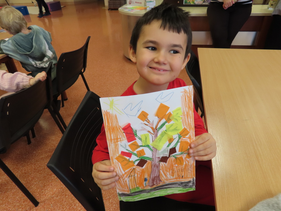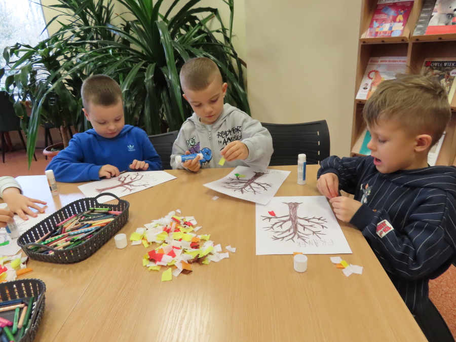 ,,Pory roku, czyli Rok i jego Córki\" to opowiadanie które w dniu dzisiejszym wysłuchały i obejrzały Kropeczki (teatrzyk kamishibai) w Bibliotece Pedagogicznej w Ostrołęce. Dzieci zostały do bajkowego świata pór roku. Po wysłuchaniu opowiadania przedszkolaki wykonały pracę plastyczną ,,Jesienne drzewo\".