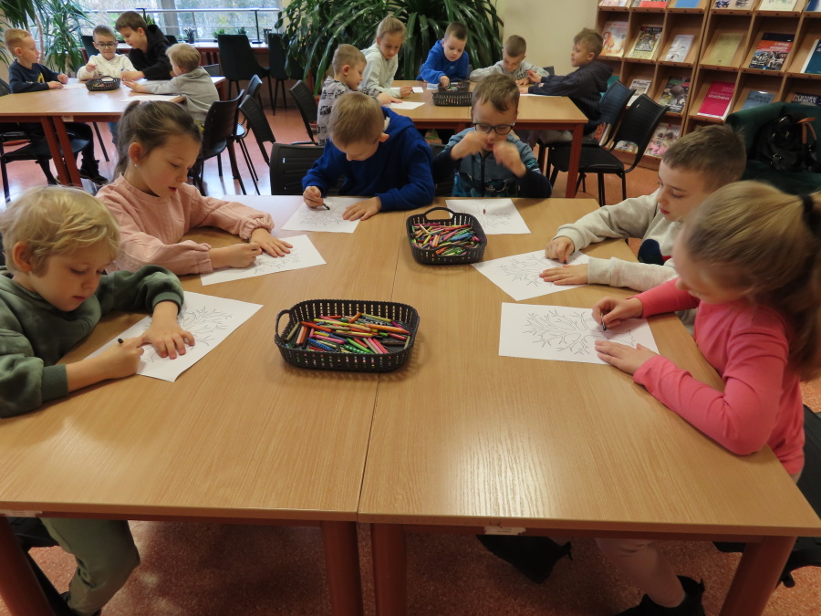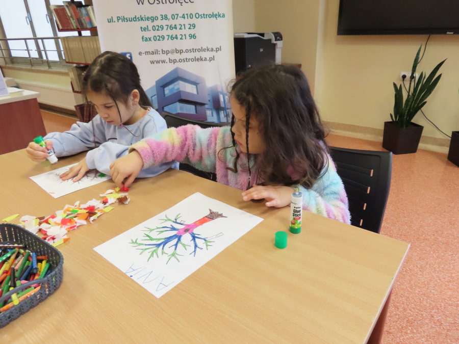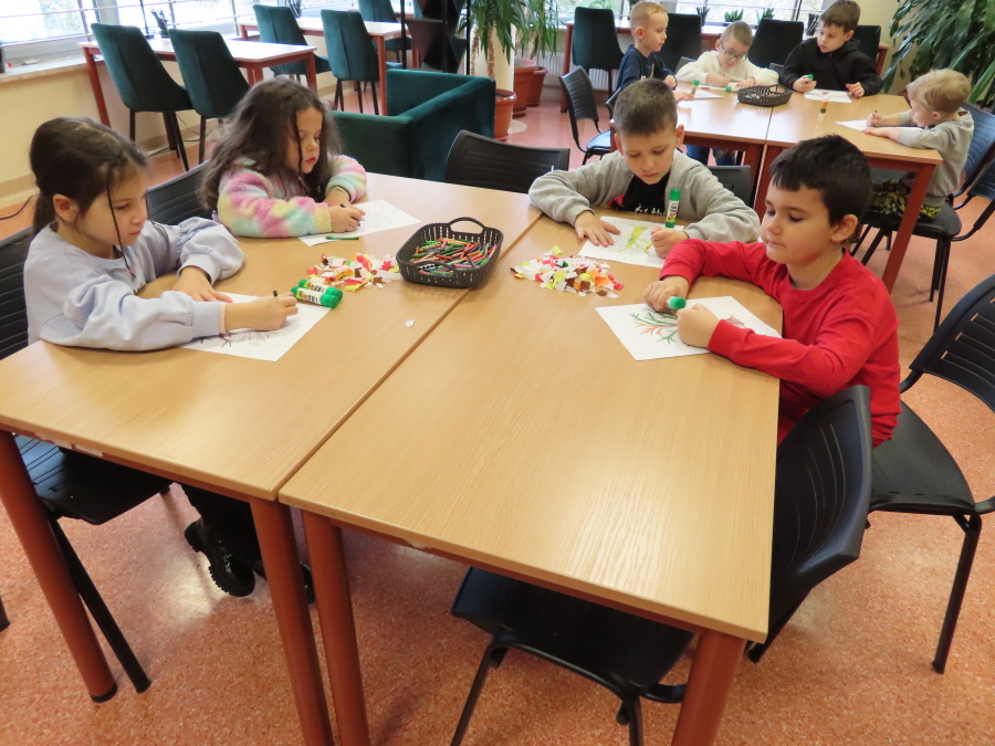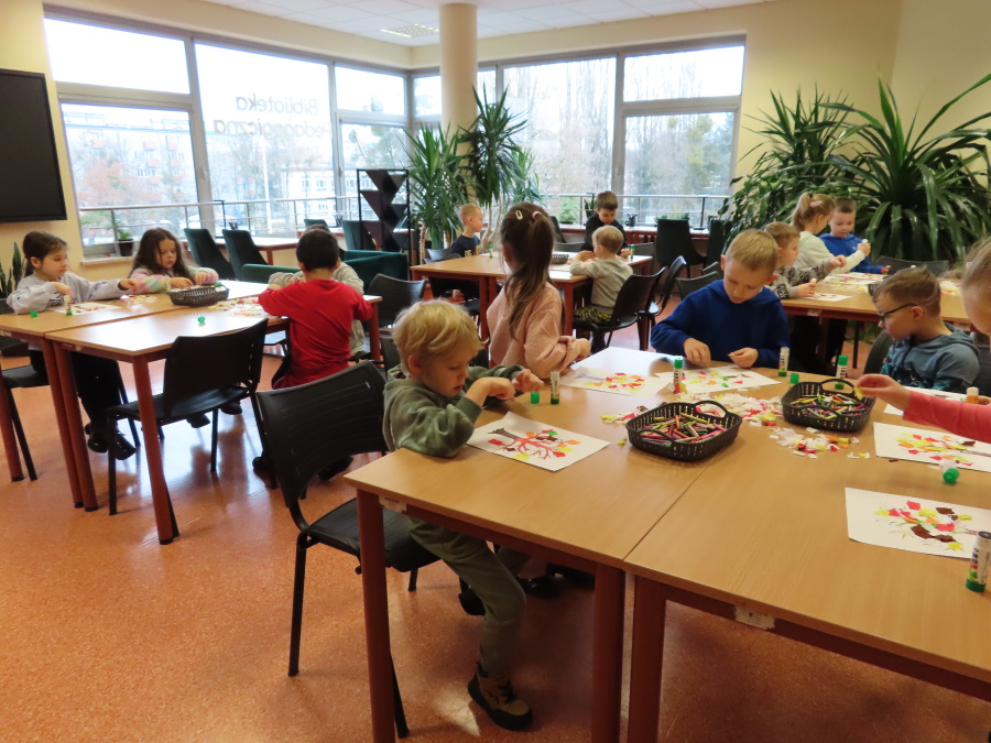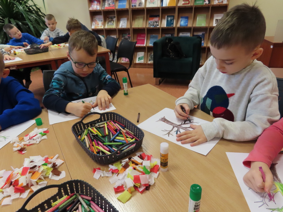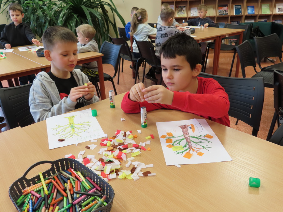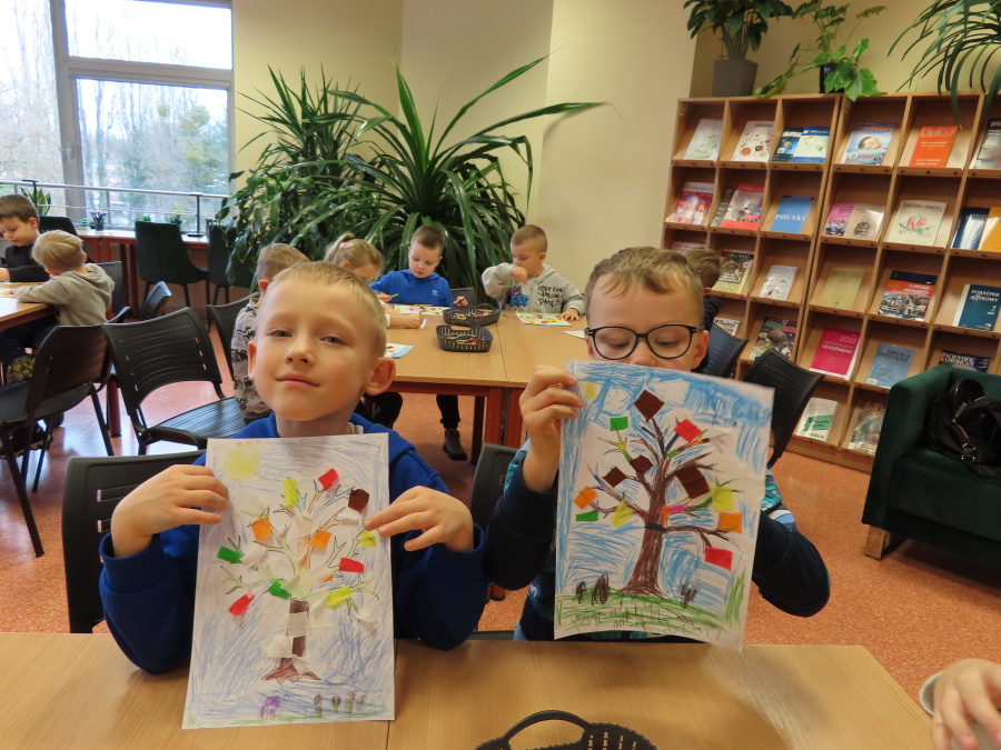 ,,Pory roku, czyli Rok i jego Córki\" to opowiadanie które w dniu dzisiejszym wysłuchały i obejrzały Kropeczki (teatrzyk kamishibai) w Bibliotece Pedagogicznej w Ostrołęce. Dzieci zostały do bajkowego świata pór roku. Po wysłuchaniu opowiadania przedszkolaki wykonały pracę plastyczną ,,Jesienne drzewo\".