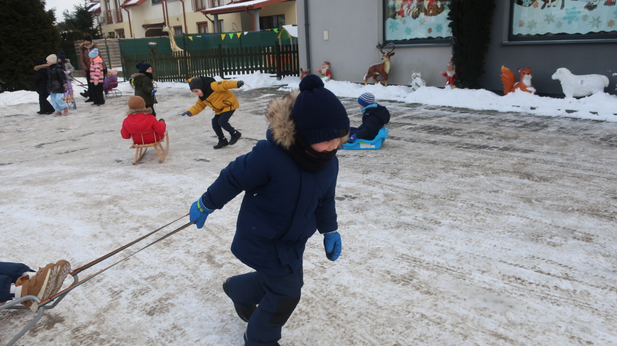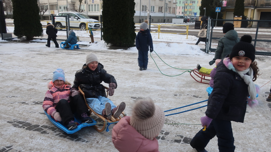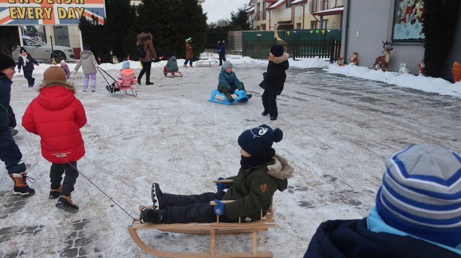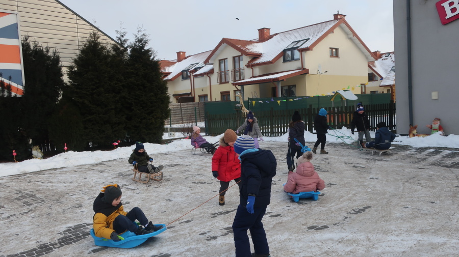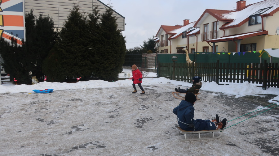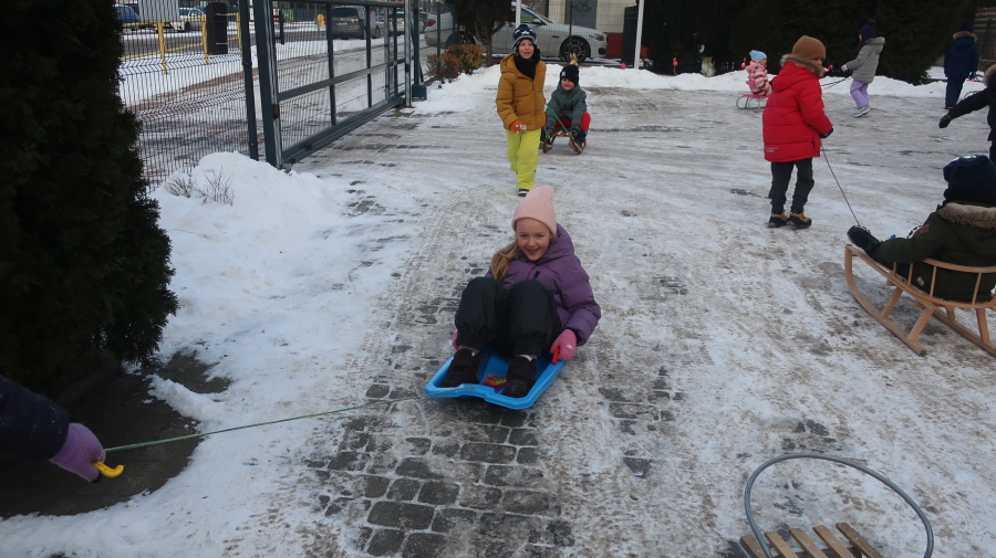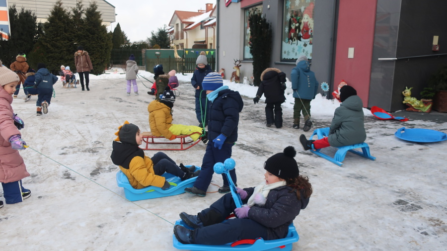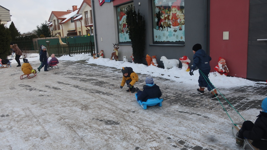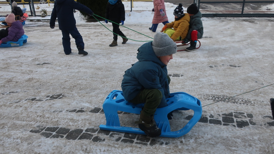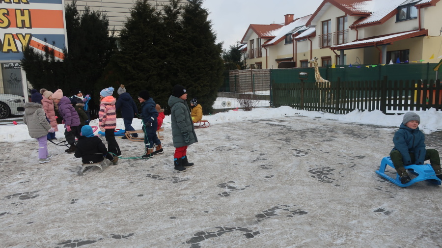 Dziś Kropeczki wybrały się całą grupą na zimowy spacer na którym aktywnie rozgrzewały się! ❄️???? ???? Dzieci przyniosły do przedszkola swoje sanki, więc radości nie było końca. Zorganizowaliśmy wesołe zabawy: wyścigi na sankach, zjazdy na jabłuszku. Śmiech, ruch i zimowa energia towarzyszyły nam przez cały czas. Po powrocie do przedszkola dzieci zaprezentowały koleżankom i kolegom narty, gogle i łyżwy. Na zakończenie Kropeczki wykonały pracę plastyczno-techniczną ,,Łyżwy\". To był dzień pełen zabawy, uśmiechu, rumianych policzków i wspaniałych humorów!