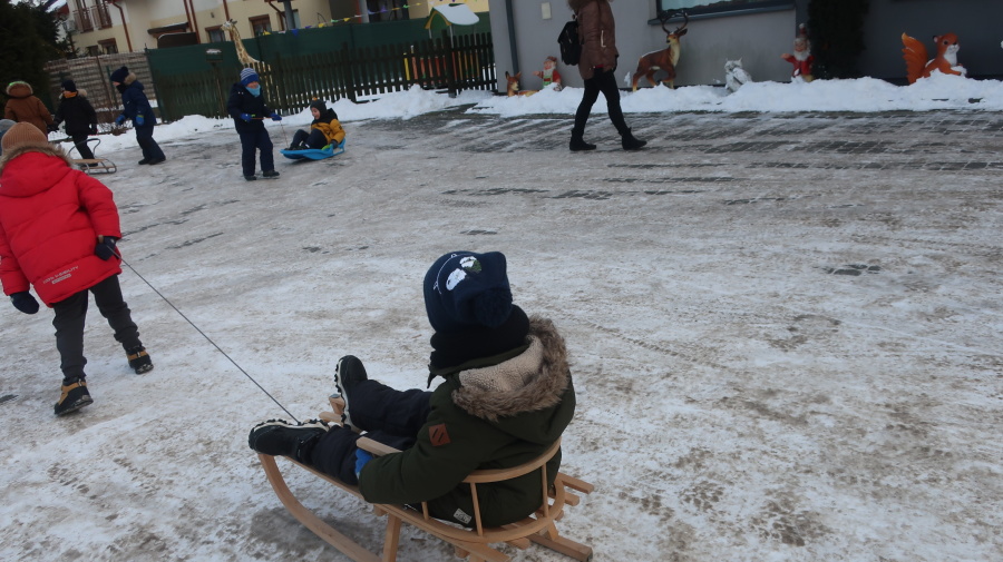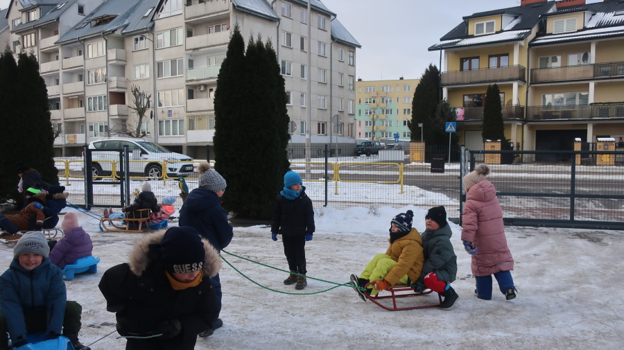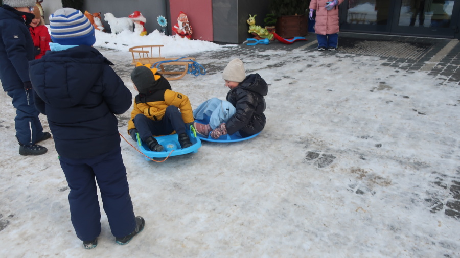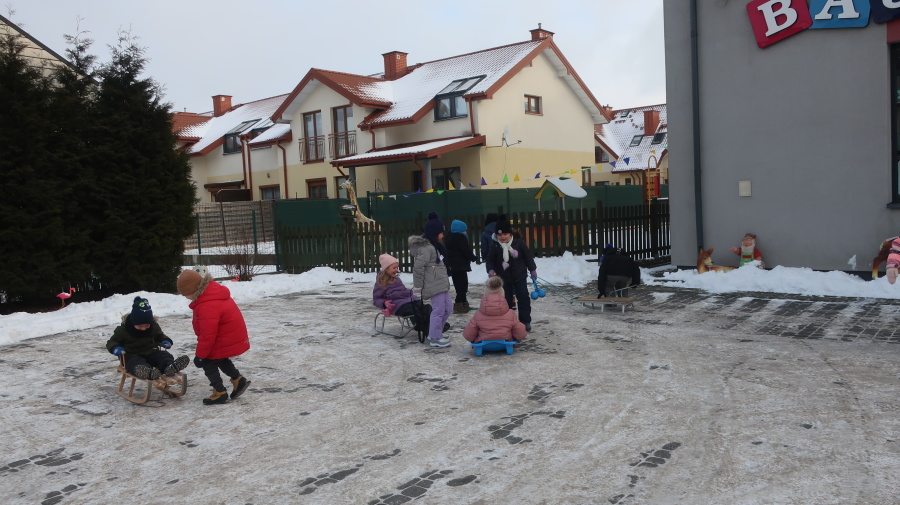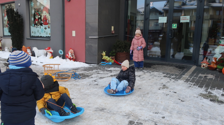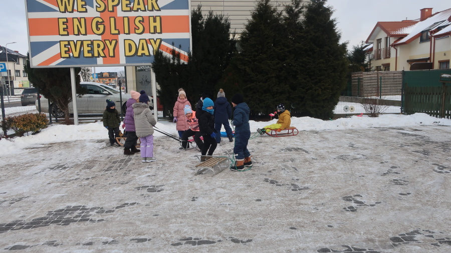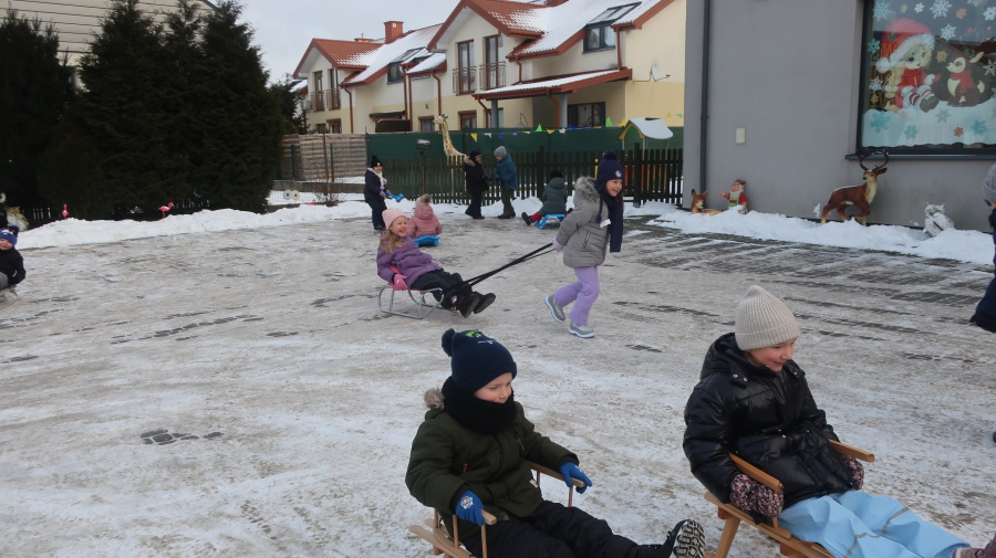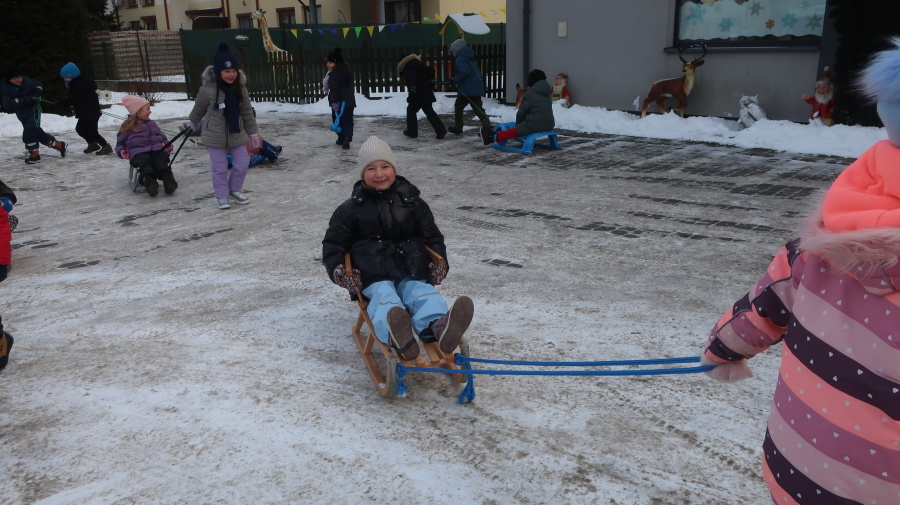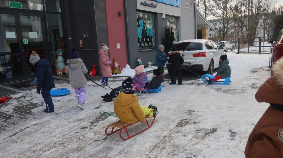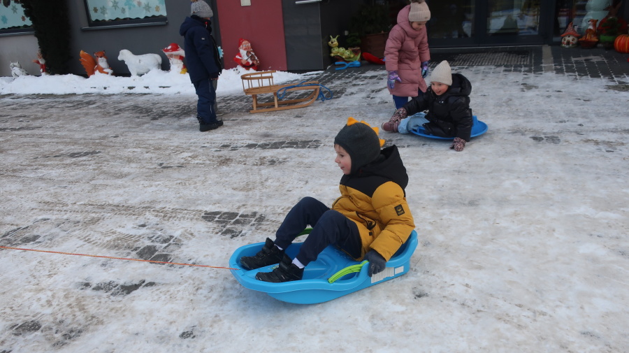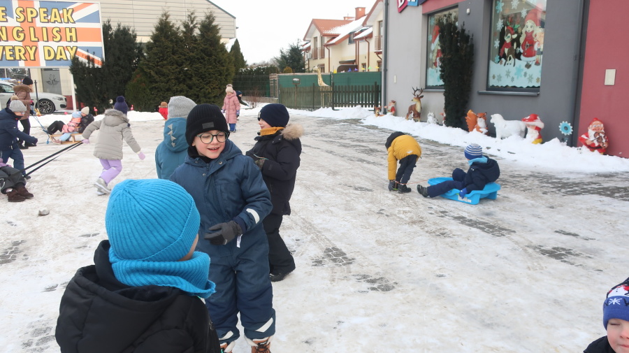 Dziś Kropeczki wybrały się całą grupą na zimowy spacer na którym aktywnie rozgrzewały się! ❄️???? ???? Dzieci przyniosły do przedszkola swoje sanki, więc radości nie było końca. Zorganizowaliśmy wesołe zabawy: wyścigi na sankach, zjazdy na jabłuszku. Śmiech, ruch i zimowa energia towarzyszyły nam przez cały czas. Po powrocie do przedszkola dzieci zaprezentowały koleżankom i kolegom narty, gogle i łyżwy. Na zakończenie Kropeczki wykonały pracę plastyczno-techniczną ,,Łyżwy\". To był dzień pełen zabawy, uśmiechu, rumianych policzków i wspaniałych humorów!