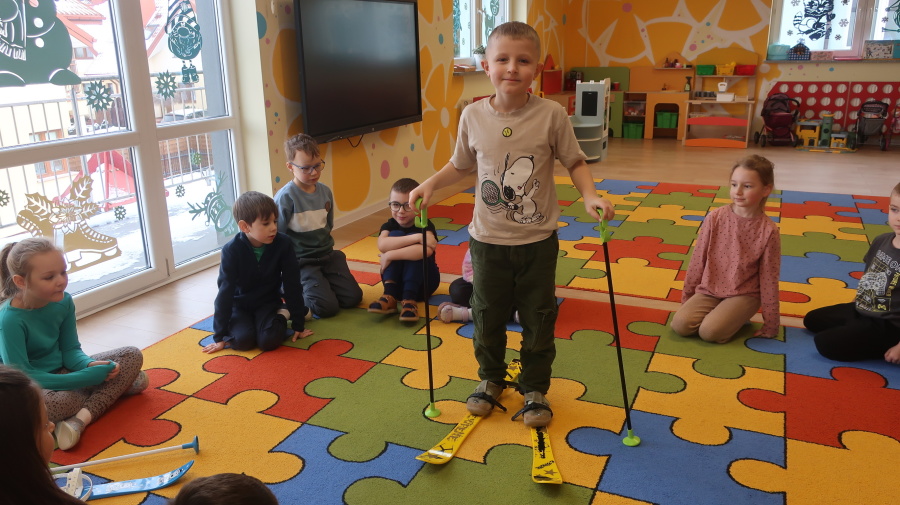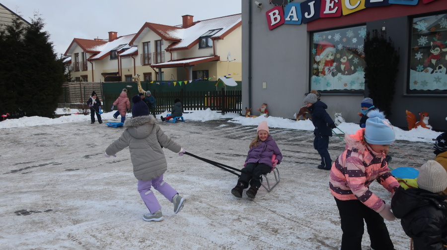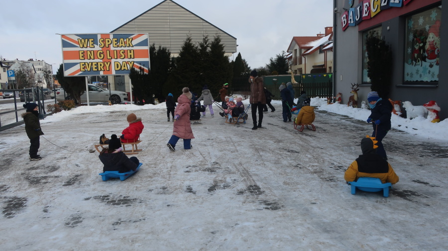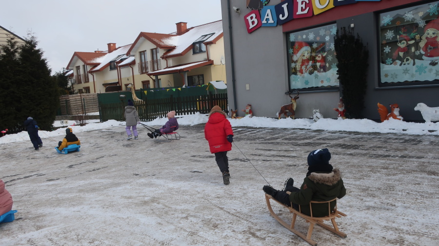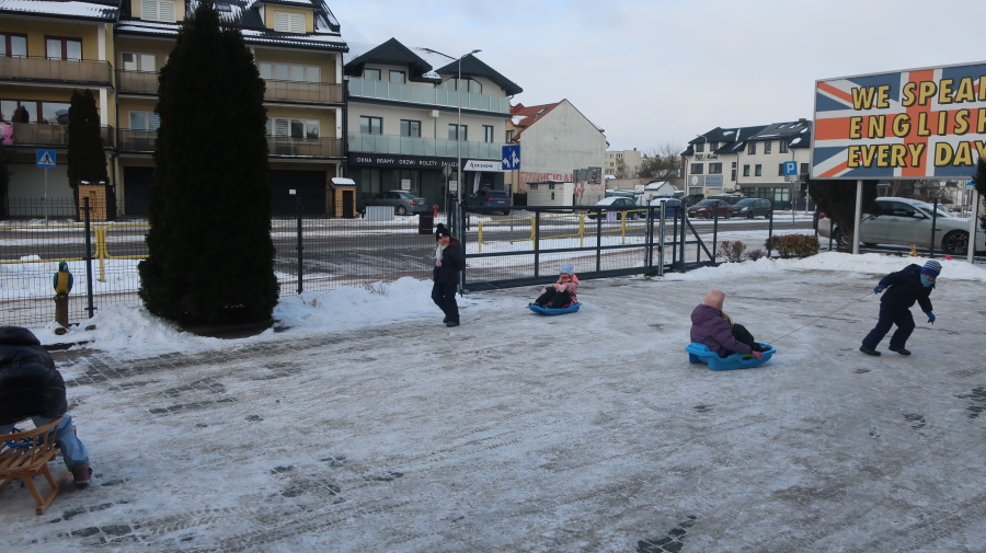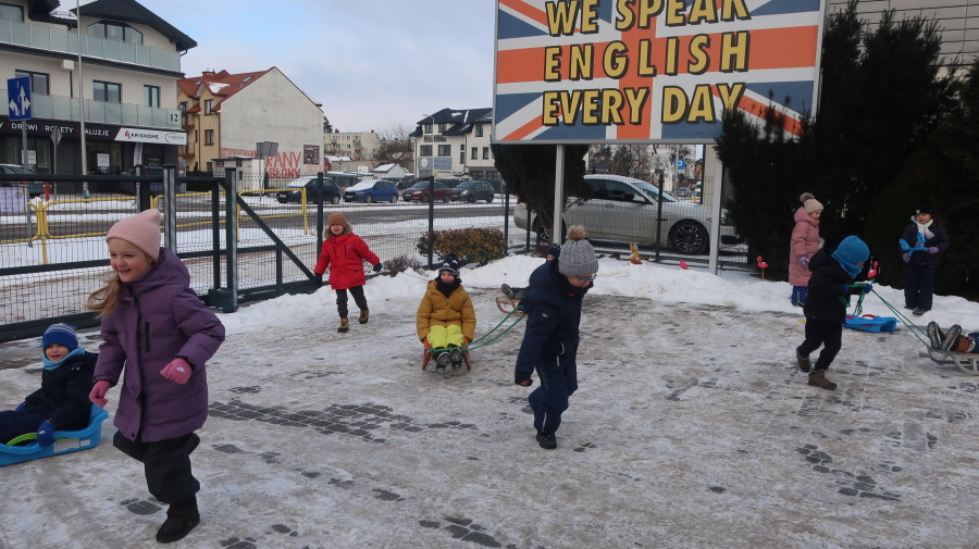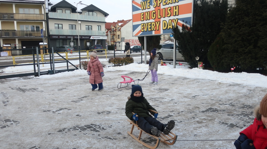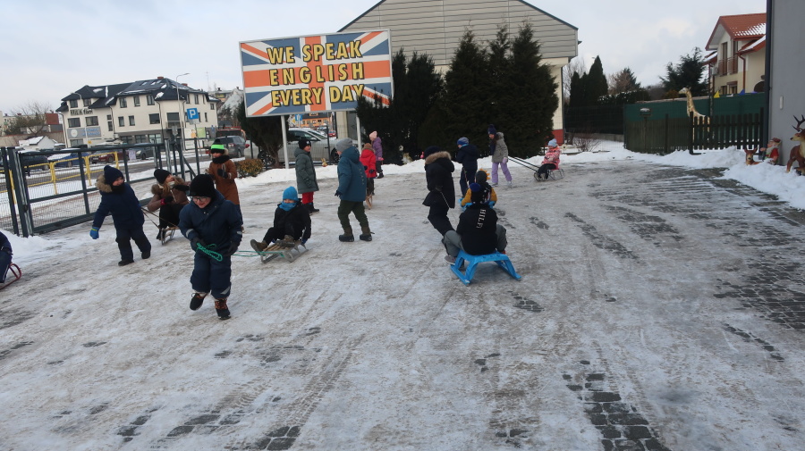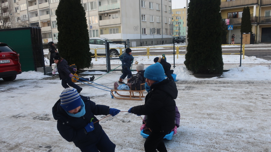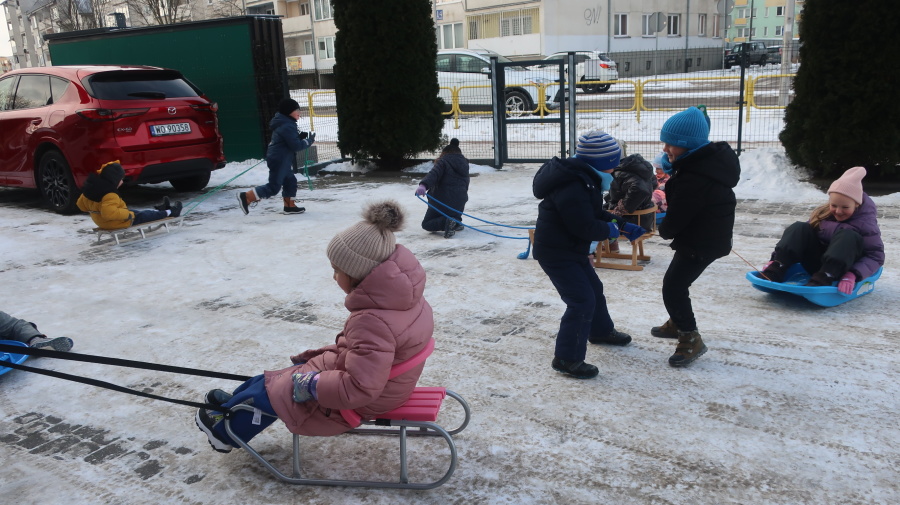 Dziś Kropeczki wybrały się całą grupą na zimowy spacer na którym aktywnie rozgrzewały się! ❄️???? ???? Dzieci przyniosły do przedszkola swoje sanki, więc radości nie było końca. Zorganizowaliśmy wesołe zabawy: wyścigi na sankach, zjazdy na jabłuszku. Śmiech, ruch i zimowa energia towarzyszyły nam przez cały czas. Po powrocie do przedszkola dzieci zaprezentowały koleżankom i kolegom narty, gogle i łyżwy. Na zakończenie Kropeczki wykonały pracę plastyczno-techniczną ,,Łyżwy\". To był dzień pełen zabawy, uśmiechu, rumianych policzków i wspaniałych humorów!
