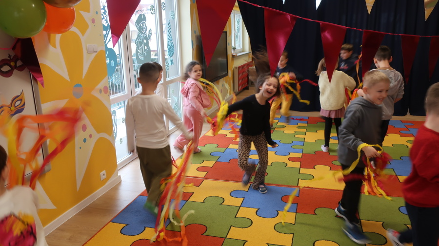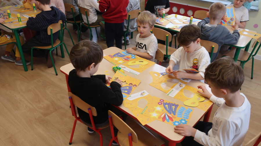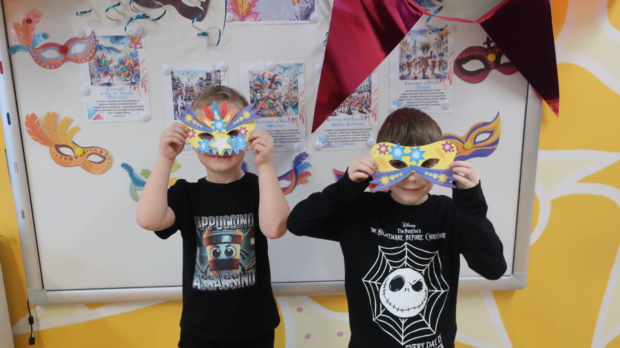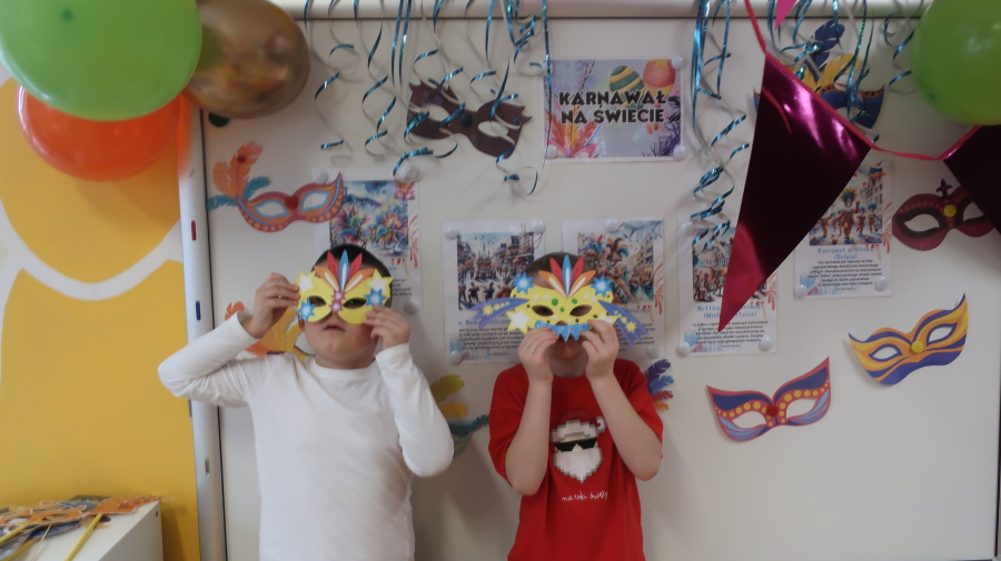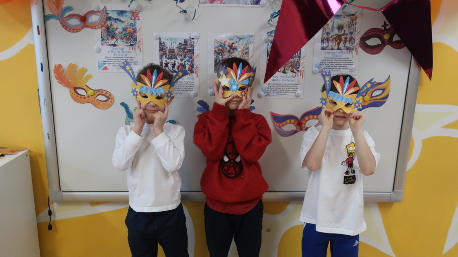 \"Karnawał na świecie\" był tematem dzisiejszych zajęć w grupie Kropeczek. Dzieci zapoznały się z tradycjami hucznych zabaw, strojów i masek z różnych regionów (Rio de Janeiro, Wenecja) oglądając prezentację multimedialną. Przedszkolaki uczestniczyły także w zabawach tanecznych m. in. tańczyły do muzyki brazylijskiej oraz tworzyły korowód w stylu weneckim. Na zakończenie Kropeczki tworzyły i dekorowały maski karnawałowe.
