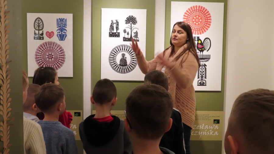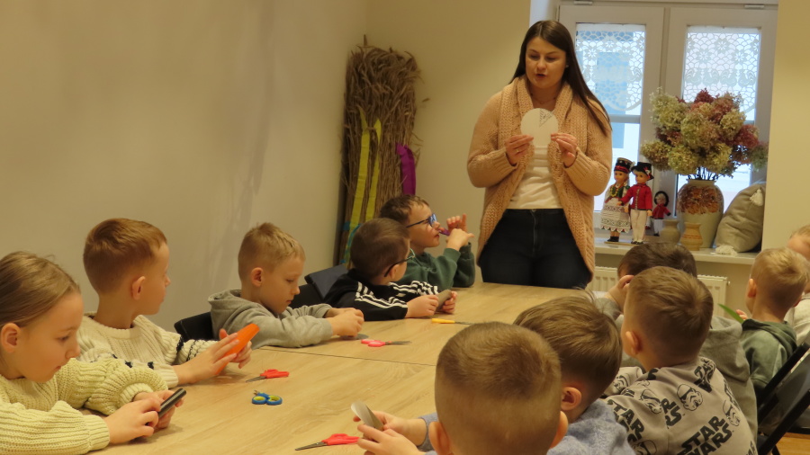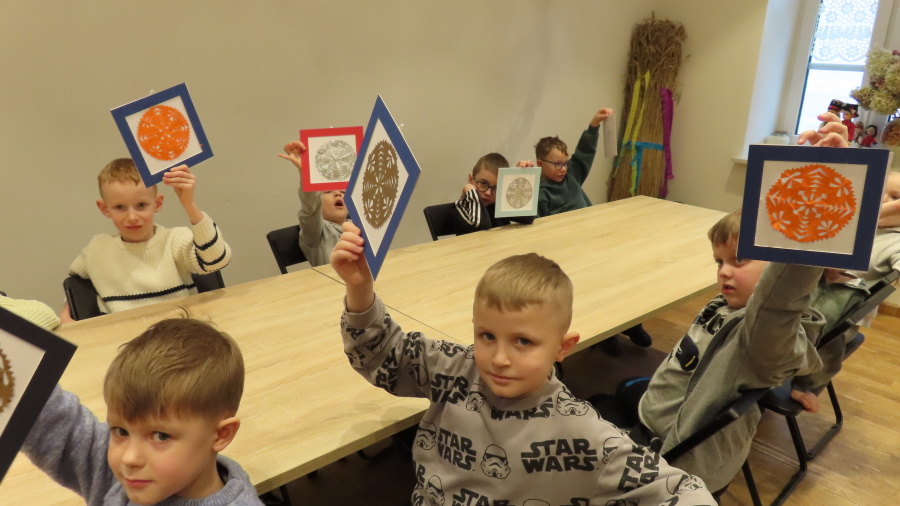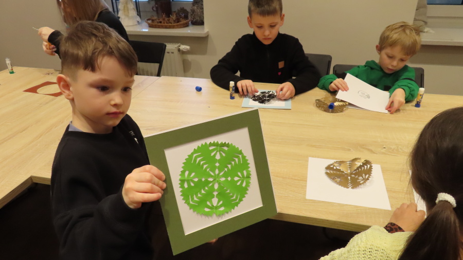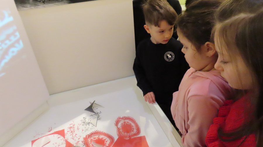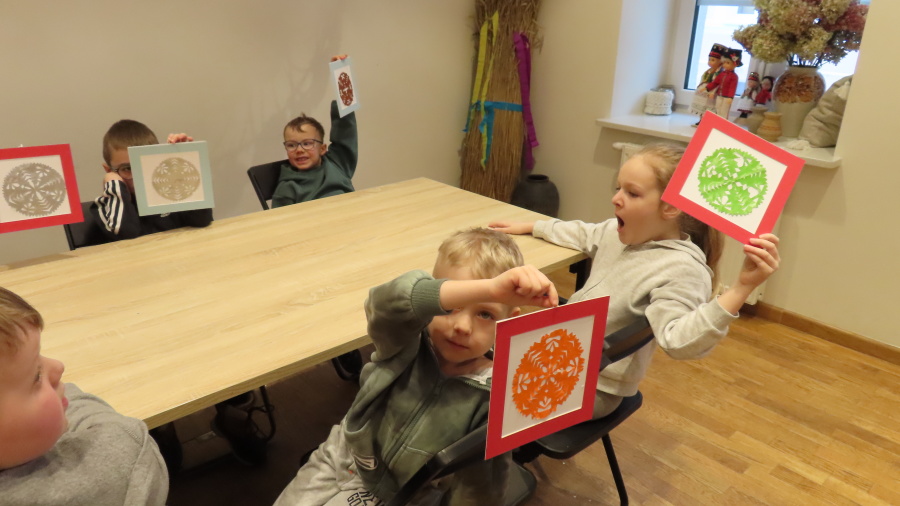 ,,Spotkanie z gziazdą, czyli wycinanka kurpiowska w roli głównej\'\' to kolejna lekcja muzealna w Muzeum Kultury Kurpiowskiej, której uczestnikami były Kropeczki. ????Dzieci poznały początki wycinkarstwa, rodzaje wycinanek (gwiazda, leluja, koguty) oraz ich przeznaczenie. Przedszkolaki poznały tajniki i kolejne etapy tworzenia papierowych ozdób. Każda własnoręcznie wycięta gwiazda została oprawiona w passe-partout. Lekcja była prowadzona w oparciu o wystawę stałą ,,Wycinanka kurpiowska\'\'.