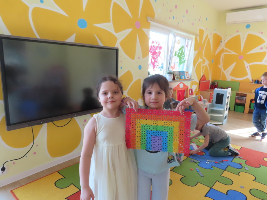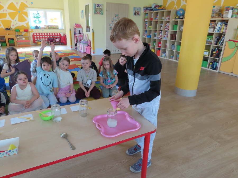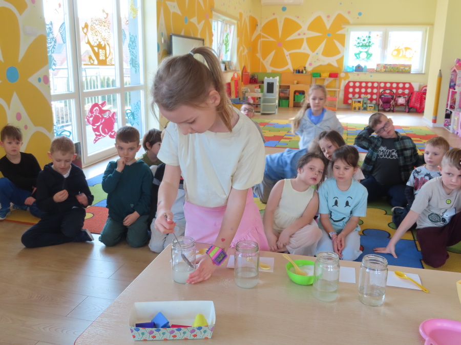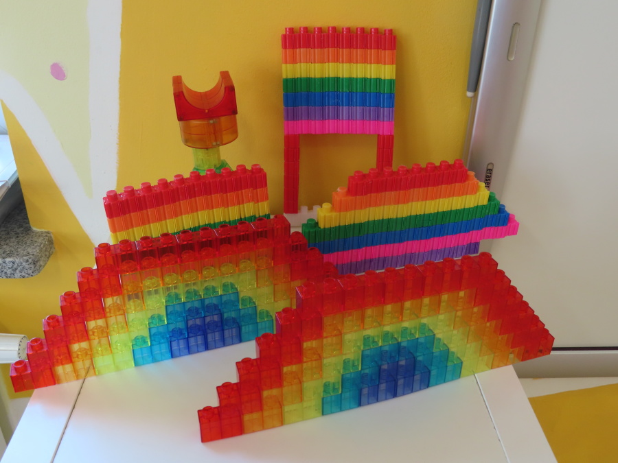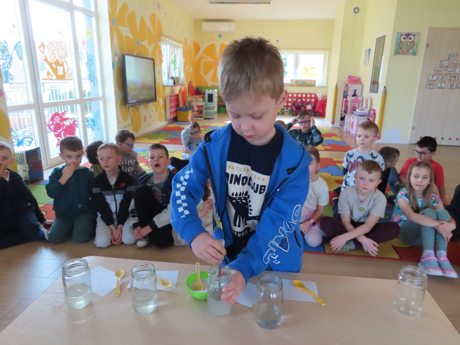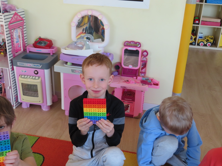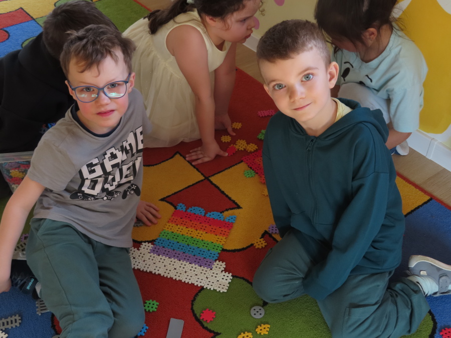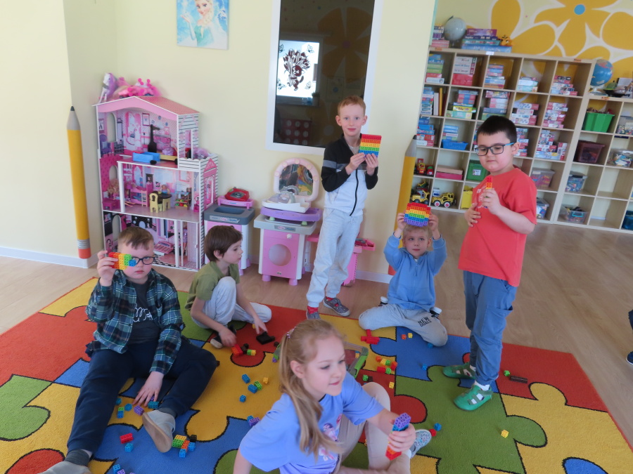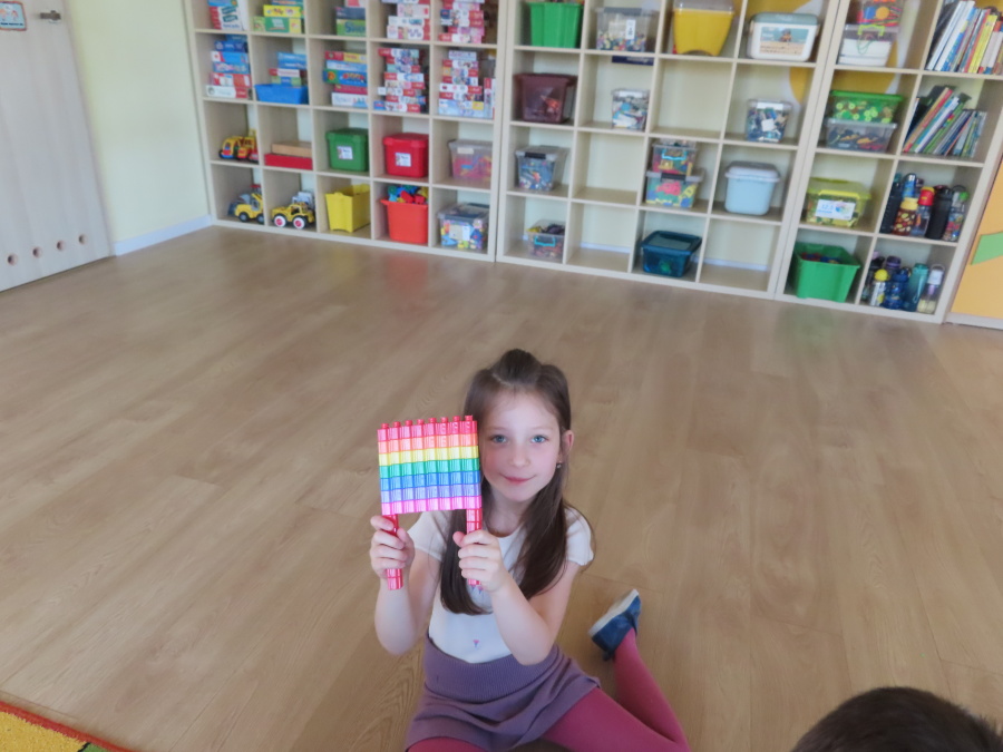 Na dzisiejszych zajęciach grupa Kropeczek rozmawiała o tęczy. Przedszkolaki obejrzały film edukacyjny o zjawiskach atmosferycznych, nazywali i przeliczali 7 kolorów tęczy. Dzieci wykonały doświadczenie pt.\" Jak powstaje tęcza\" za pomocą wody, lusterka i latarki. Uczestniczyły również w eksperymencie z bibułą, wodą i cukrem, aby zaobserwować wielobarwną ciecz. Dzieci tworzyły także tęcze z różnych rodzajów klocków dostępnych w przedszkolu. Na zakończenie Kropeczki wykonały tęczową pracę plastyczną. Była to doskonała okazja do nauki przez zabawę.