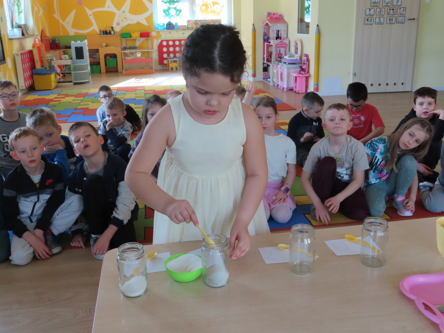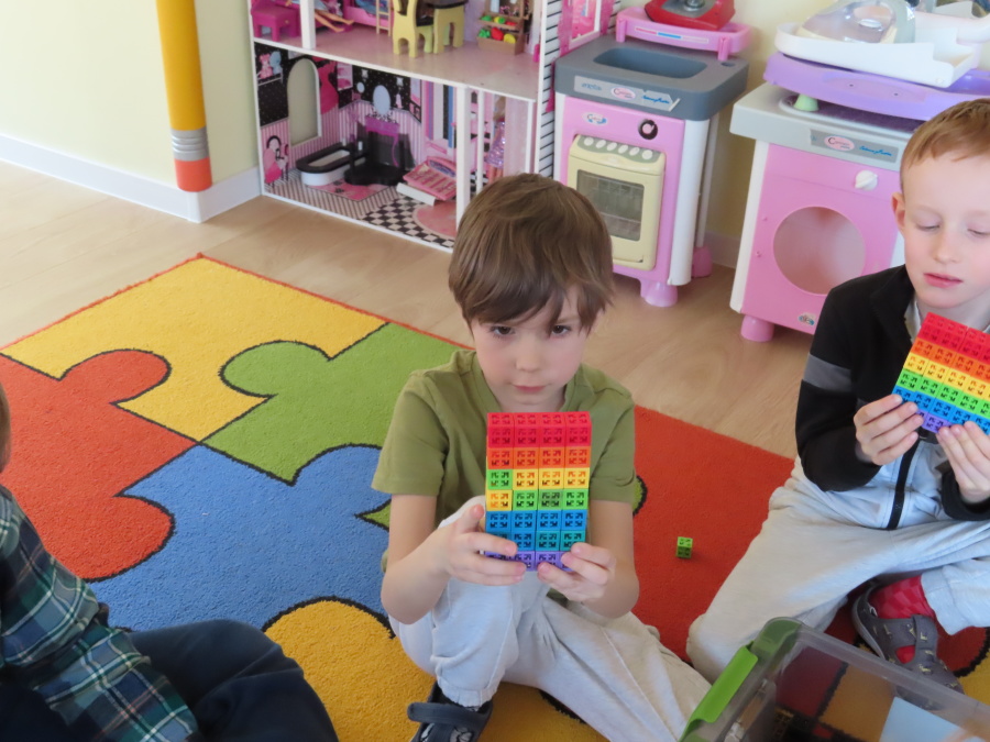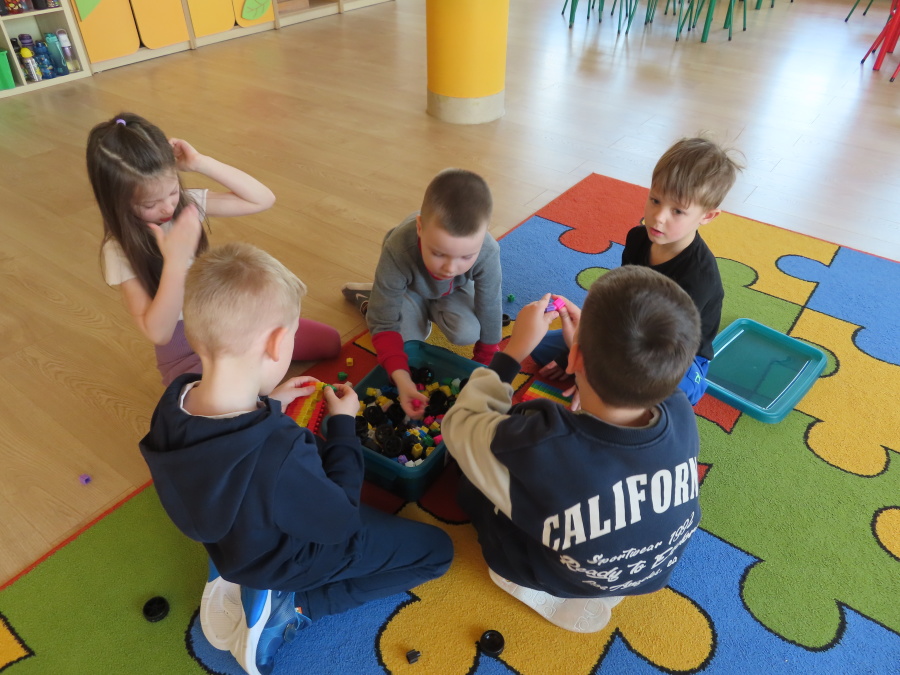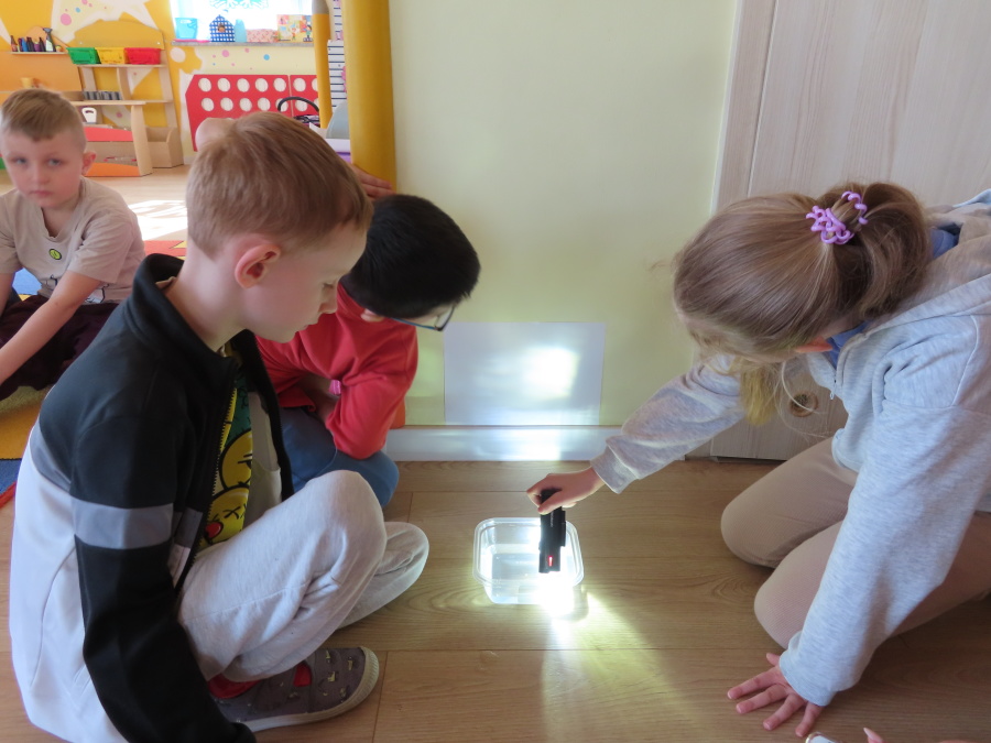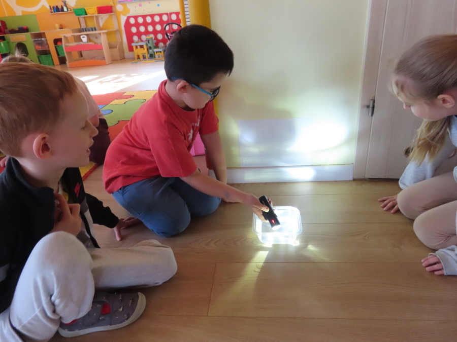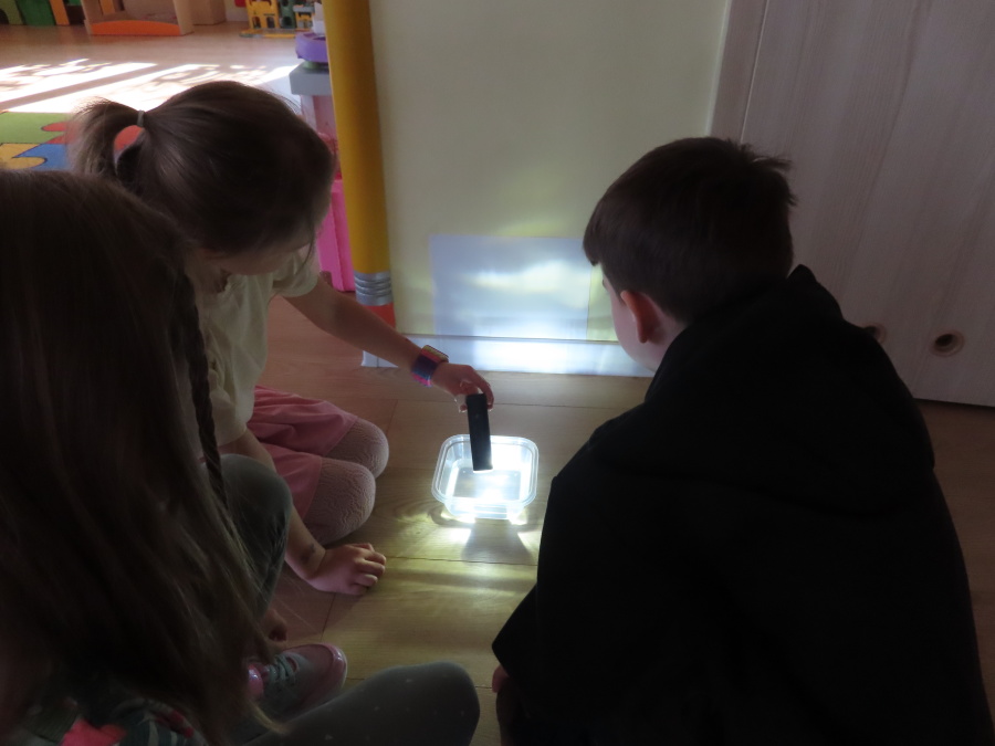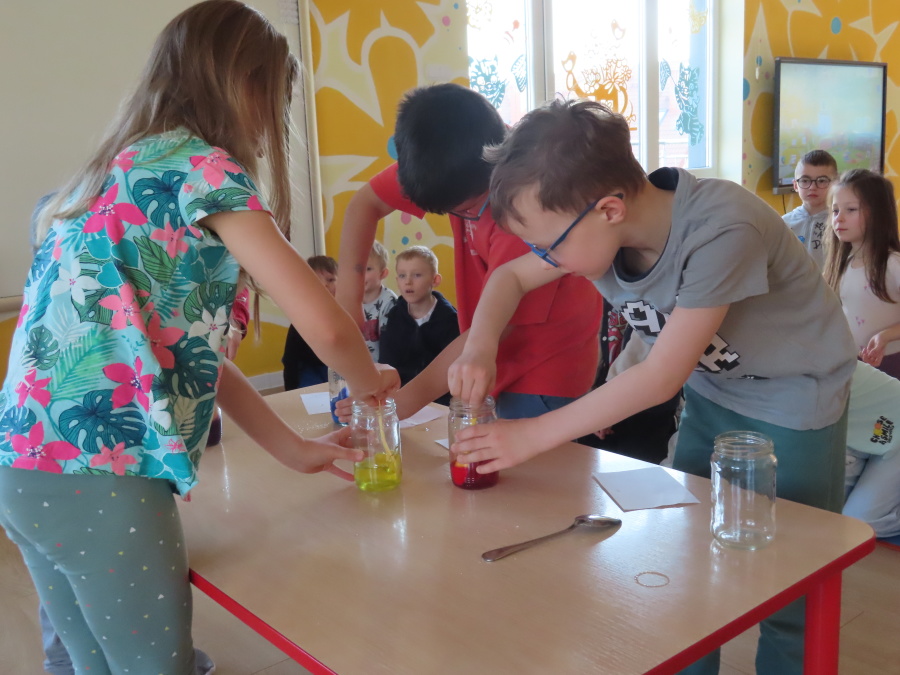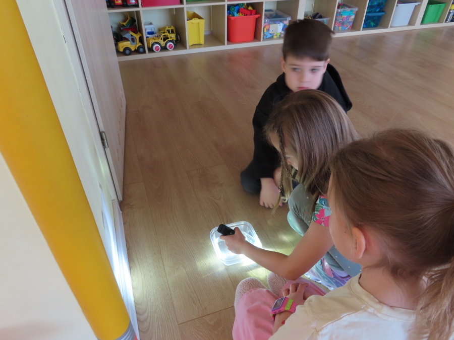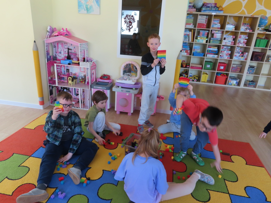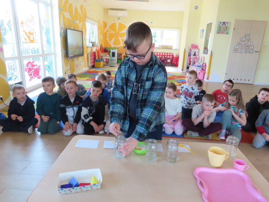 Na dzisiejszych zajęciach grupa Kropeczek rozmawiała o tęczy. Przedszkolaki obejrzały film edukacyjny o zjawiskach atmosferycznych, nazywali i przeliczali 7 kolorów tęczy. Dzieci wykonały doświadczenie pt.\" Jak powstaje tęcza\" za pomocą wody, lusterka i latarki. Uczestniczyły również w eksperymencie z bibułą, wodą i cukrem, aby zaobserwować wielobarwną ciecz. Dzieci tworzyły także tęcze z różnych rodzajów klocków dostępnych w przedszkolu. Na zakończenie Kropeczki wykonały tęczową pracę plastyczną. Była to doskonała okazja do nauki przez zabawę.