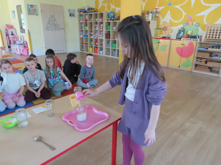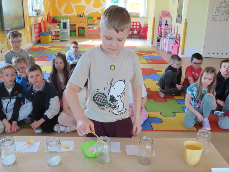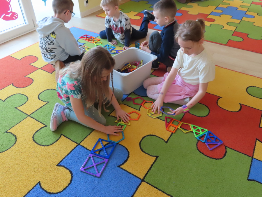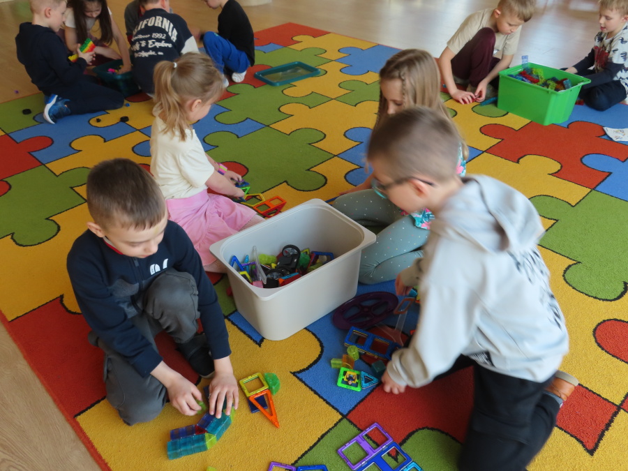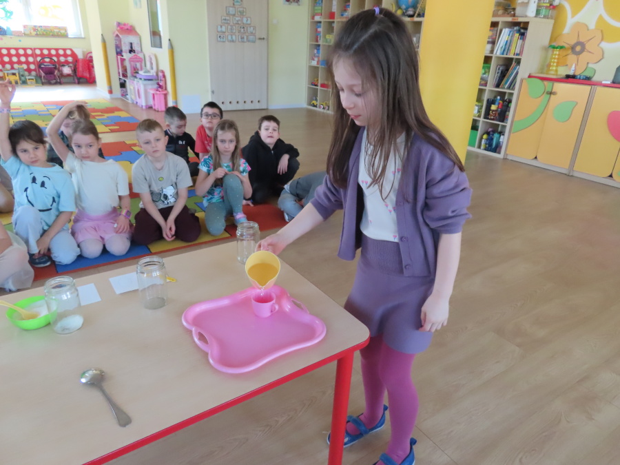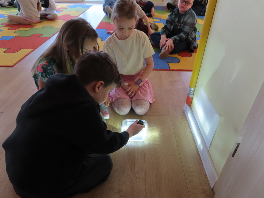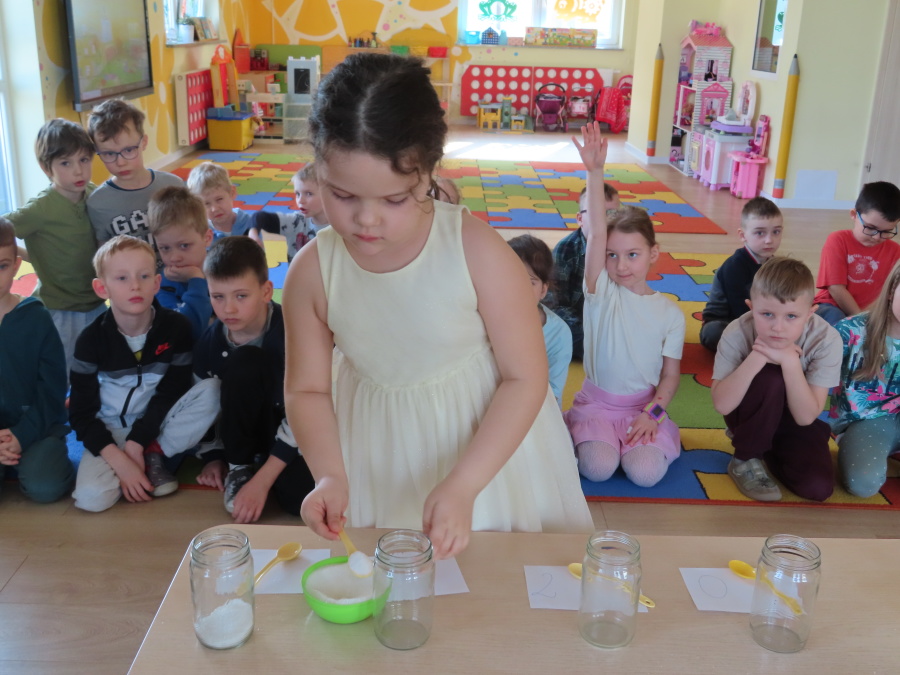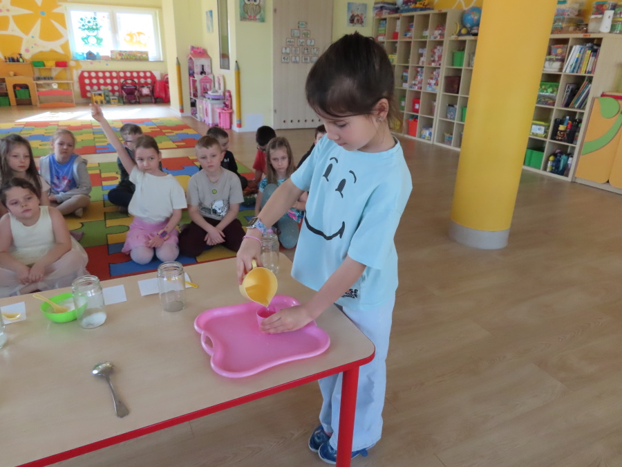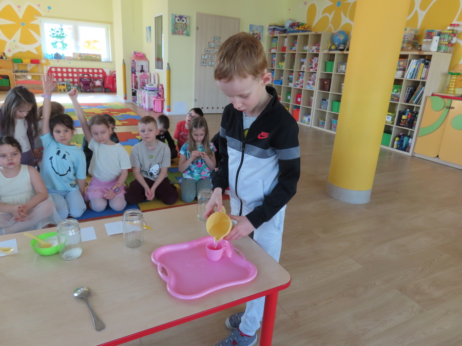 Na dzisiejszych zajęciach grupa Kropeczek rozmawiała o tęczy. Przedszkolaki obejrzały film edukacyjny o zjawiskach atmosferycznych, nazywali i przeliczali 7 kolorów tęczy. Dzieci wykonały doświadczenie pt.\" Jak powstaje tęcza\" za pomocą wody, lusterka i latarki. Uczestniczyły również w eksperymencie z bibułą, wodą i cukrem, aby zaobserwować wielobarwną ciecz. Dzieci tworzyły także tęcze z różnych rodzajów klocków dostępnych w przedszkolu. Na zakończenie Kropeczki wykonały tęczową pracę plastyczną. Była to doskonała okazja do nauki przez zabawę.