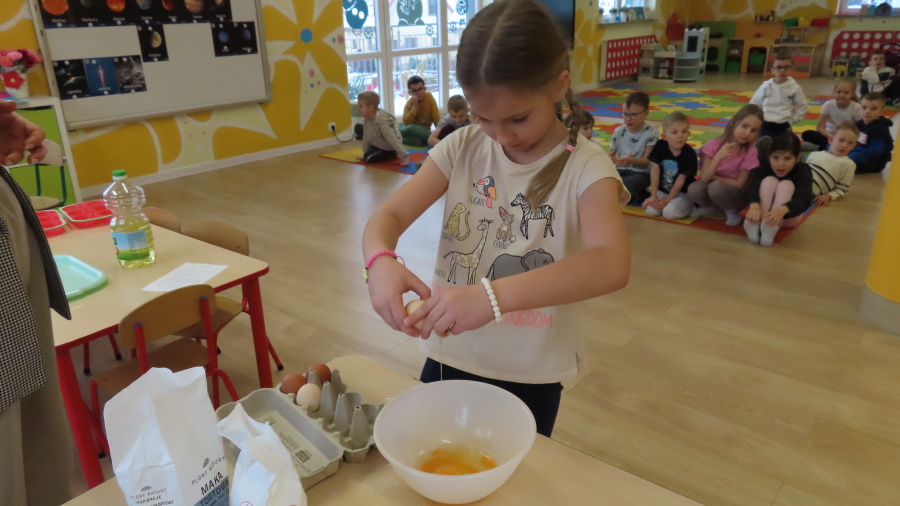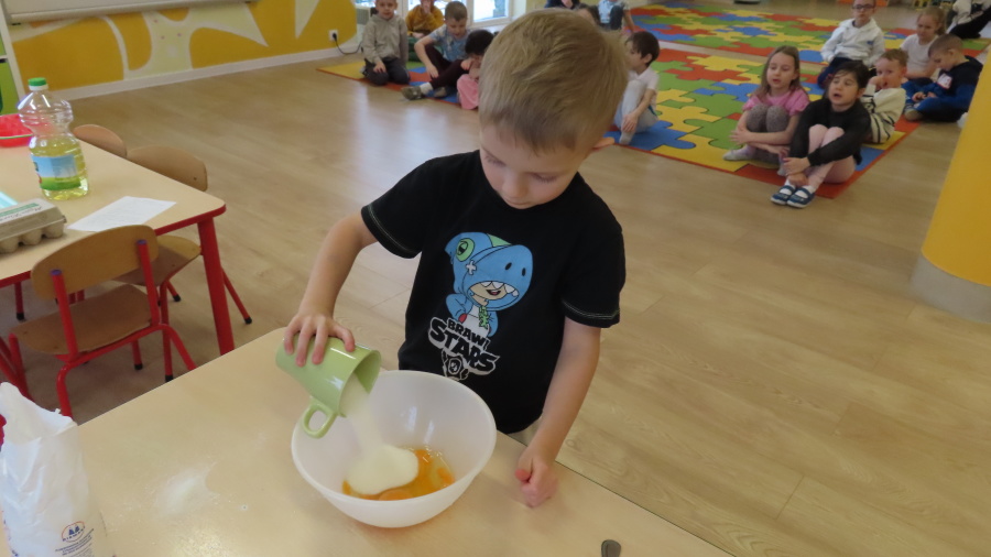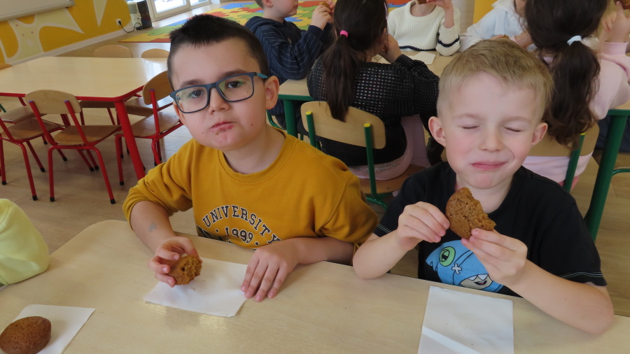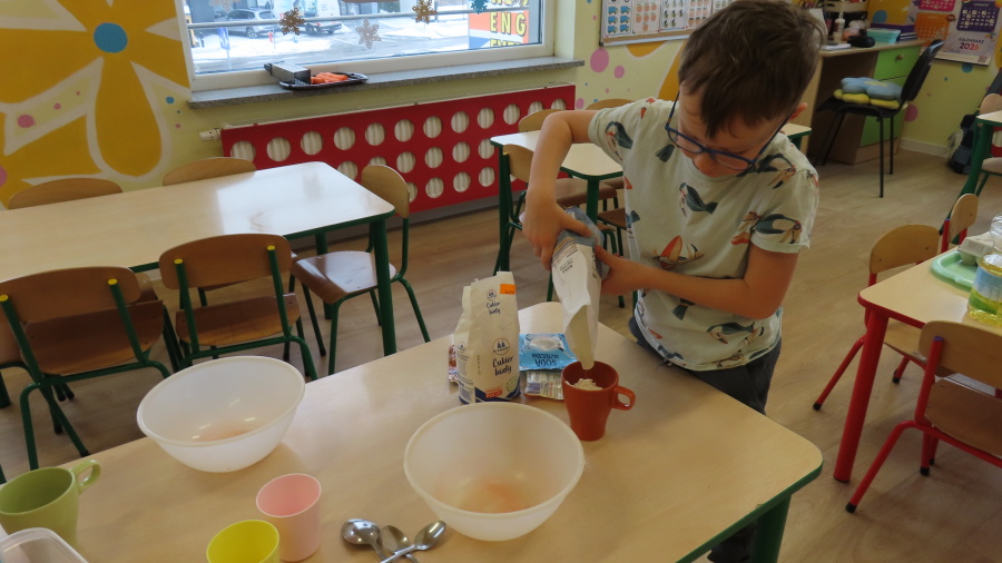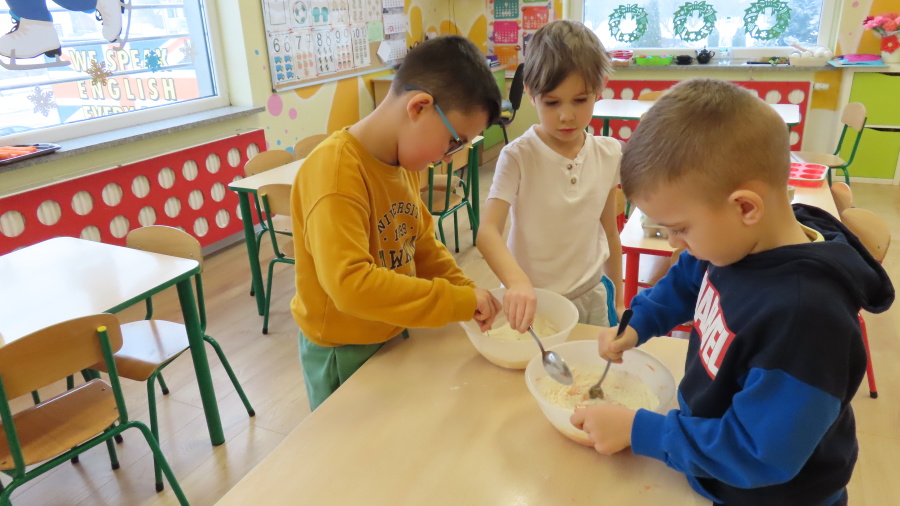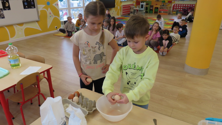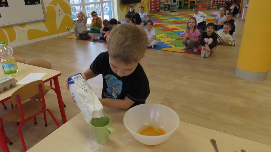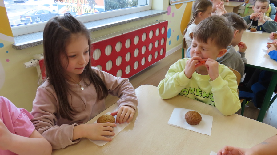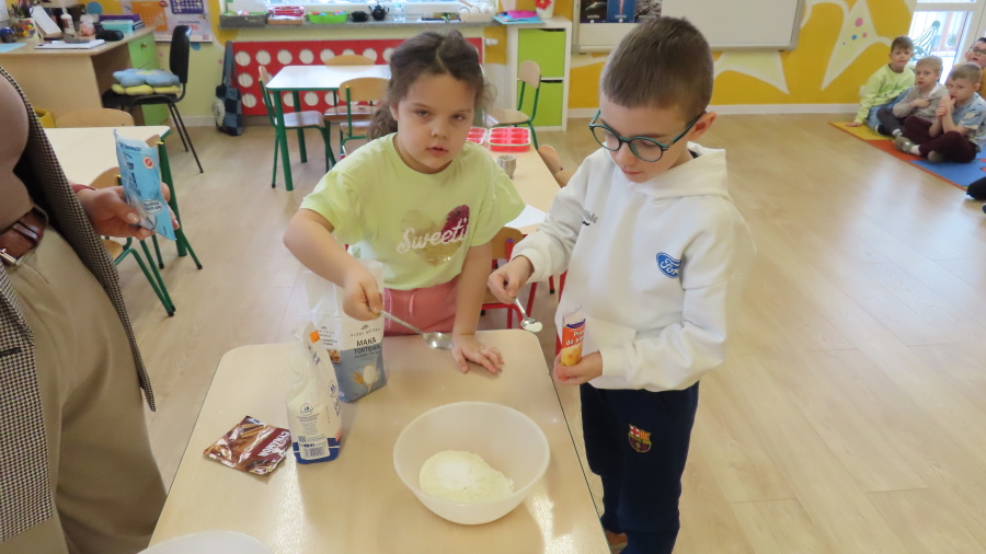 Marchewka była dziś główną postacią cyklicznych zajęć kulinarnych, które odbyły się dziś w gr. Kropeczek. Dzieci tarły marchewkę, odmierzały składniki, łączyły ze sobą produkty. Przygotowaną masę przelały do foremek. Tak przygotowanie ciasto trafiło do nagrzanego piekarnika. Cudowny zapach roznosił się po korytarzu. Po upieczeniu i ostudzeniu wszystkie muffinki szybko zniknęły z tacy.