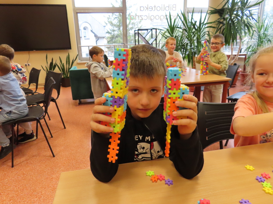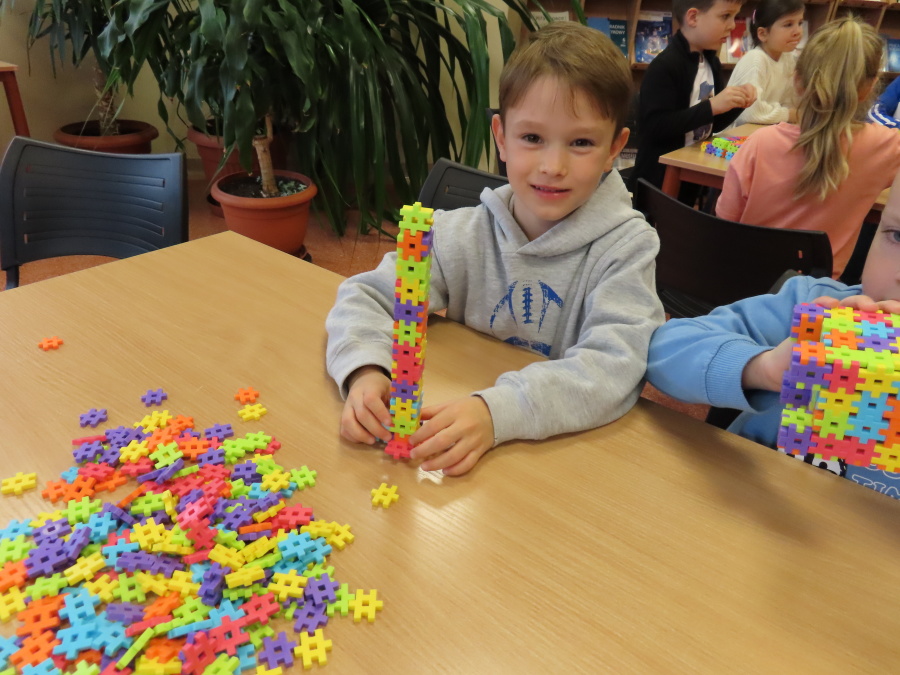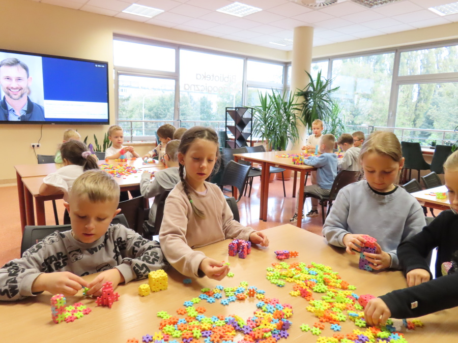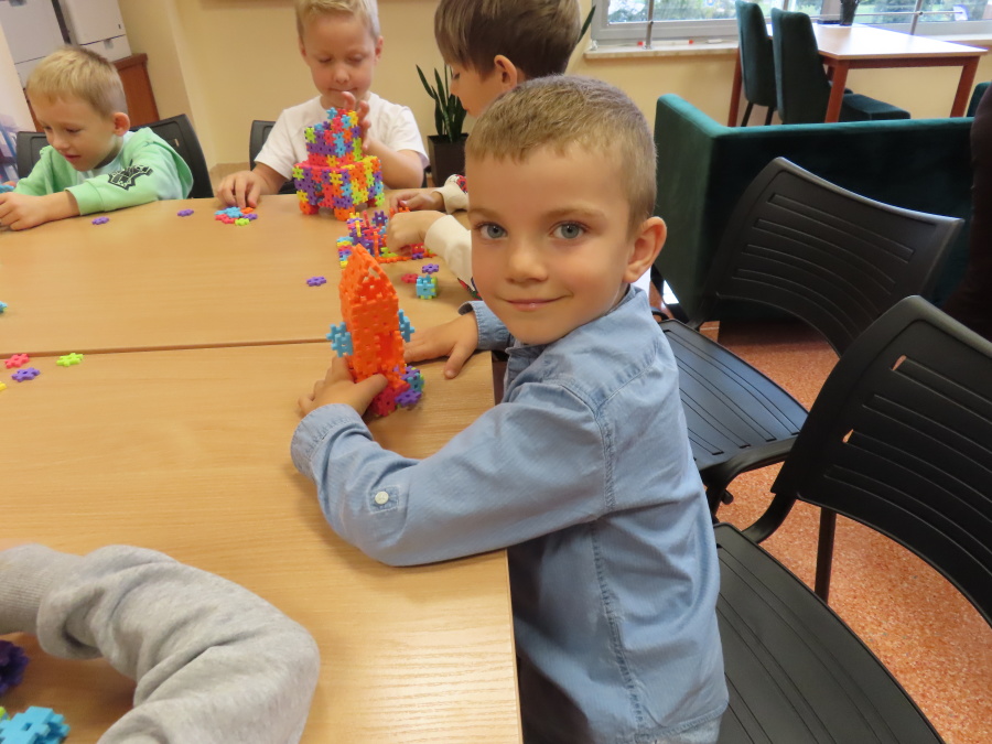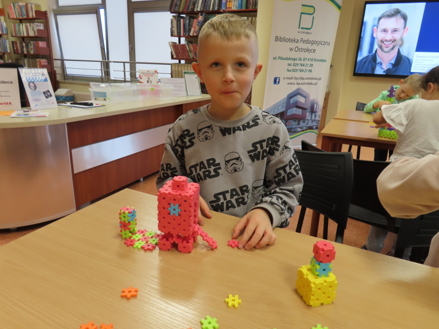 ,,Kosmiczne marzenia - nic trudnego do spełnienia\" to zajęcia w Bibliotece Pedagogicznej w Ostrołęce w których udział wzięły dziś Kropeczki. Przedszkolaki wysłuchały ciekawych informacji o polskim astronaucie - Sławoszu Uznańskim-Wiśniewskim. Następnie budowały rakiety z klocków oraz wzięły udział w kosmicznej grze edukacyjnej - podczas zajęć wykorzystano mobilną podłogę interaktywną 3w1 oraz interaktywny monitor dotykowy. Były to zajęcia, które rozbudziły wyobraźnię oraz wiedzę o kosmosie.