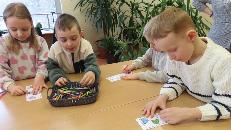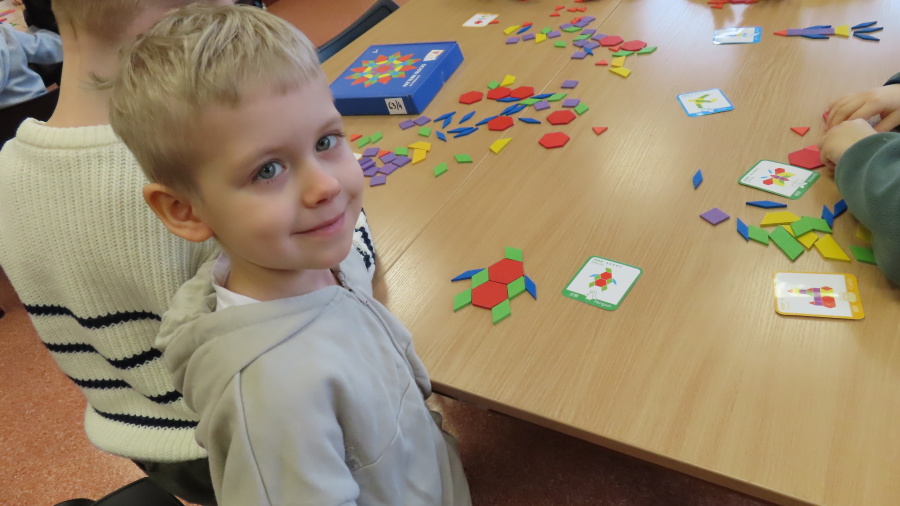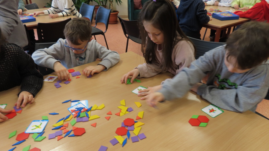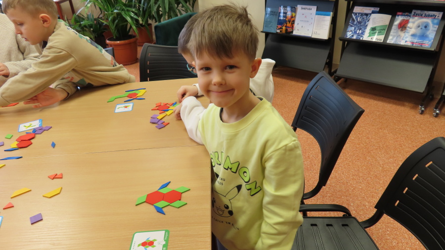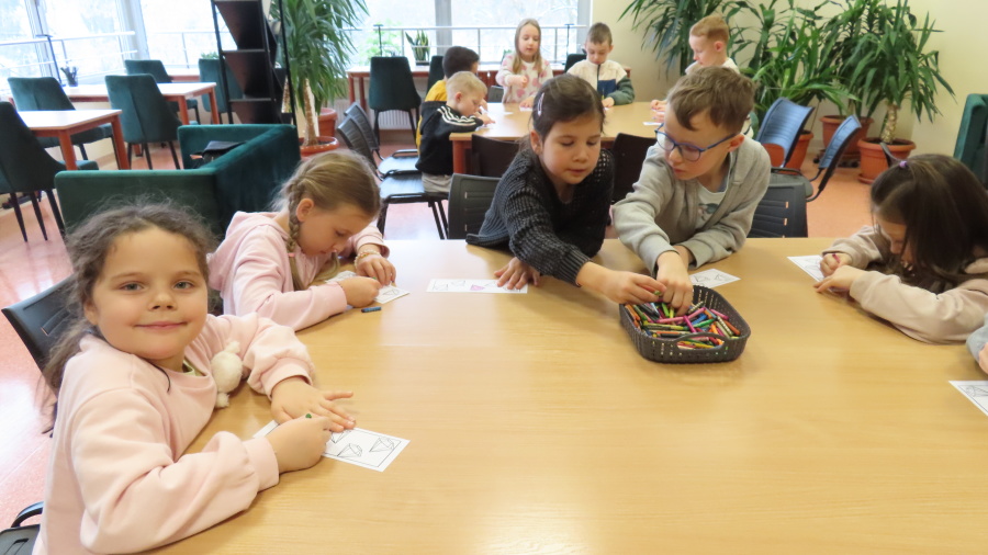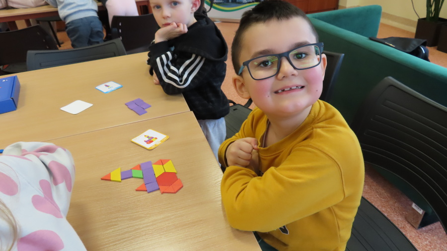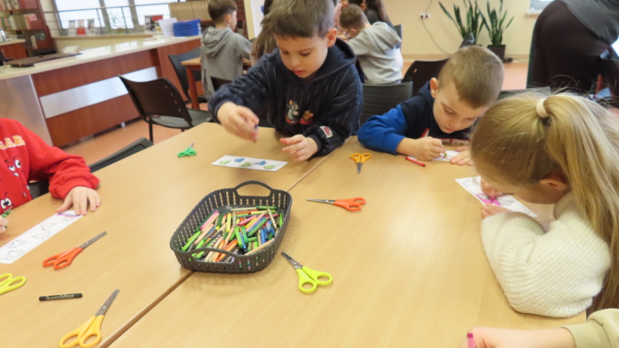 Prawdziwa przyjaźń wzbogaca nasze życie - to temat zajęć dla przedszkolaków realizowany przez Bibliotekę Pedagogiczną w Ostrołęce - którego uczestnikami były dziś Kropeczki. Przedszkolaki obejrzały i wysłuchały bajki ,,Kryształ przyjaźni\" B. Garbat w teatrzyku kamishibai. Po zapoznaniu z bajką odpowiedziały na pytanie ,,Co sprawiło, że bohaterom udało się zdobyć wyznaczoną nagrodę?\" Następnie dzieci przystąpiły do pracy z układanką, tworzyły mozaiki z klocków według wzoru na planszy. Na zakończenie spotkania każda Kropeczka wykonała zakładkę do książki dla kogoś bliskiego.