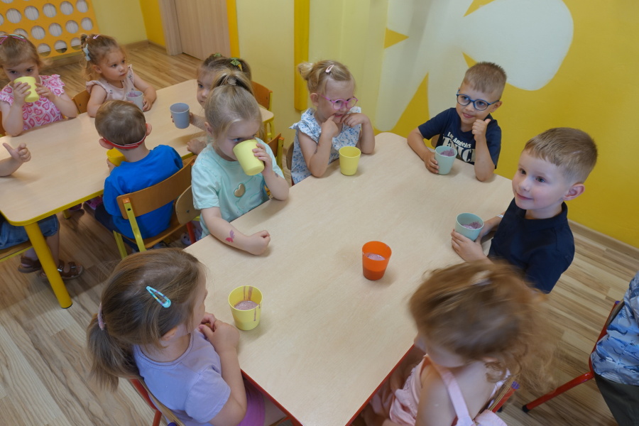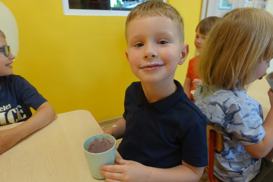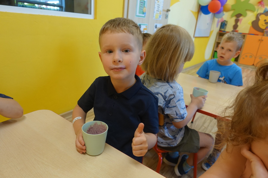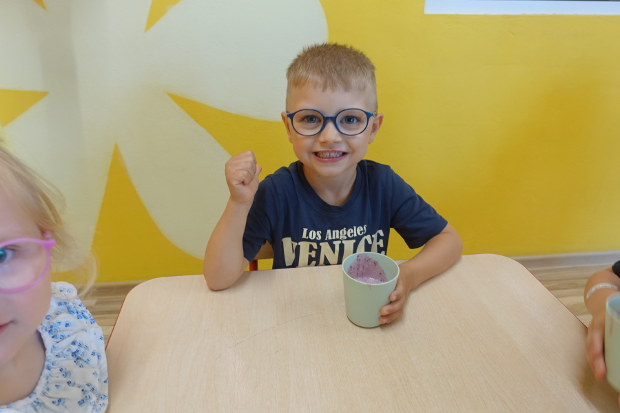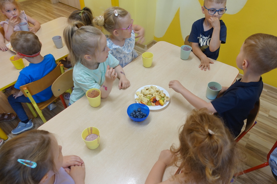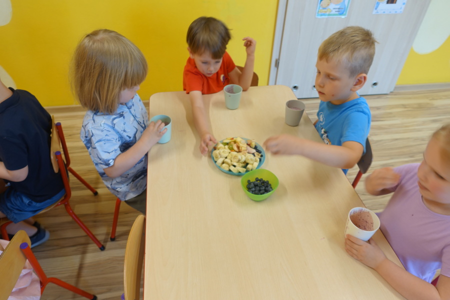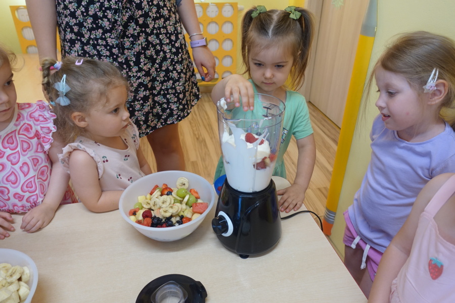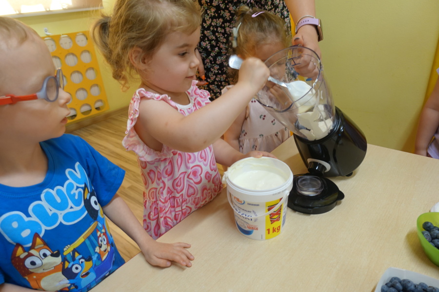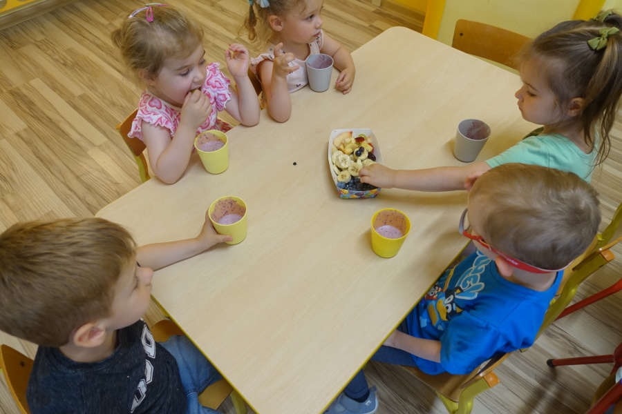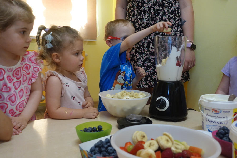 Dziś w naszej grupie Kwiatuszków odbyło się prawdziwe Owocowe Szaleństwo! Dzieci z wielkim entuzjazmem uczestniczyły w zajęciach kulinarnych, podczas których samodzielnie przygotowywały pyszny i zdrowy jogurt owocowy.