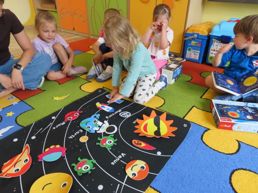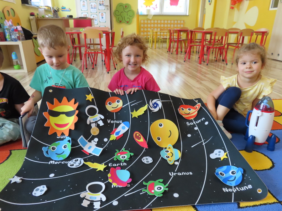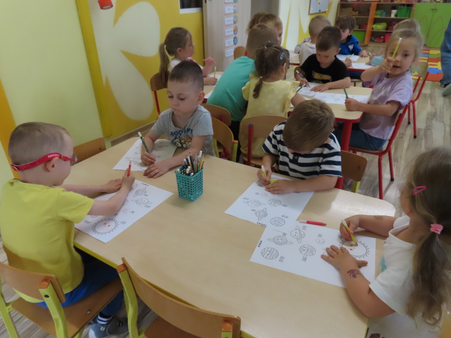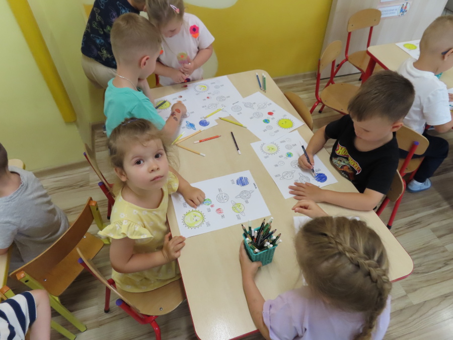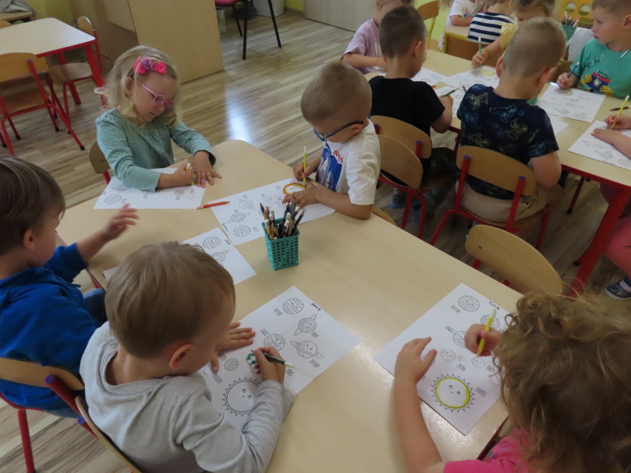 Dzień Kosmosu !???????????? Dzisiaj Kwiatuszki dowiedziały się czym są planety, gwiazdy i inne ciała niebieskie. Rozmawialiśmy także o różnych układach i tajemnicach wszechświata.???????????? Po części edukacyjnej dzieci miały okazję pokolorować ilustracje przedstawiające planety, rakiety i astronautów. To był naprawdę kosmiczny dzień.????????????