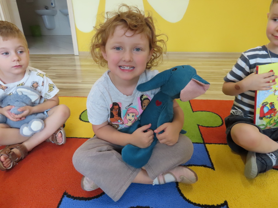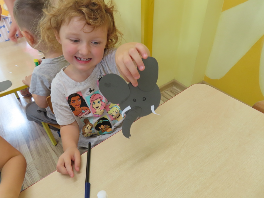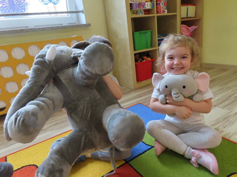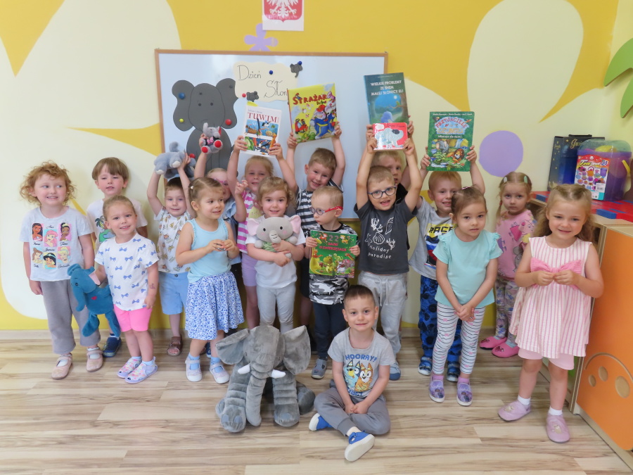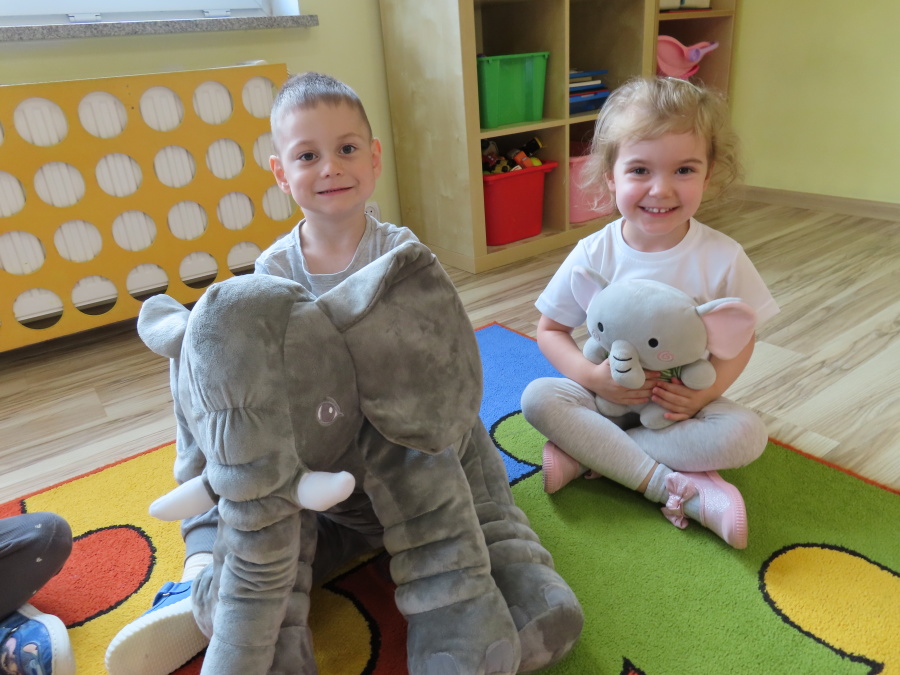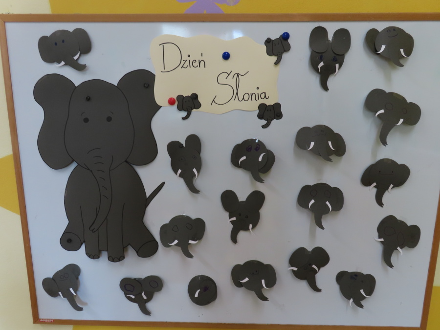 \"Dzień Słonia\" - z tej okazji dzieci przyniosły do przedszkola swoje pluszaki i książeczki które wspólnie czytaliśmy. Obejrzeliśmy film edukacyjny o słoniach aby dowiedzieć się o nich jak najwięcej i bawiliśmy się naśladując te potężne zwierzęta. Następnie wszyscy wykonaliśmy pracę plastyczną świetnie się przy tym bawiąc .