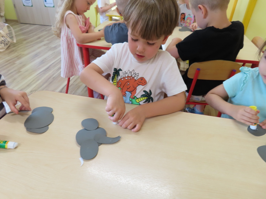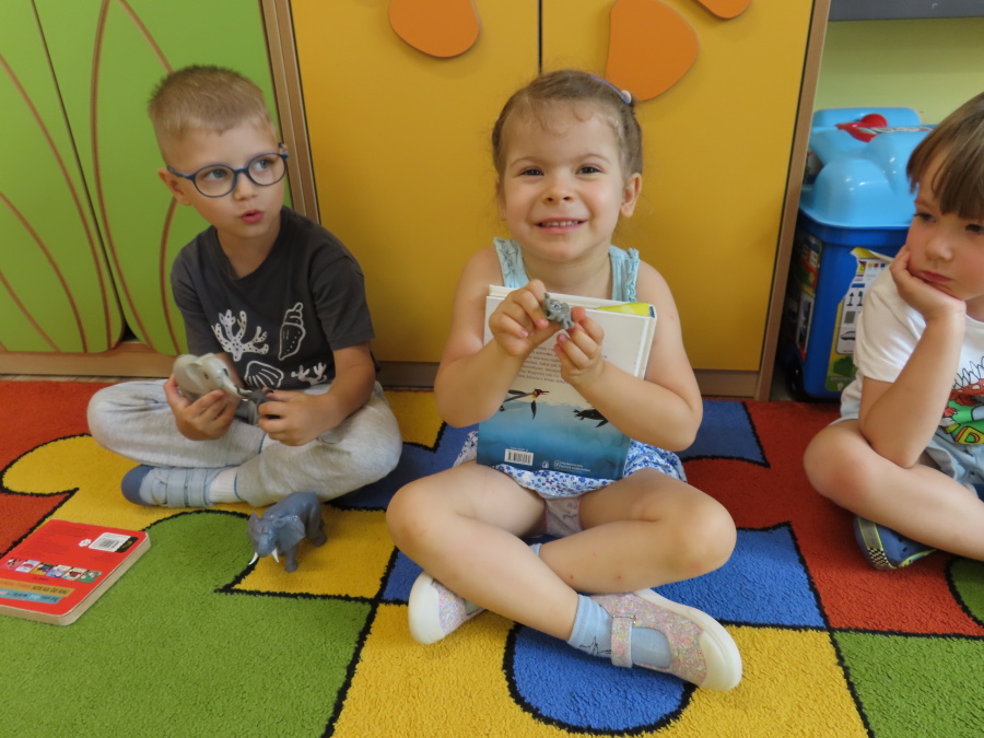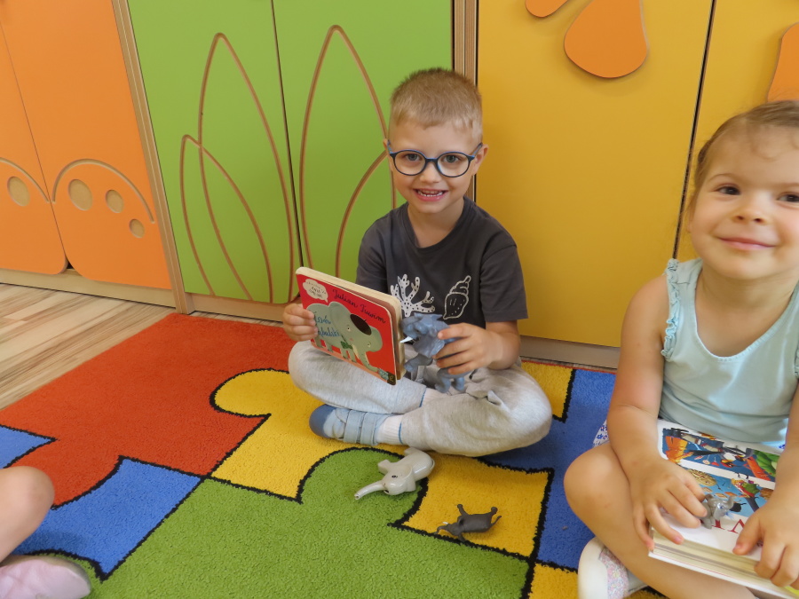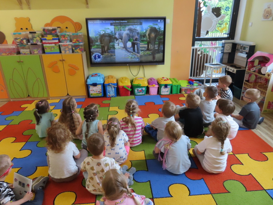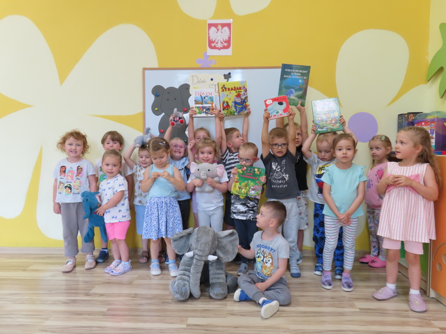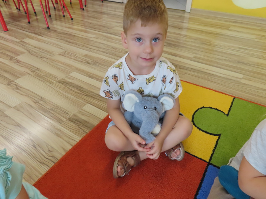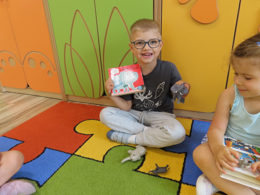 \"Dzień Słonia\" - z tej okazji dzieci przyniosły do przedszkola swoje pluszaki i książeczki które wspólnie czytaliśmy. Obejrzeliśmy film edukacyjny o słoniach aby dowiedzieć się o nich jak najwięcej i bawiliśmy się naśladując te potężne zwierzęta. Następnie wszyscy wykonaliśmy pracę plastyczną świetnie się przy tym bawiąc .