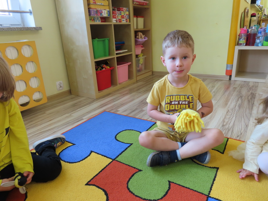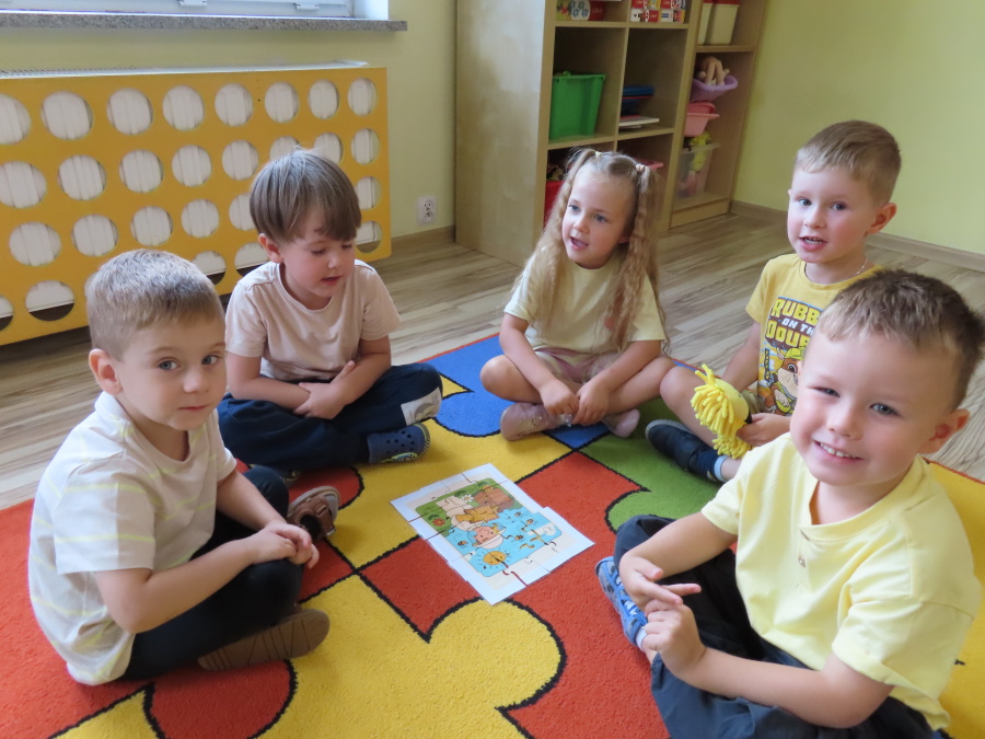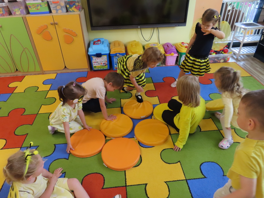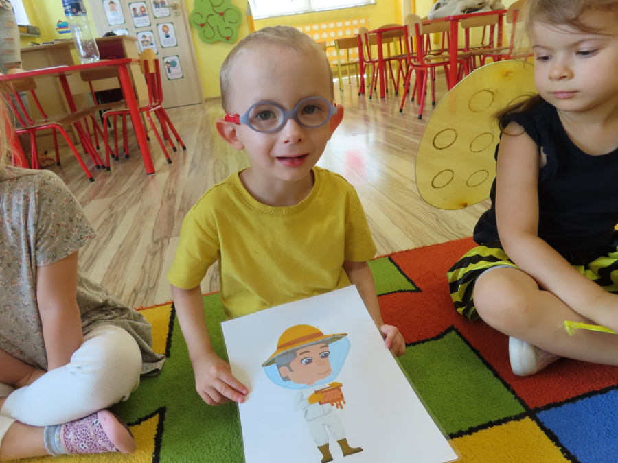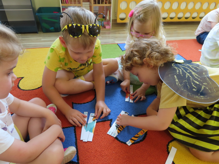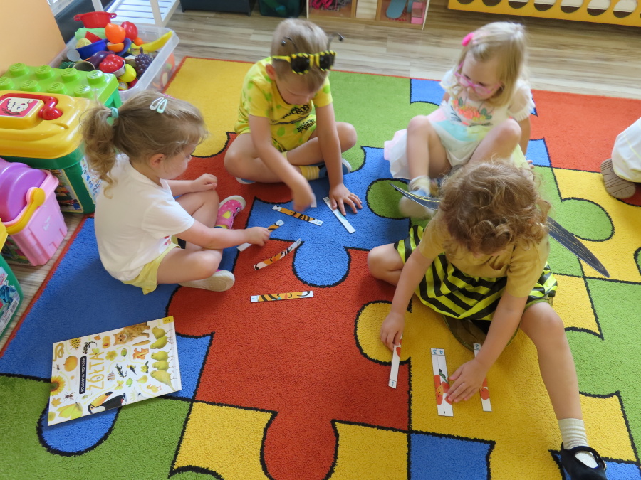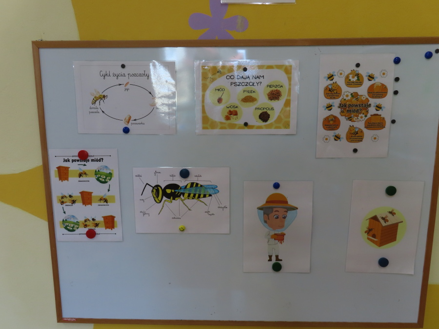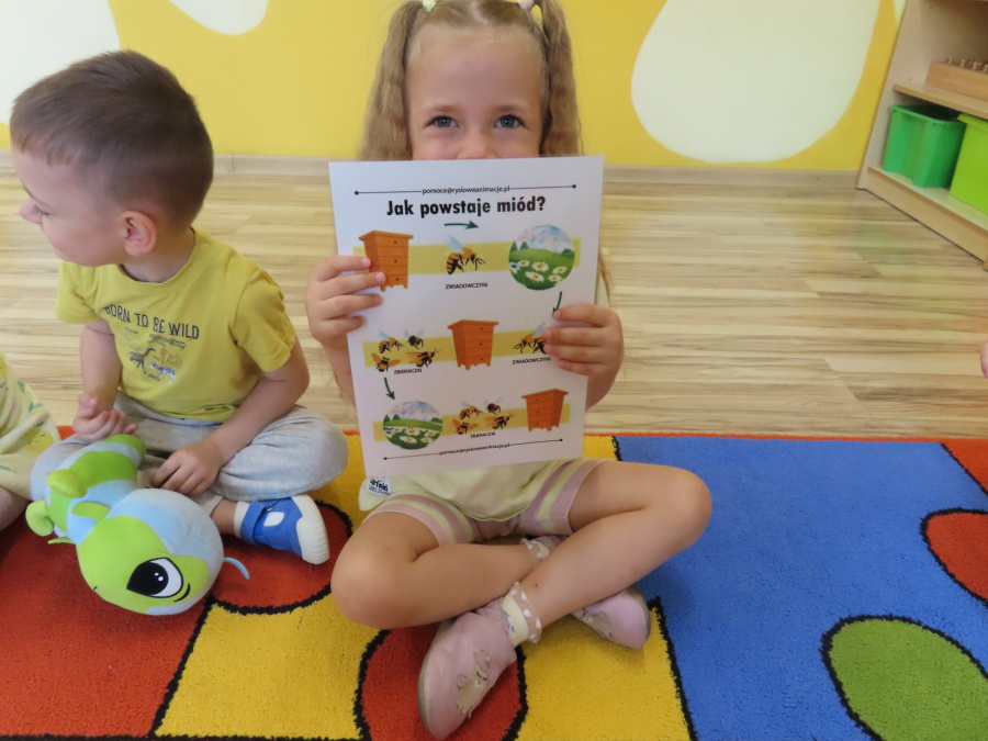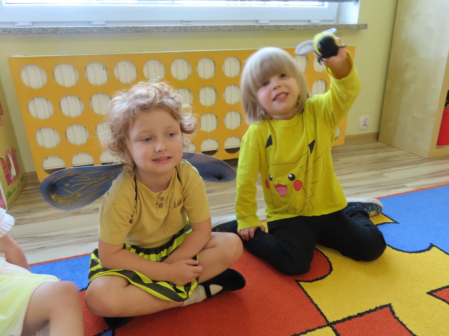 Dziś w naszej grupie świętowaliśmy Dzień Pszczoły. Z tej okazji odbyły się tematyczne zajęcia edukacyjne, podczas których dzieci miały okazję bliżej poznać życie pszczół i ich ogromne znaczenie dla przyrody. Na początku wspólnie rozmawialiśmy o pszczołach, następnie dzieci obejrzały film edukacyjny, który w ciekawy sposób przybliżył im temat życia w ulu. Nie zabrakło również zabaw ruchowych, dzieci wcieliły się w role pszczółek i na hasło \"Pszczółki do ula!\" z radością chowały się do wyznaczonego miejsca. Wspólnymi siłami zbudowaliśmy też plaster miodu, układaliśmy tematyczne puzzle, a dzieci z dumą prezentowały swoje książki i zabawki o pszczołach, które przyniosły z domu.