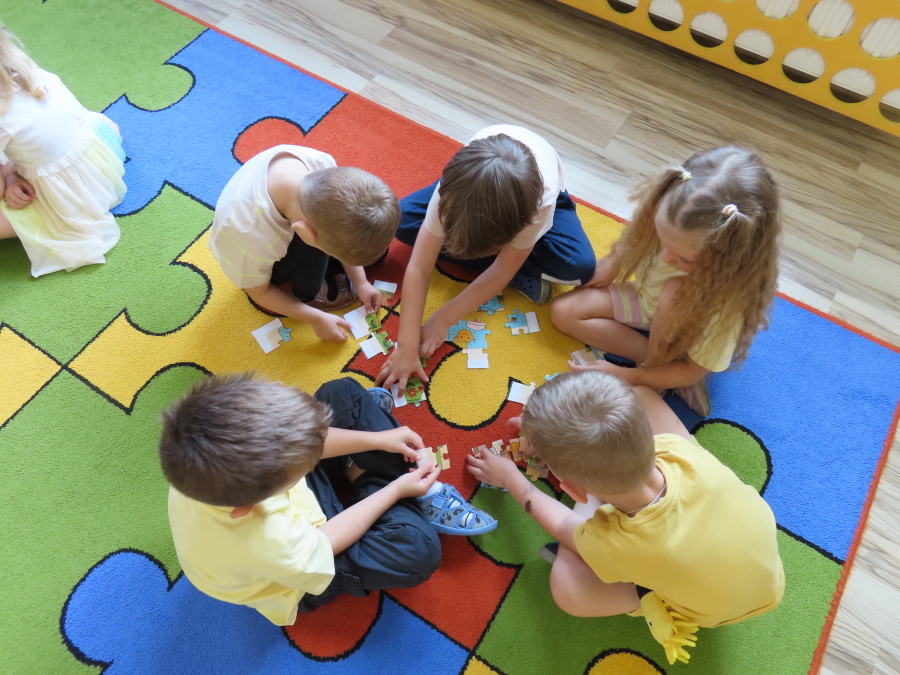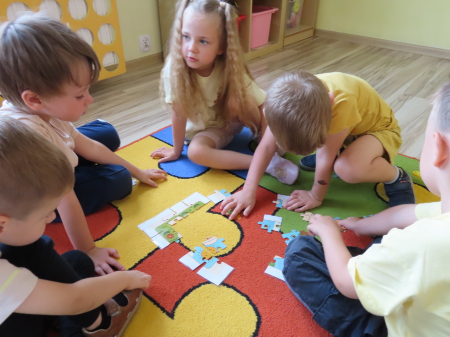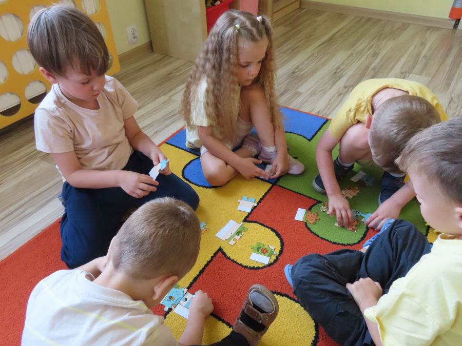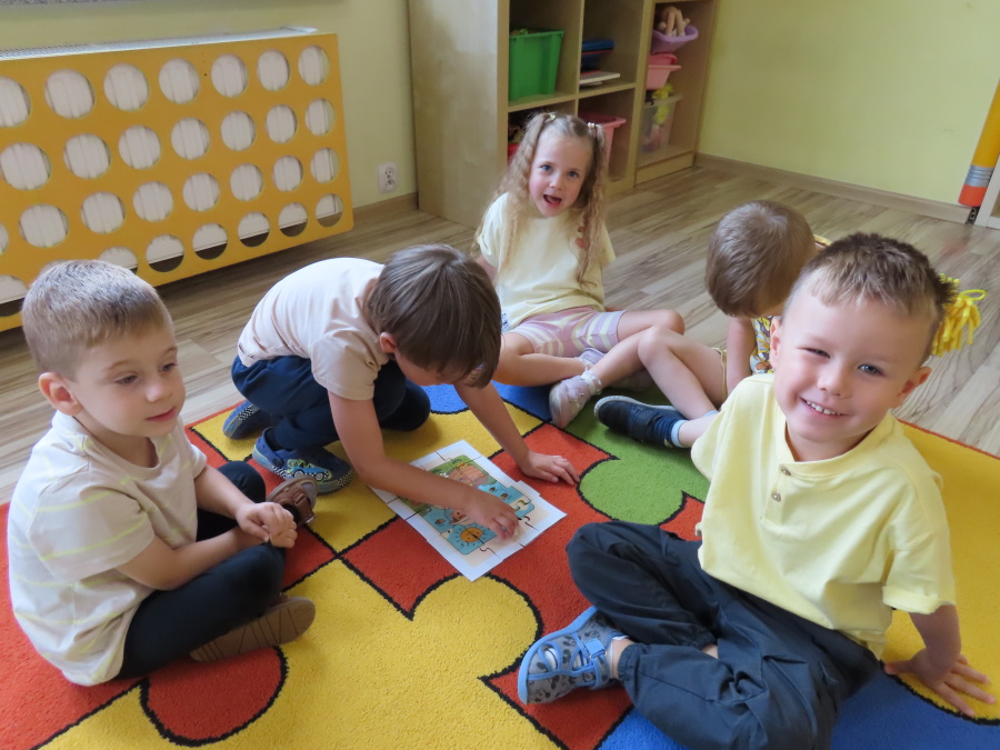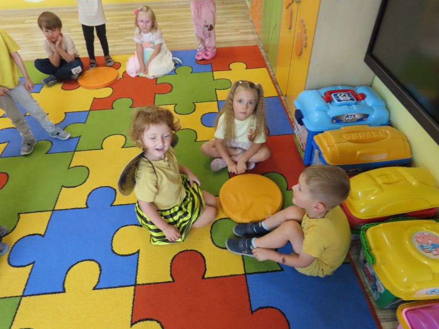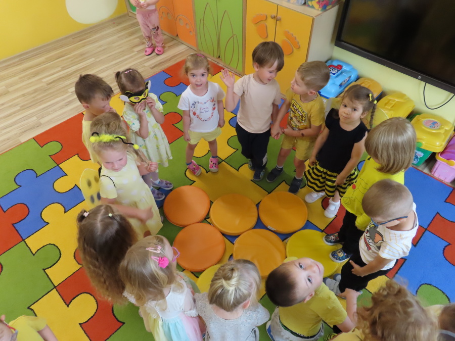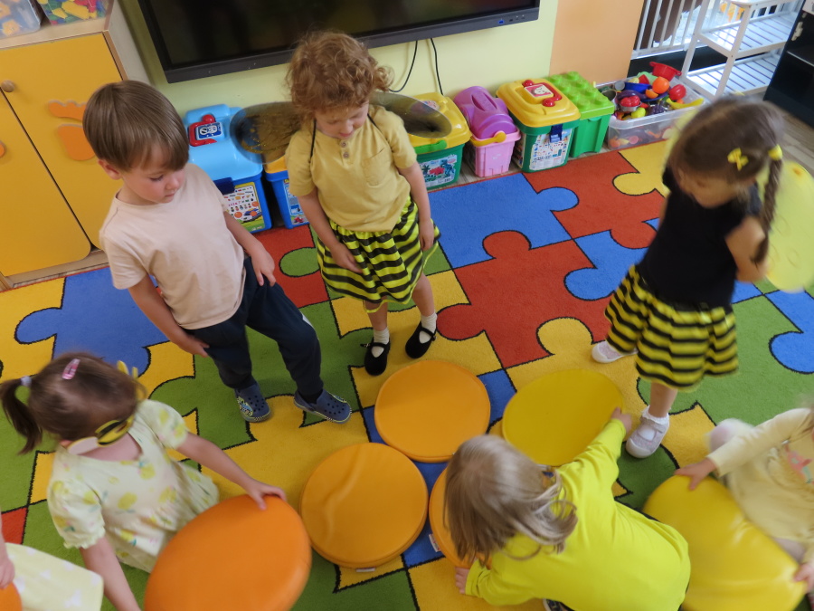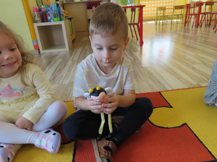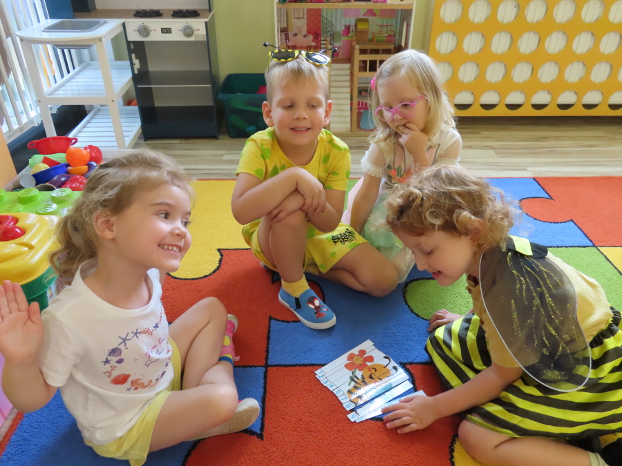 Dziś w naszej grupie świętowaliśmy Dzień Pszczoły. Z tej okazji odbyły się tematyczne zajęcia edukacyjne, podczas których dzieci miały okazję bliżej poznać życie pszczół i ich ogromne znaczenie dla przyrody. Na początku wspólnie rozmawialiśmy o pszczołach, następnie dzieci obejrzały film edukacyjny, który w ciekawy sposób przybliżył im temat życia w ulu. Nie zabrakło również zabaw ruchowych, dzieci wcieliły się w role pszczółek i na hasło \"Pszczółki do ula!\" z radością chowały się do wyznaczonego miejsca. Wspólnymi siłami zbudowaliśmy też plaster miodu, układaliśmy tematyczne puzzle, a dzieci z dumą prezentowały swoje książki i zabawki o pszczołach, które przyniosły z domu.