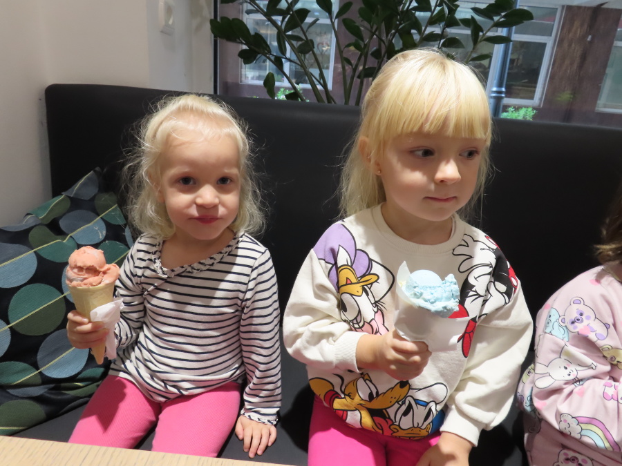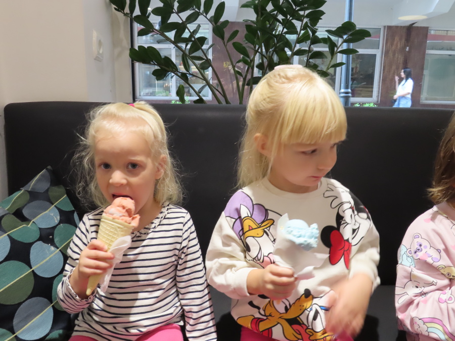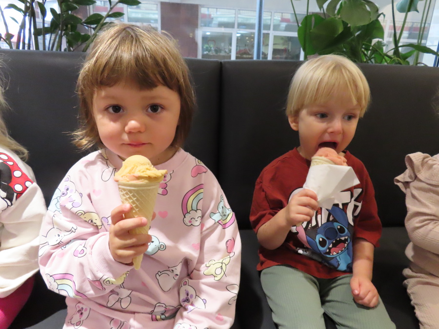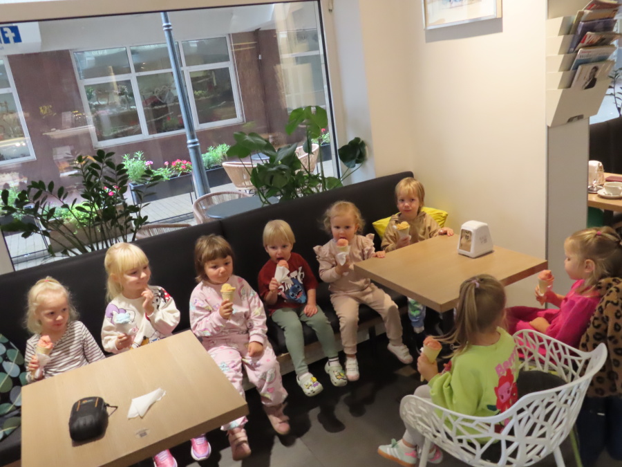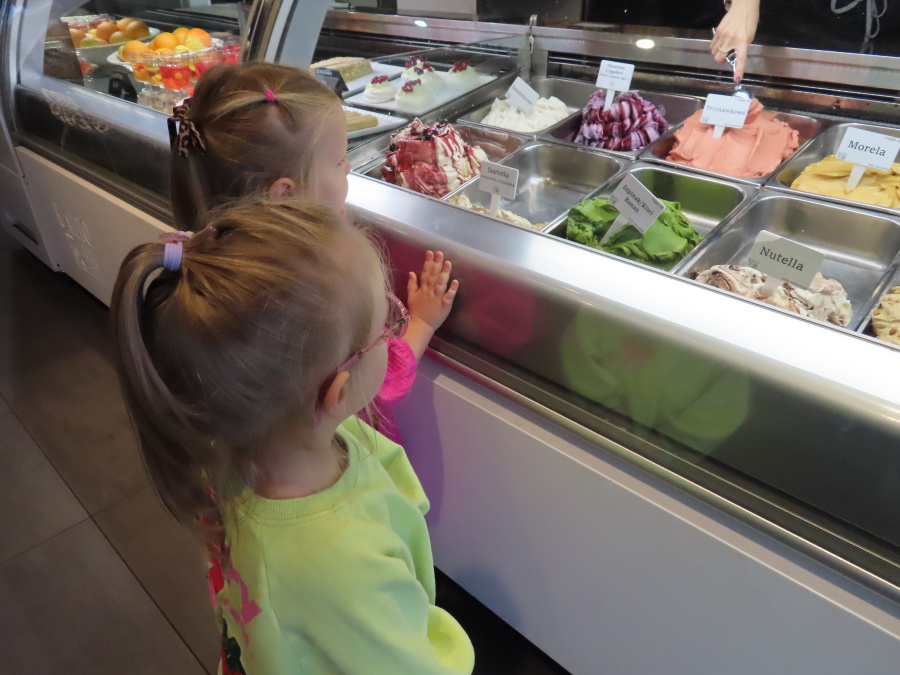 Z okazji Dnia Przedszkolaka grupa Kwiatuszków wybrała się na lody. Po dotarciu do lodziarni każdy miał możliwość wyboru ulubionych smaków lodów. W ofercie znajdowały się zarówno klasyczne smaki, takie jak waniliowy, czekoladowy czy truskawkowy, jak i bardziej nietypowe – m.in. mango, słony karmel czy pistacja. Atmosfera była bardzo radosna i sprzyjała rozmowom oraz lepszemu poznaniu się nawzajem. Wyjście na lody okazało się udane i sprawiło dzieciom radość. W drodze do lodziarni spotkaliśmy sympatycznego pana, który prowadzi sklep obuwniczy. Podarował każdemu dziecku po balonie.