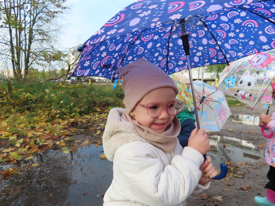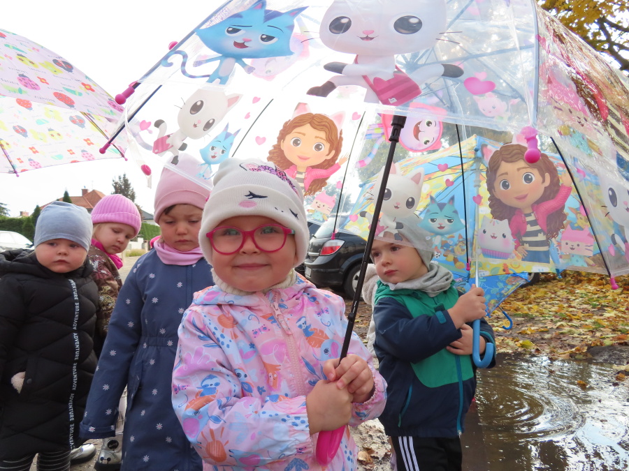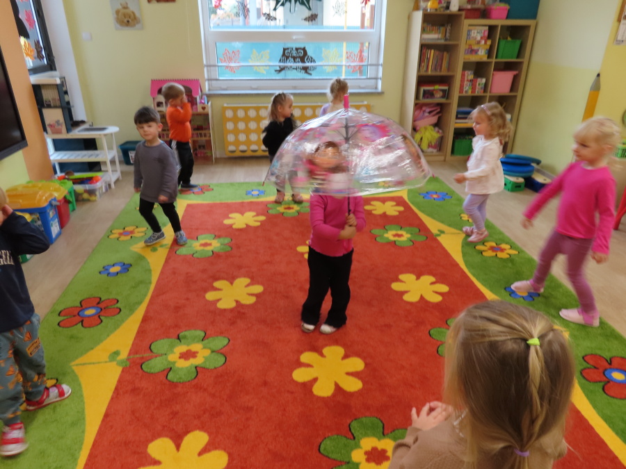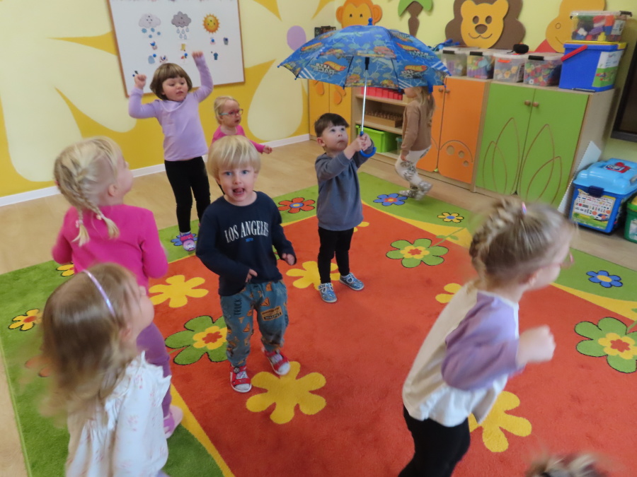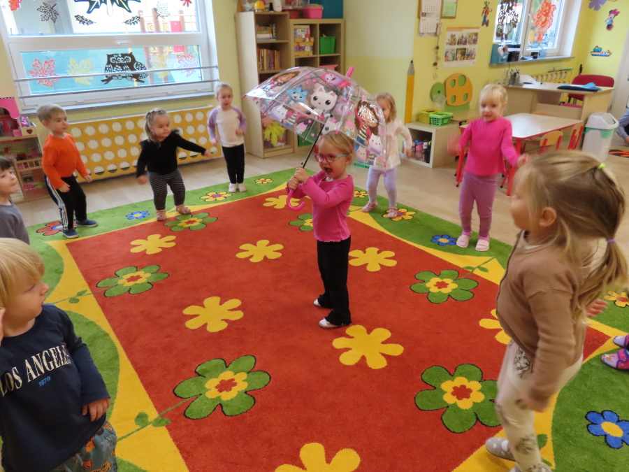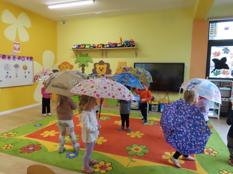 Dzisiaj w naszej grupie rozmawialiśmy o tym, jak ubrać się odpowiednio do występującej pogody. Dzieci świetnie poradziły sobie z rozpoznawaniem ubrań i akcesoriów na każdą aurę ☀️????️❄️ Nie zabrakło też ruchu. W sali powstał deszczowy tor przeszkód, na którym dzieci skakały i omijały kałużę. Dzieci wcieliły się także w parasolki, poruszając się tak, jak one. Rozchylały się, zamykały i tańczyły na deszczu! ???????? Na zakończenie naszego deszczowego dnia wyszliśmy na spacer w kolorowych ubraniach przeciwdeszczowych, aby poszukać prawdziwych kałuż. To był dzień pełen radości i śmiechu.