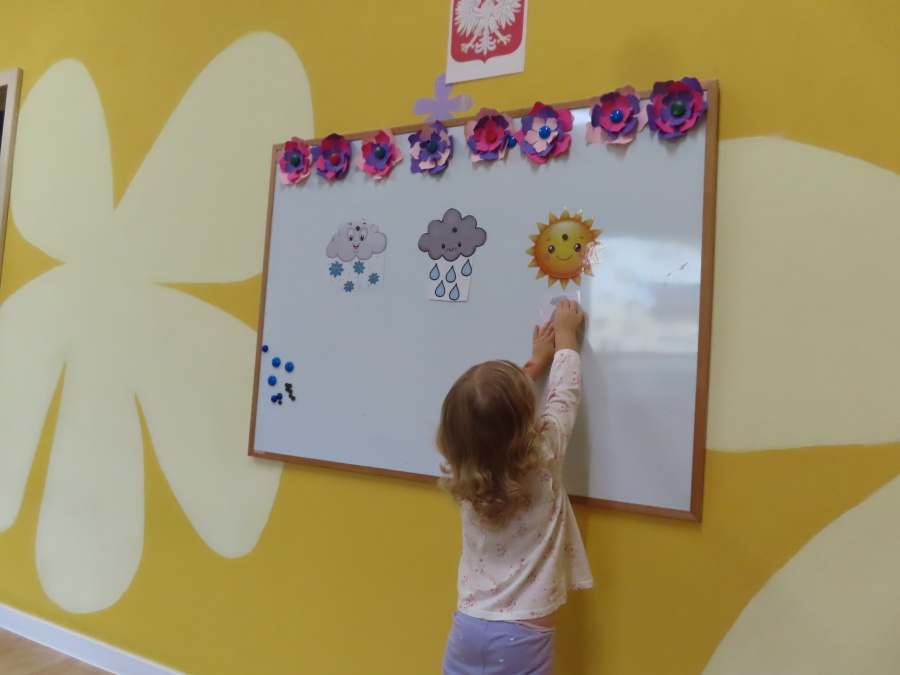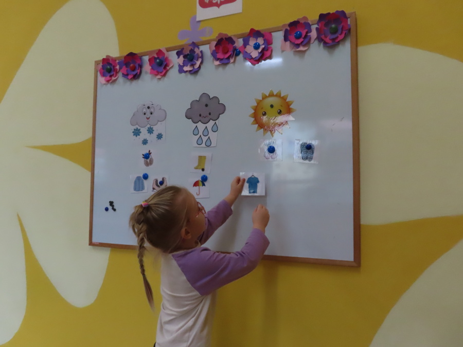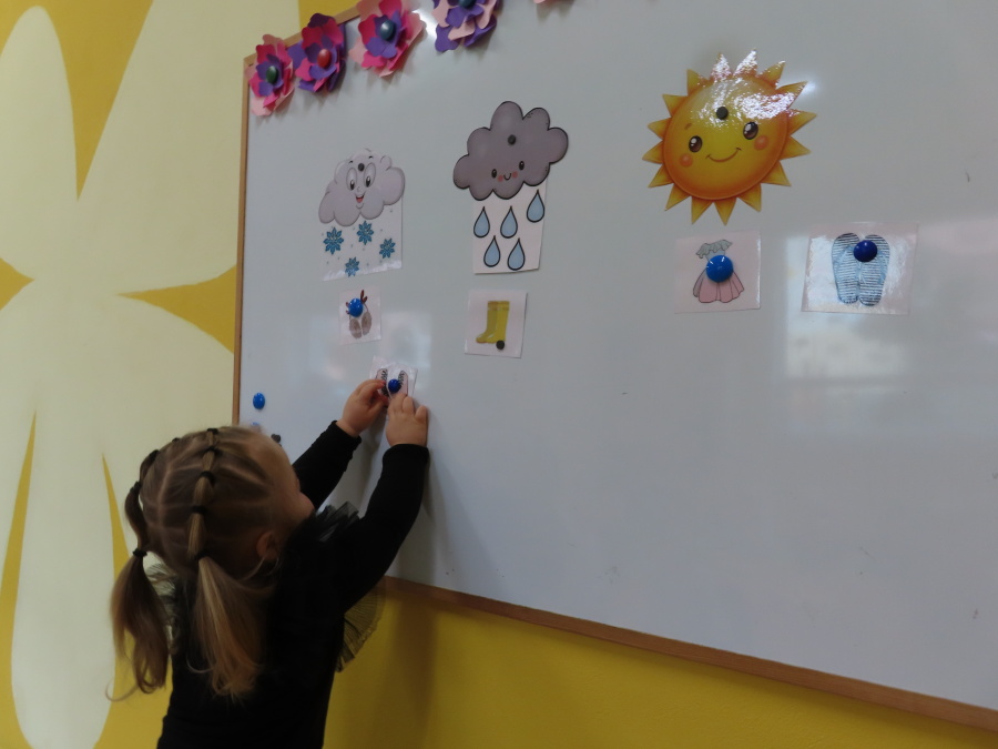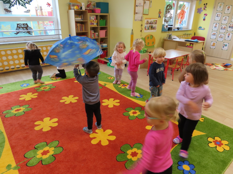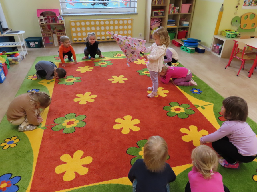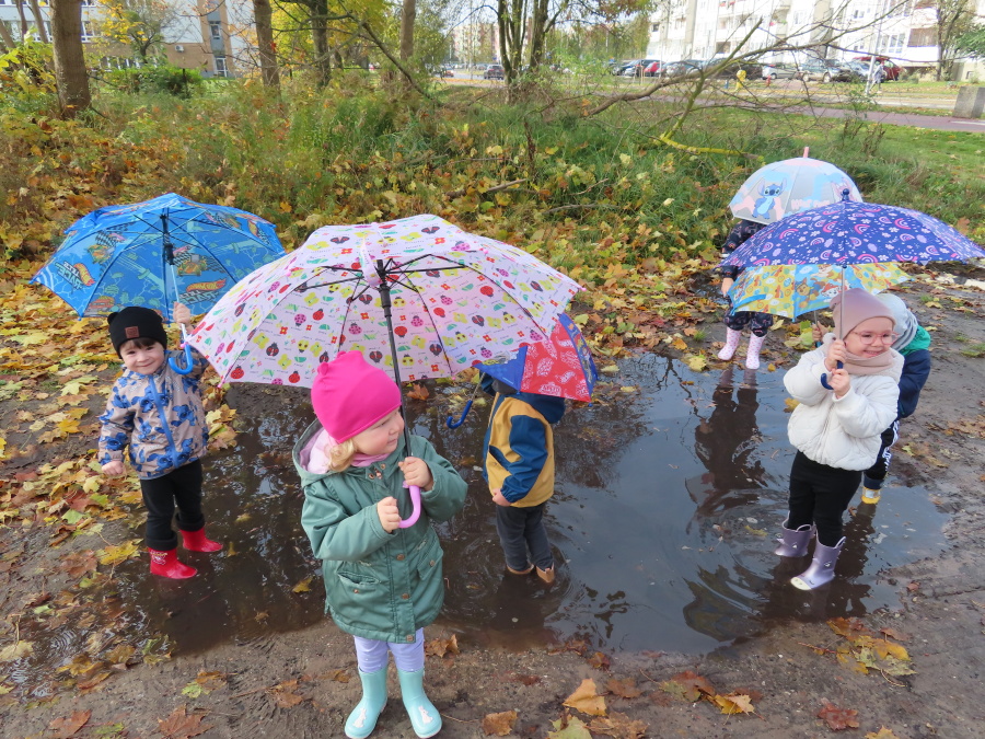 Dzisiaj w naszej grupie rozmawialiśmy o tym, jak ubrać się odpowiednio do występującej pogody. Dzieci świetnie poradziły sobie z rozpoznawaniem ubrań i akcesoriów na każdą aurę ☀️????️❄️ Nie zabrakło też ruchu. W sali powstał deszczowy tor przeszkód, na którym dzieci skakały i omijały kałużę. Dzieci wcieliły się także w parasolki, poruszając się tak, jak one. Rozchylały się, zamykały i tańczyły na deszczu! ???????? Na zakończenie naszego deszczowego dnia wyszliśmy na spacer w kolorowych ubraniach przeciwdeszczowych, aby poszukać prawdziwych kałuż. To był dzień pełen radości i śmiechu.