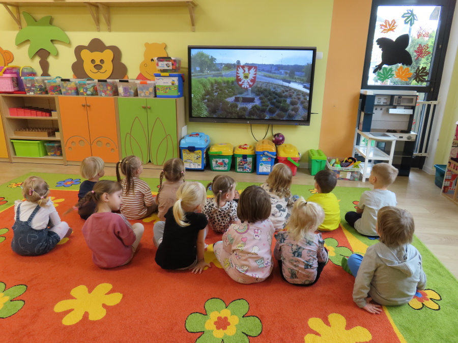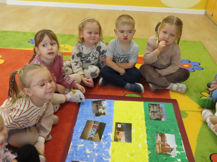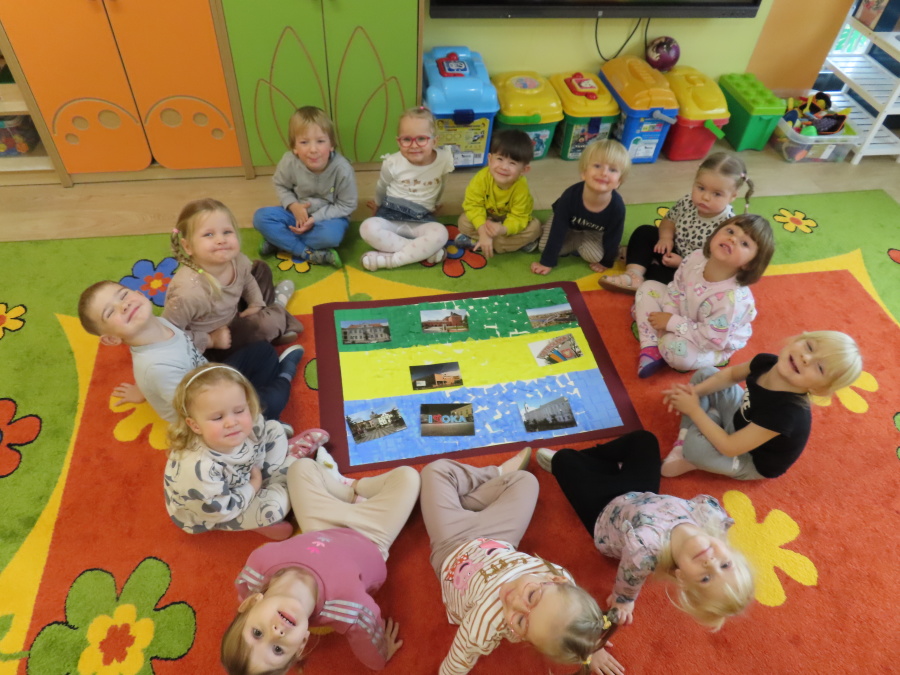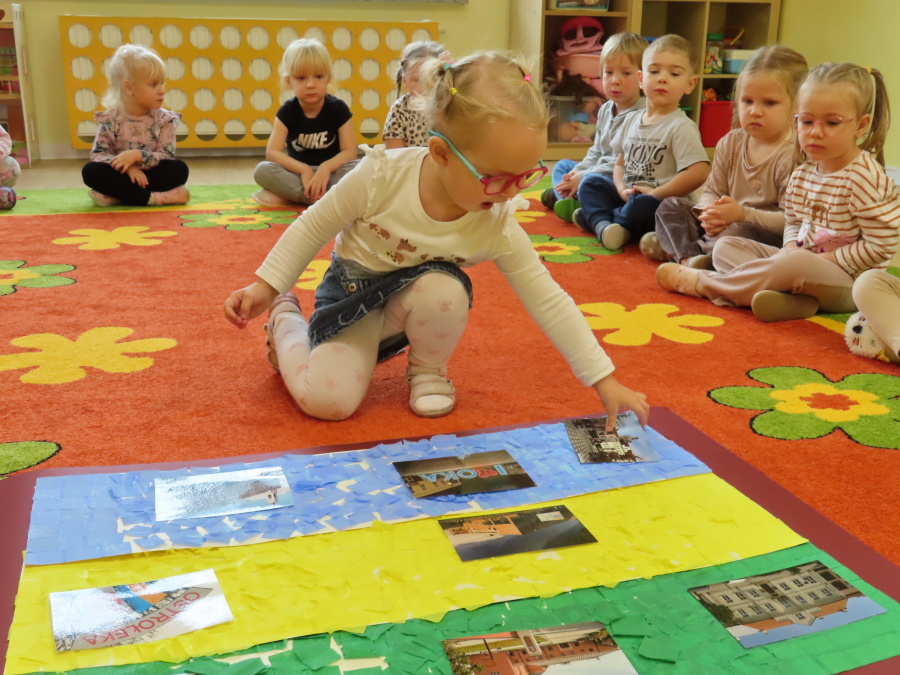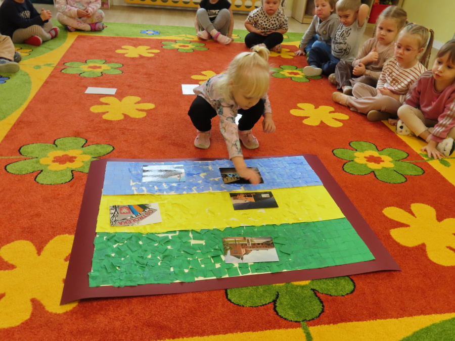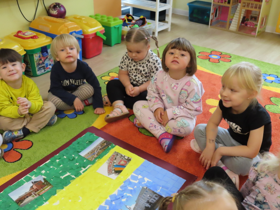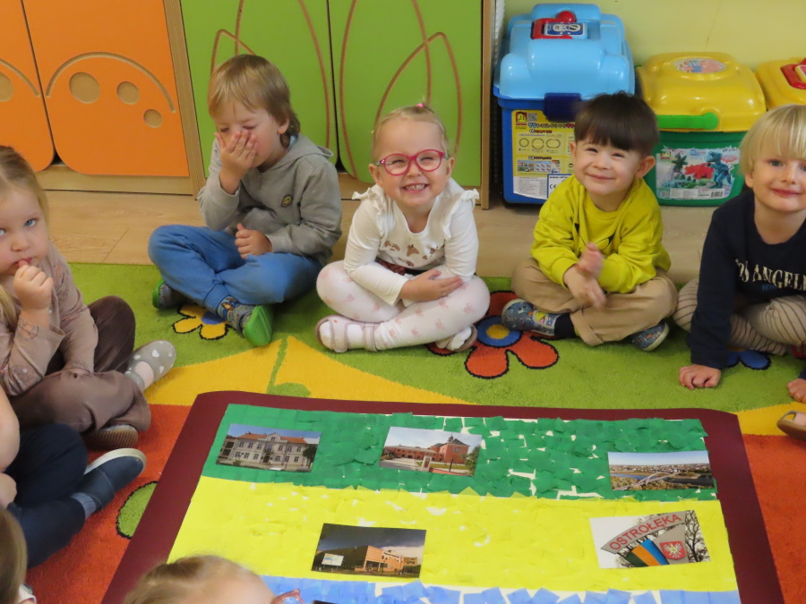 Dzisiaj w Kwiatuszkach odbyły się zajęcia o tematyce regionalnej. Celem zajęć było przybliżenie dzieciom walorów naszego miasta oraz rozwijanie poczucia przynależności do małej ojczyzny. Podczas zajęć dzieci obejrzały zdjęcia przedstawiające znane miejsca w Ostrołęce, takie jak rzeka Narew, most im. Madalińskiego, Pomnik Mauzoleum Bitwy pod Ostrołęką oraz Muzeum Kultury Kurpiowskiej. Przedszkolaki rozmawiały o tym, co najbardziej lubią w swoim mieście i jakie miejsca odwiedzają z rodzicami. W części plastycznej dzieci wykonały wspólną pracę plastyczną. Wyklejały bibułą poszczególne elementy flagi naszego miasta. Następnie dzieci przyklejały obrazki przedstawiające charakterystyczne miejsca w naszym mieście. Praca została zaprezentowana na tablicy w naszym korytarzu. Dzieci poszerzyły wiedzę o swoim mieście i rozwijały umiejętności plastyczne. Doskonaliły umiejętność pracy w zespole.