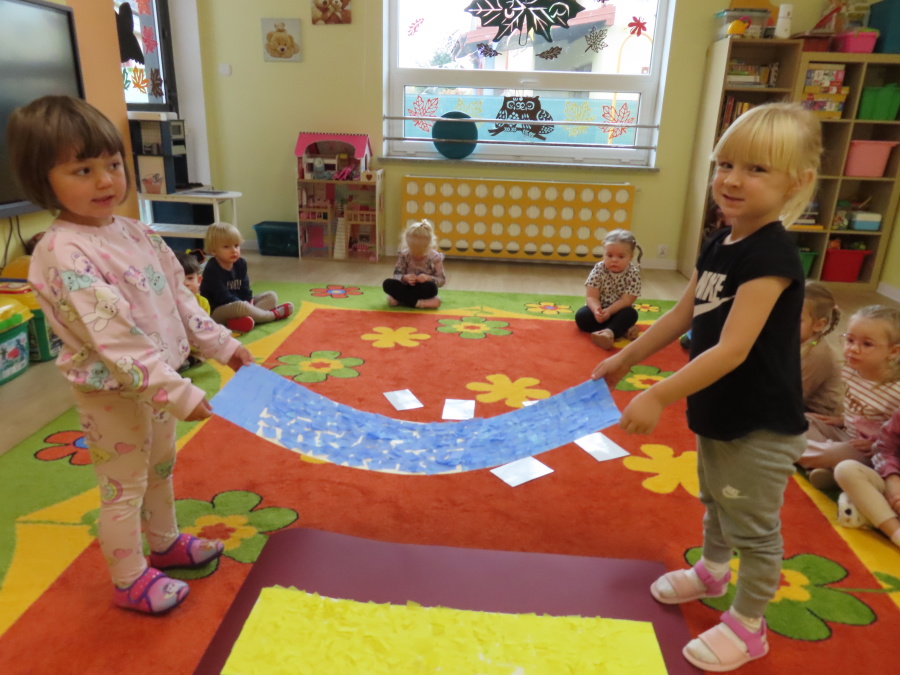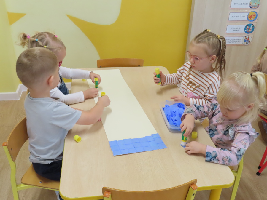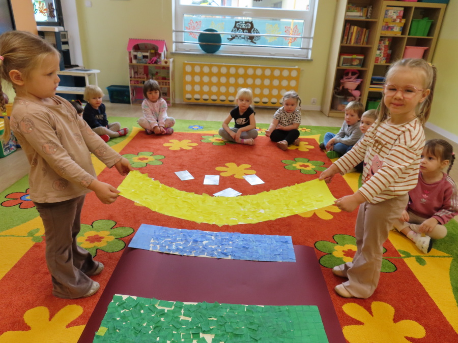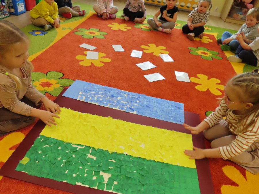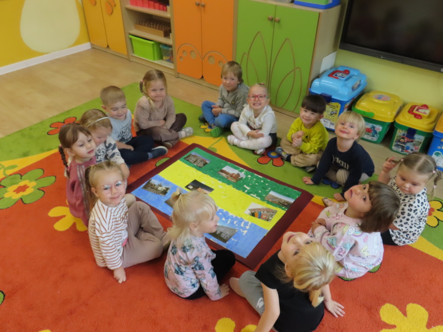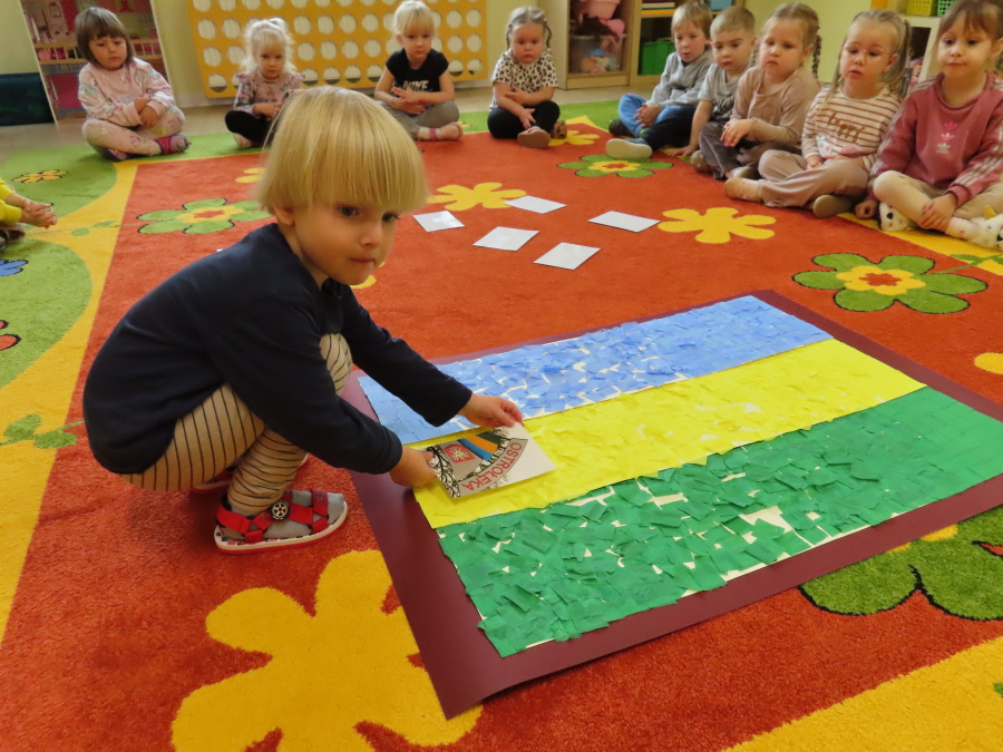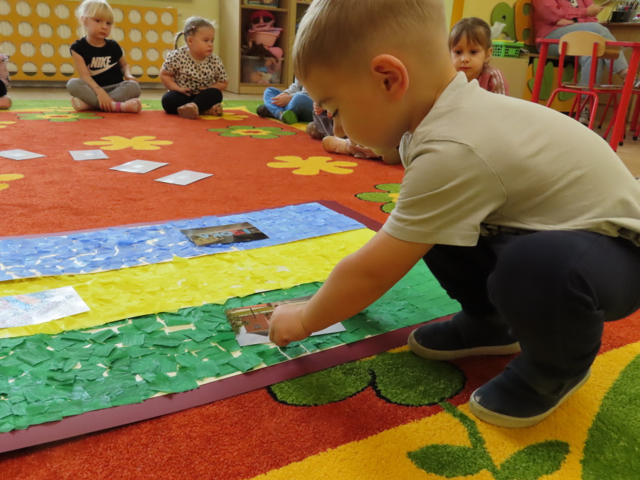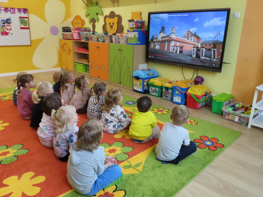 Dzisiaj w Kwiatuszkach odbyły się zajęcia o tematyce regionalnej. Celem zajęć było przybliżenie dzieciom walorów naszego miasta oraz rozwijanie poczucia przynależności do małej ojczyzny. Podczas zajęć dzieci obejrzały zdjęcia przedstawiające znane miejsca w Ostrołęce, takie jak rzeka Narew, most im. Madalińskiego, Pomnik Mauzoleum Bitwy pod Ostrołęką oraz Muzeum Kultury Kurpiowskiej. Przedszkolaki rozmawiały o tym, co najbardziej lubią w swoim mieście i jakie miejsca odwiedzają z rodzicami. W części plastycznej dzieci wykonały wspólną pracę plastyczną. Wyklejały bibułą poszczególne elementy flagi naszego miasta. Następnie dzieci przyklejały obrazki przedstawiające charakterystyczne miejsca w naszym mieście. Praca została zaprezentowana na tablicy w naszym korytarzu. Dzieci poszerzyły wiedzę o swoim mieście i rozwijały umiejętności plastyczne. Doskonaliły umiejętność pracy w zespole.