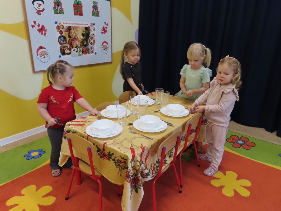 Dziś w naszej grupie panowała prawdziwie świąteczna atmosfera. Dzieci poznały tradycje związane z Wigilią – obejrzały świąteczne dekoracje, dowiedziały się, jak wygląda wigilijny stół i wspólnie ułożyły obrus, zastawę, stroik. Następnie wspólnie ubraliśmy choinkę, która ozdobiła nasz wigilijny stół. Był to magiczny, pełen uśmiechu dzień, który wprowadził nas wszystkich w wyjątkowy, świąteczny nastrój. ????❤️