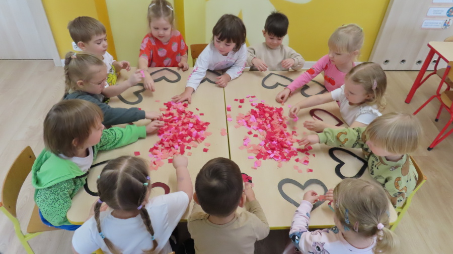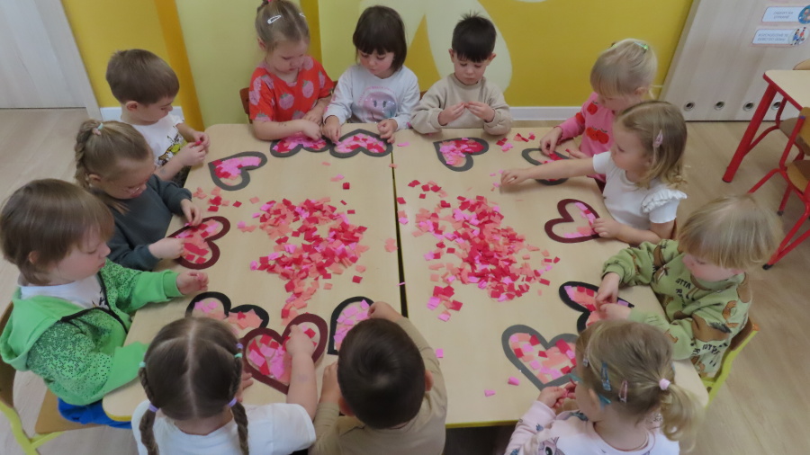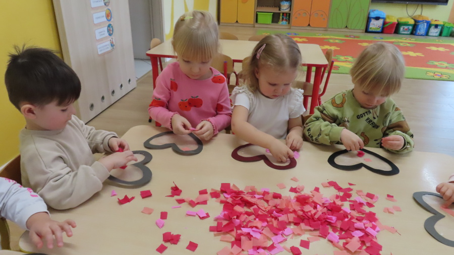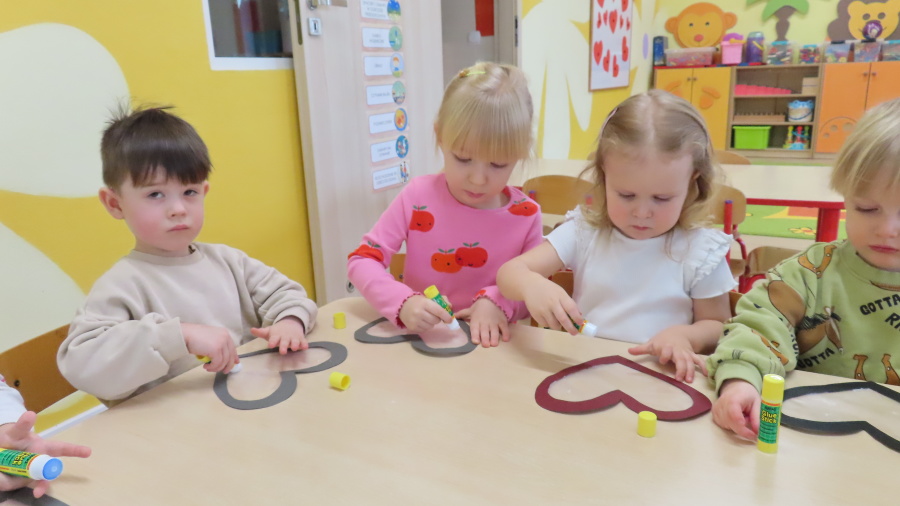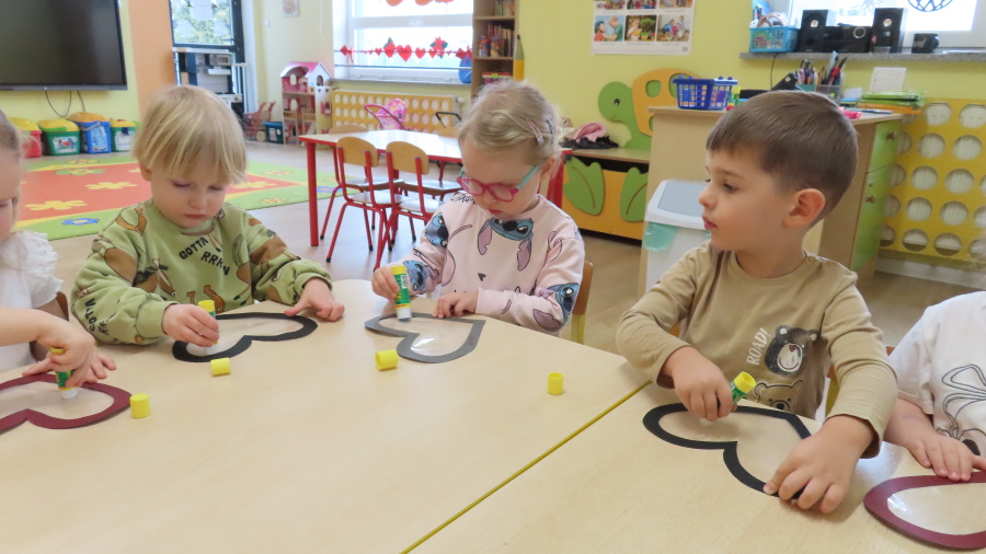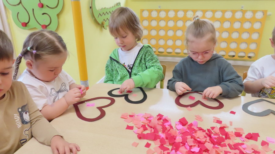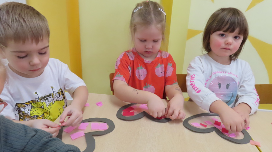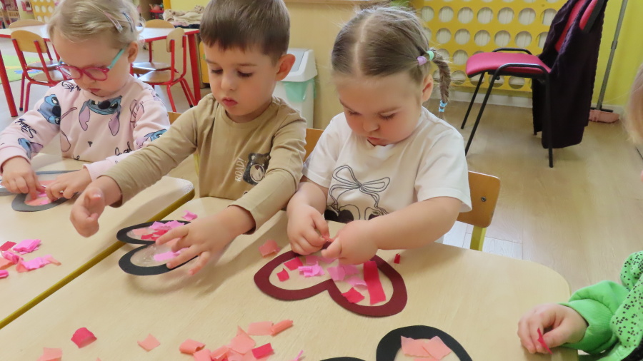 Grupa Kwiatuszki w ramach cyklicznych zajęć z arteterapii przygotowała dziś piękne, walentynkowe serduszka ❤️ Dzieci pracowały na wcześniej przygotowanych szablonach serc, które wyklejały kolorową bibułą. Każdy mały artysta samodzielnie dobierał kolory oraz rozmieszczał kawałki bibuły, ćwicząc przy tym motorykę małą, koncentrację oraz cierpliwość. To były bardzo twórcze i pełne uśmiechu zajęcia!