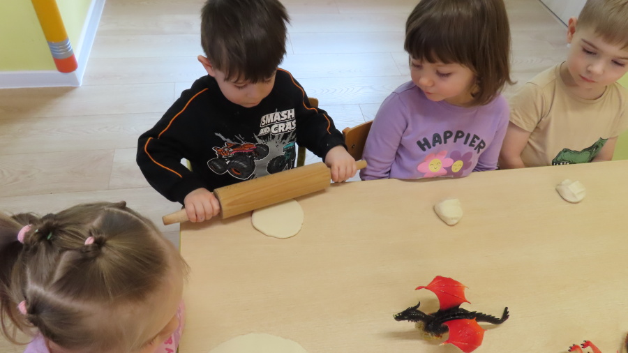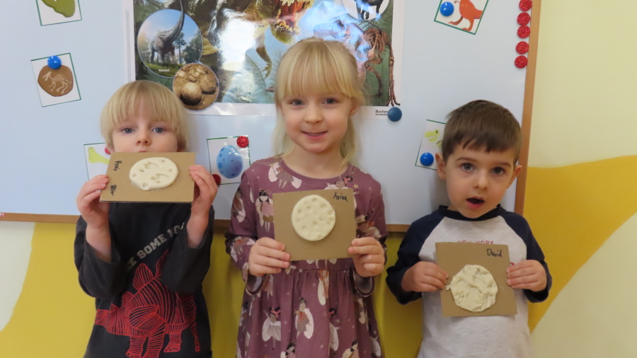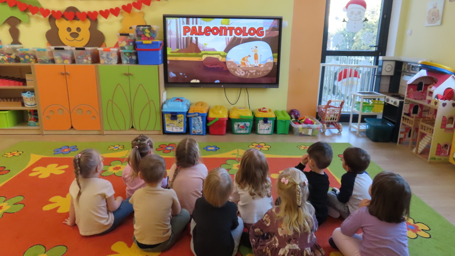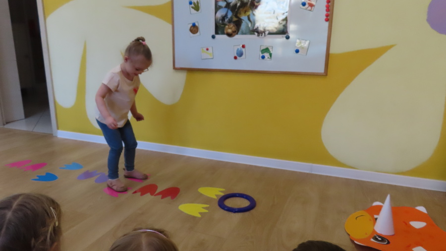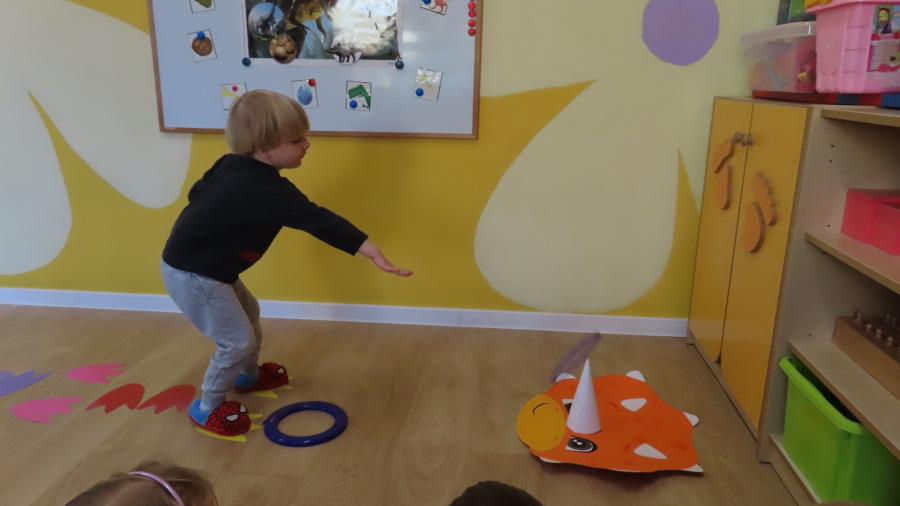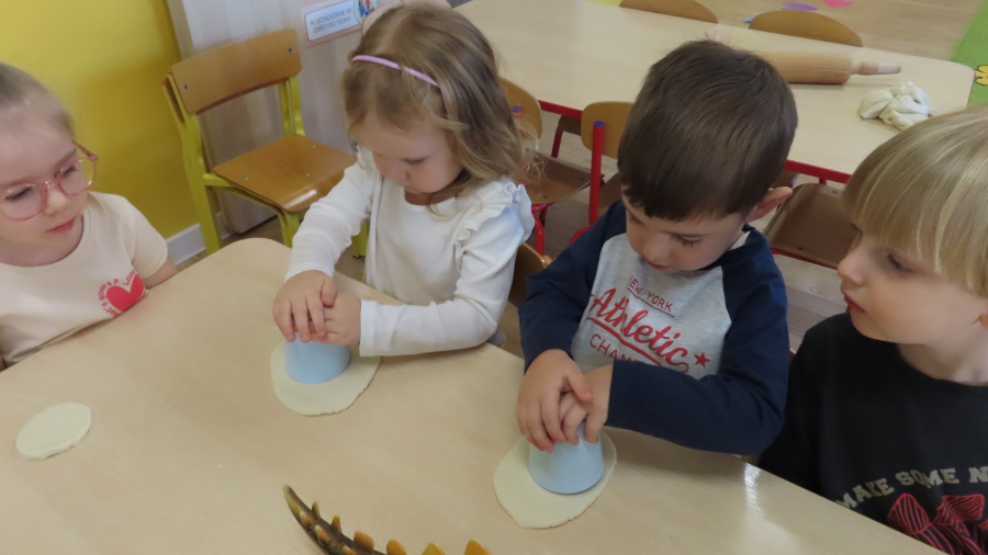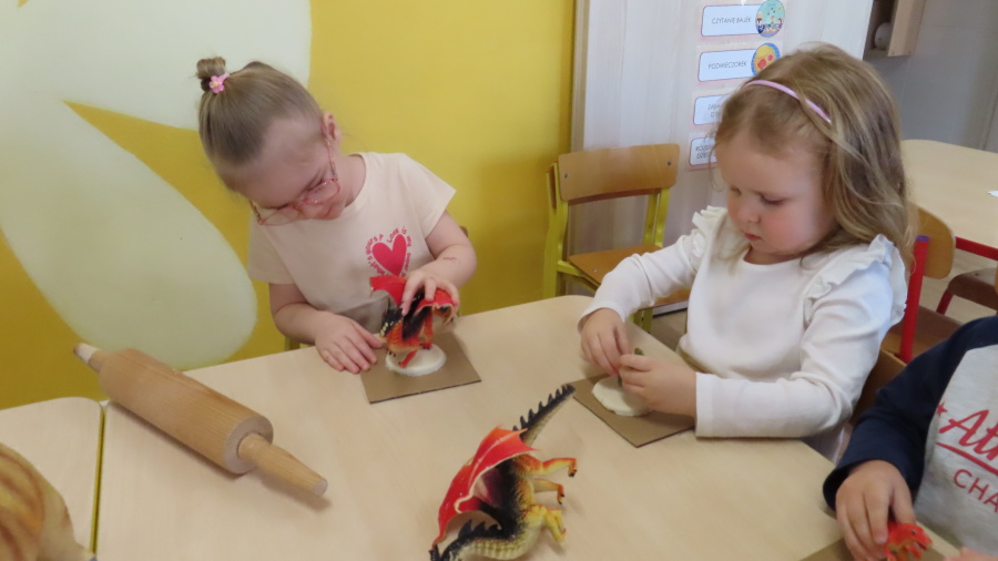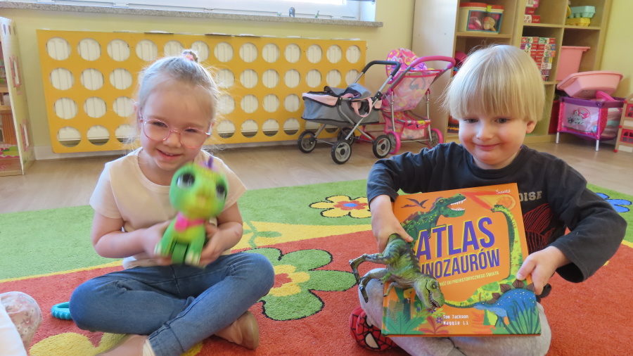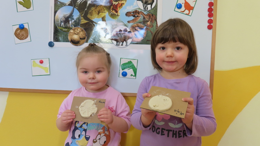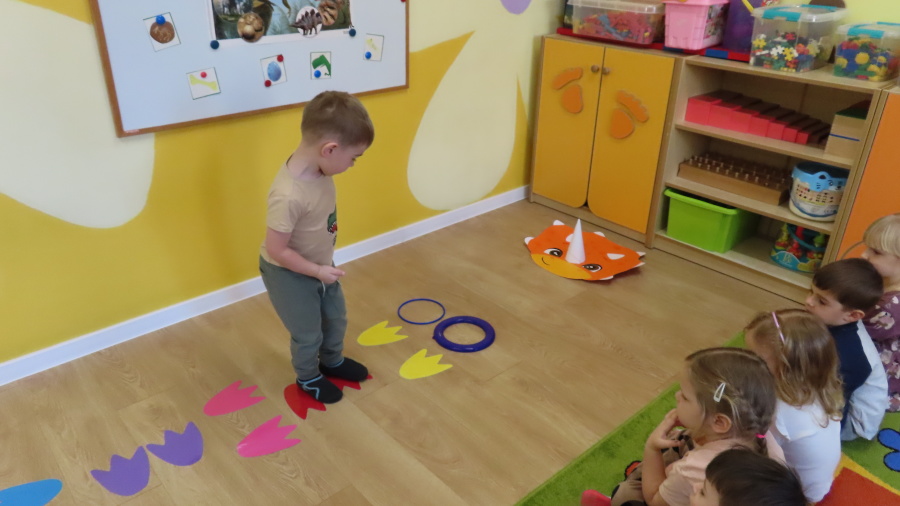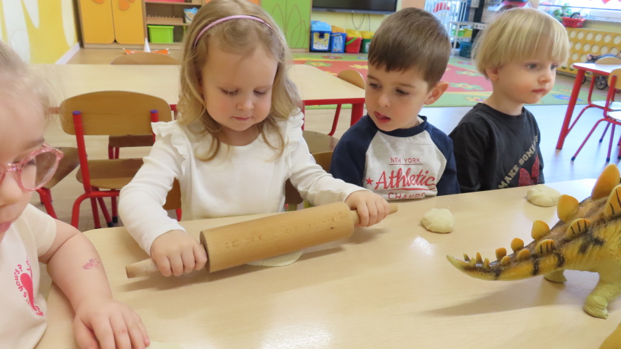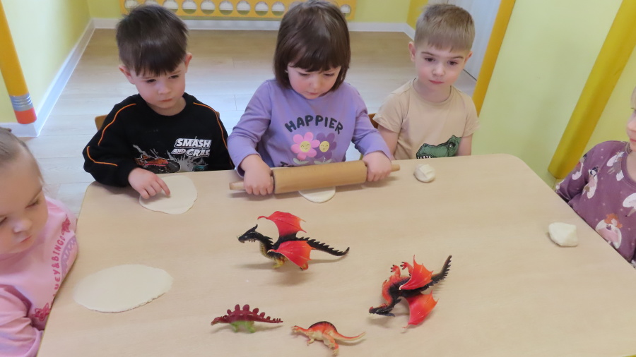 ???? Dzień Dinozaura w naszej grupie ???? Dziś w naszej grupie świętowaliśmy Dzień Dinozaura. Najpierw obejrzeliśmy film edukacyjny, a następnie dzieci skakały po śladach dinozaurów i rzucały obręcz na róg dinozaura. Później paluszkami odszukiwaliśmy ukryte dinozaury oraz z masy solnej wykonywaliśmy ich ślady. Na zakończenie dzieci zaprezentowały przedmioty związane z dinozaurami, które przyniosły z domu. To był bardzo radosny i ciekawy dzień! ????????