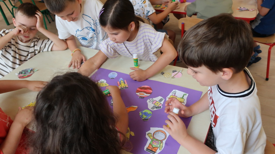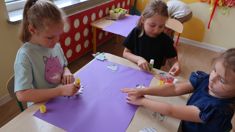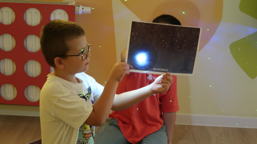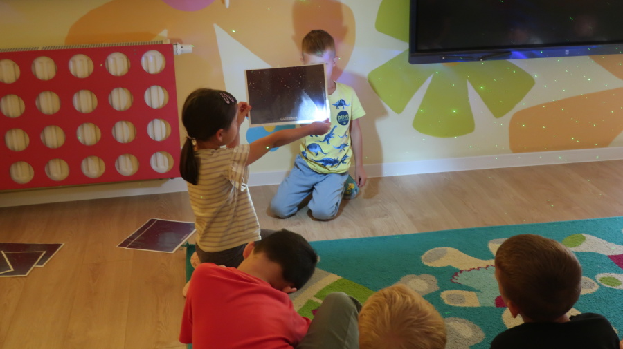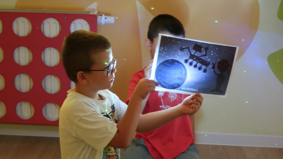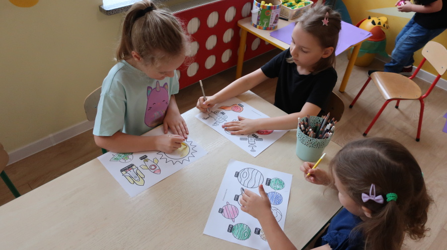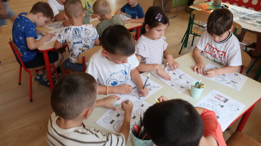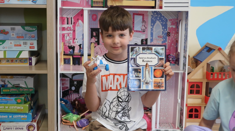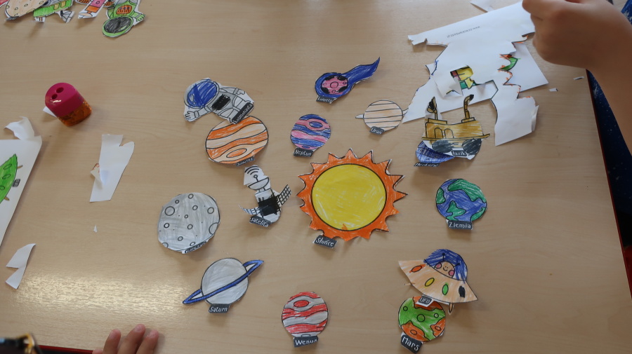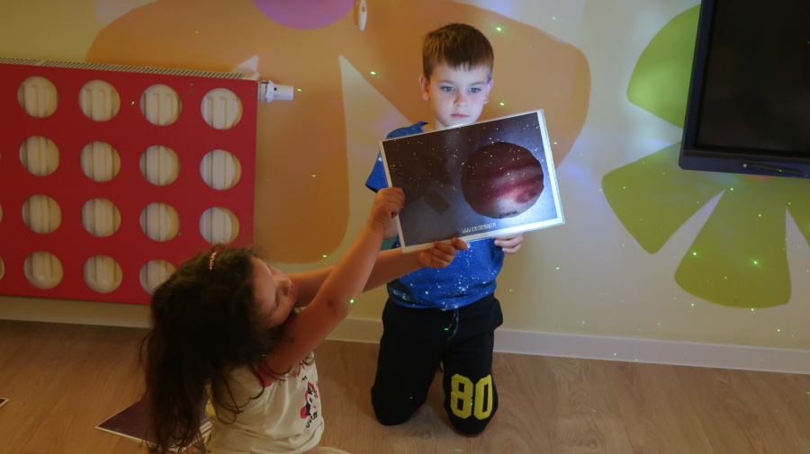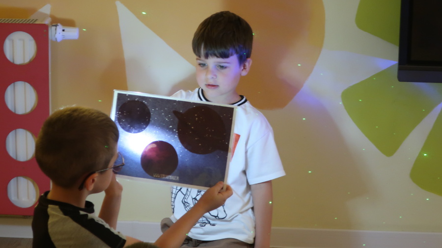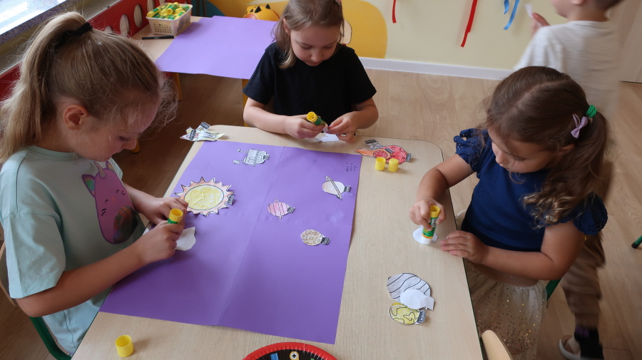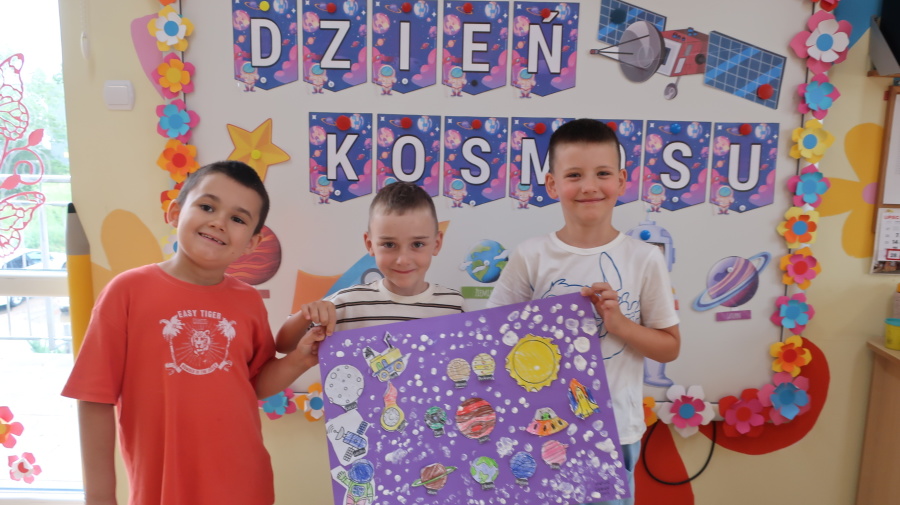 Podczas dzisiejszych zajęć wakacyjnych Misie tajemnice i cuda kosmosu - gwiazdy, planety, rakiety i obiekty kosmiczne.????????????????????????????????????⭐️???? Dzieci układały puzzle związane z kosmosem oraz uczestniczyły w zabawach ruchowych. Wielką radość sprawiło im odszukiwanie obiektów kosmicznych przy użyciu latarki.???? Przedszkolaki podzielone na 3 osobowe grupy wykonywały pracę plastyczną przedstawiającą kosmos oraz obiekty z nimi związane.???? Wszystkie prace można podziwiać w szatni.