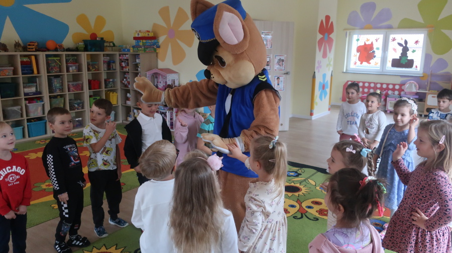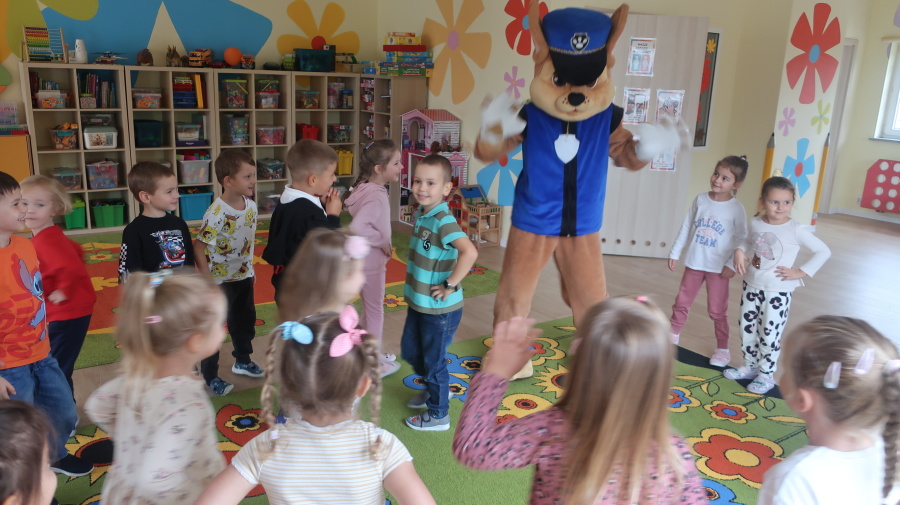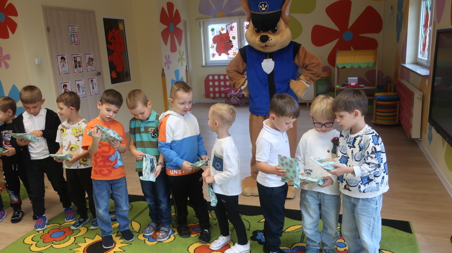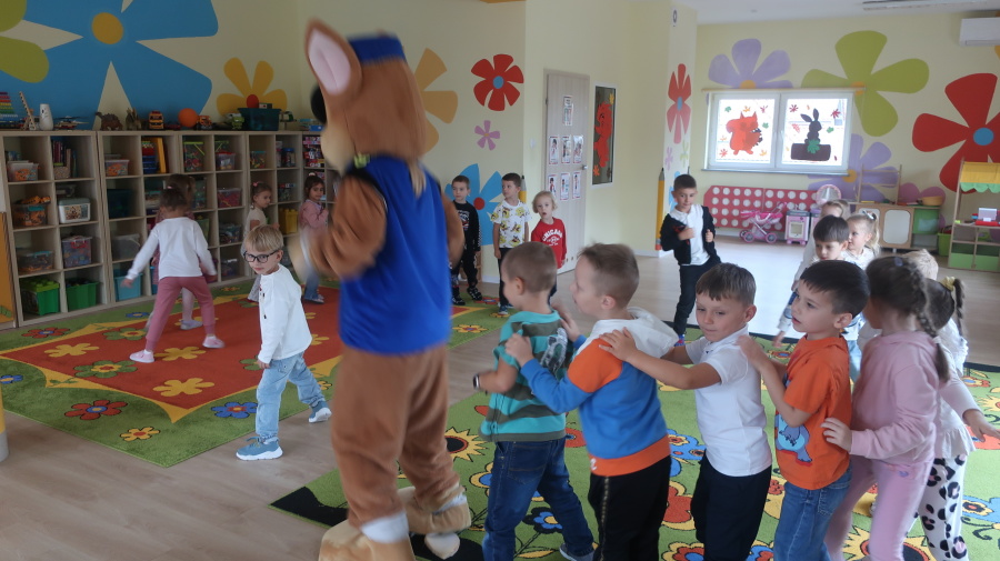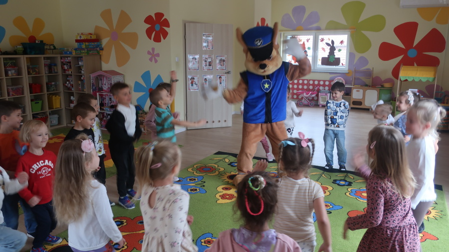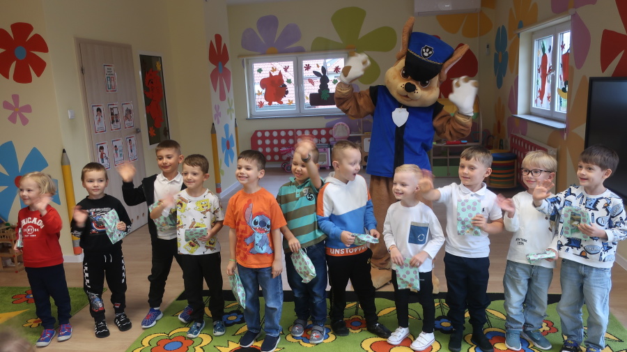 To był radosny dzień! Naszą grupę odwiedził bohater z bajki – Chase z Psiego Patrolu. Wspólnie tańczyliśmy i bawiliśmy się przy muzyce. Dziewczynki wręczyły chłopcom prezenty, a żeby nikomu nie było przykro – one również dostały słodkie lizaki. Później czekały nas wesołe zabawy i tańce, które sprawiły wszystkim mnóstwo radości! ????????????????