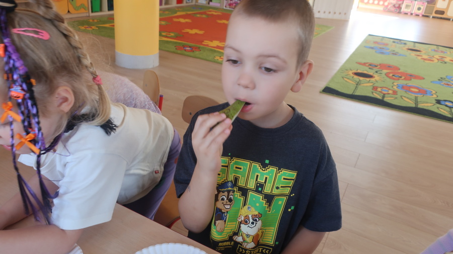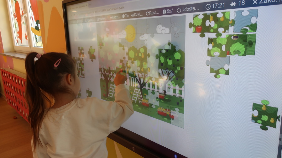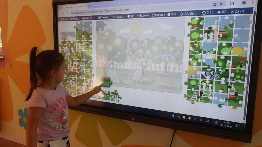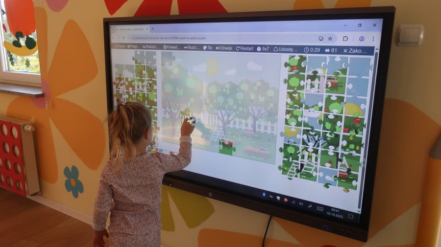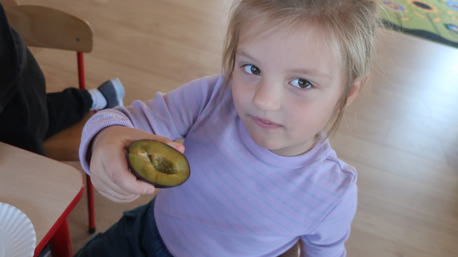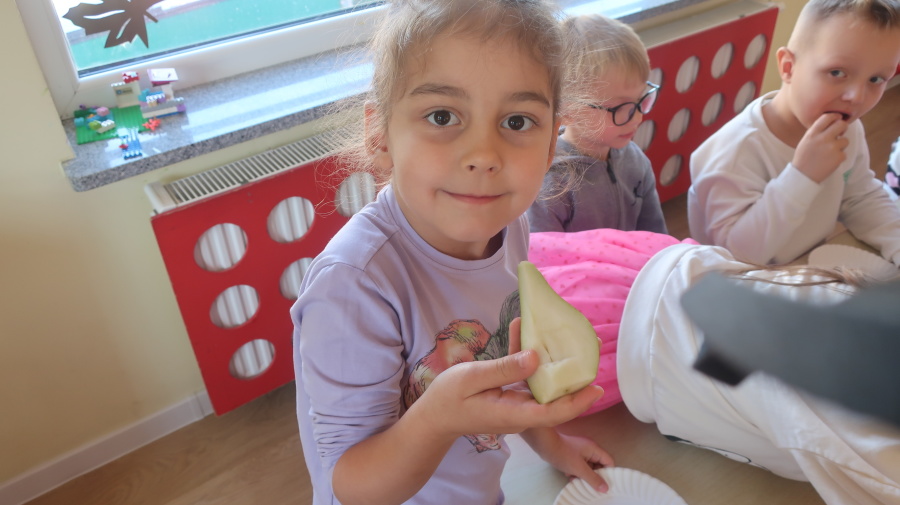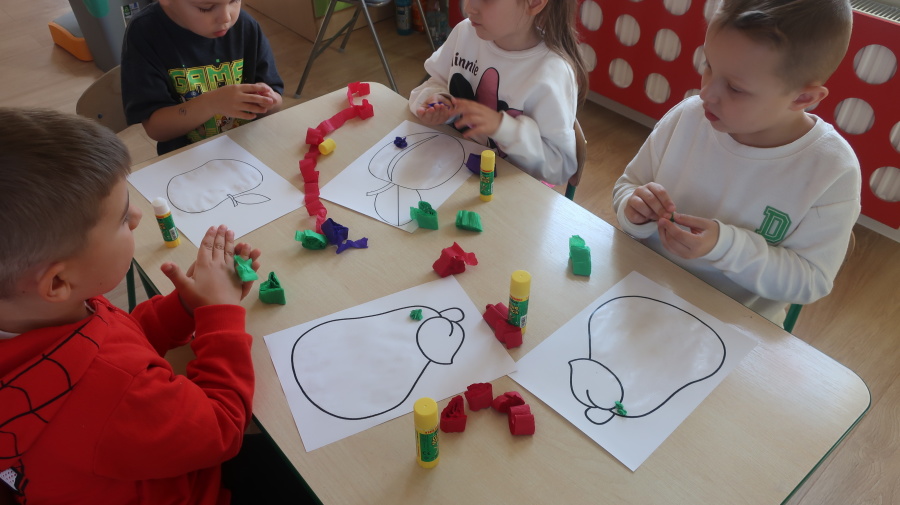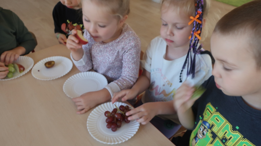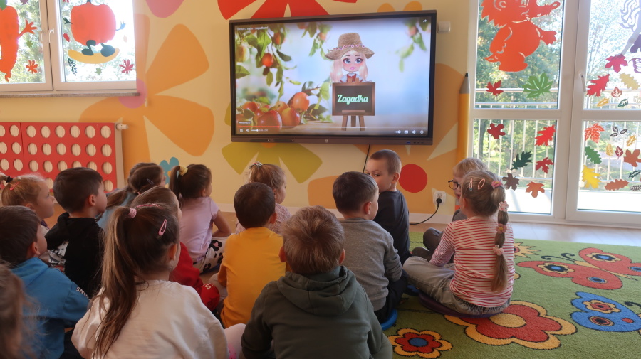 Dziś Misie wybrały się na jesienną wyprawę do sadu! Dzieci dowiedziały się, jakie owoce rosną jesienią w sadzie – jabłka, gruszki, śliwki, a nawet pachnące winogrona. Obejrzały krótki filmik edukacyjny, który pokazał im, jak kolorowo i smacznie jest w sadzie o tej porze roku. Potem przyszedł czas na ucztę – Misie chrupały owoce, które same przyniosły do przedszkola. Było zdrowo, pysznie i bardzo wesoło! ???? Na zakończenie każdy Misiaczek wykonał pracę plastyczną – wyklejanie owoców karteczkami i bibułą. Powstał piękny, kolorowy kosz pełen witamin, który można podziwiać na tablicy przed salą. ????????????