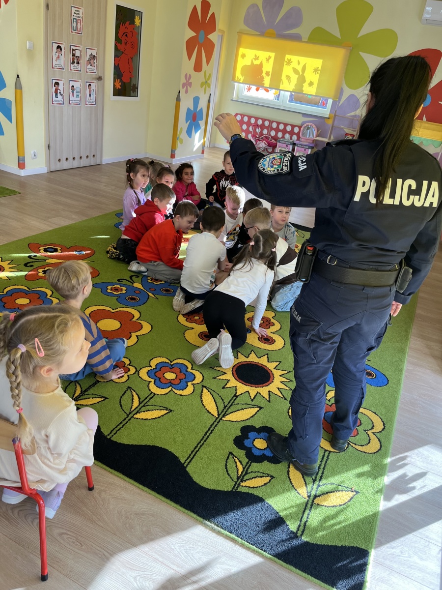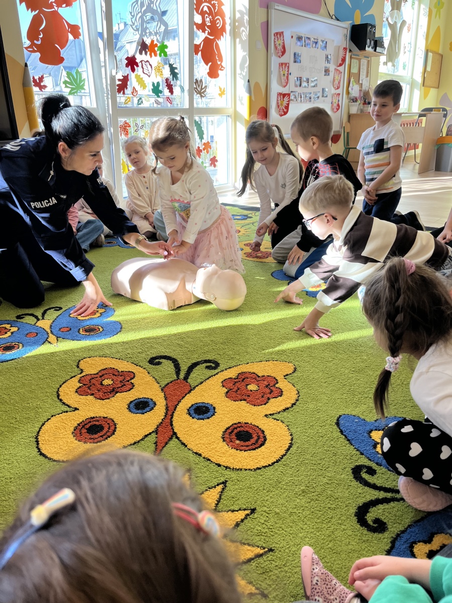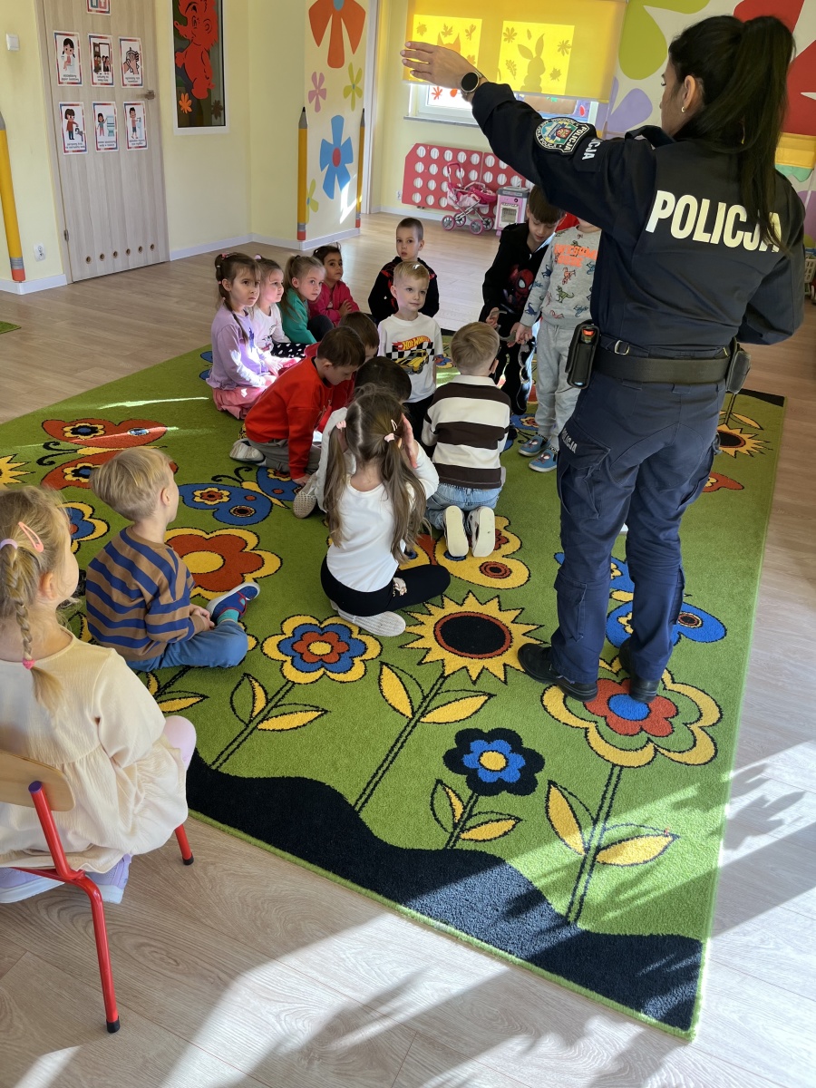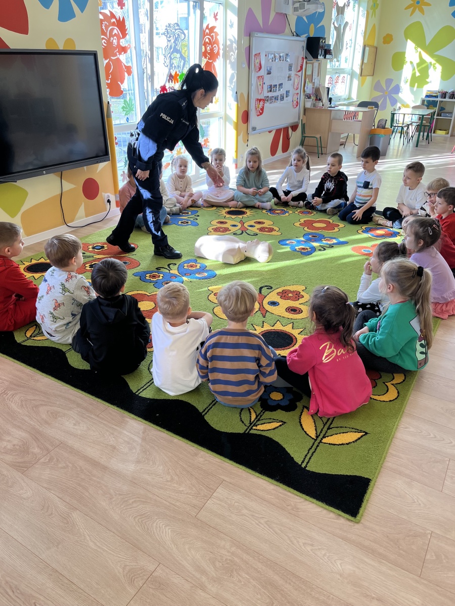 Dziś w naszej grupie „Misiów” odbyły się wyjątkowe zajęcia! Odwiedził nas niezwykły gość – pani policjantka Agnieszka Kwiatkowska, która przeprowadziła z dziećmi bardzo ciekawe spotkanie na temat udzielania pierwszej pomocy. Podczas zajęć dzieci dowiedziały się, jak należy zachować się w sytuacji zagrożenia, jak wezwać pomoc oraz co zrobić, gdy ktoś się skaleczy lub źle się poczuje. Pani policjantka wytłumaczyła też, jak ważne jest zachowanie spokoju i szybkie reagowanie. Dzieci z dużym zainteresowaniem słuchały, zadawały pytania i chętnie uczestniczyły w ćwiczeniach praktycznych. Na zakończenie spotkania wszystkie „Misie” podziękowały pani policjantce za przekazaną wiedzę i poświęcony czas. Serdecznie dziękujemy pani Agnieszce za wspaniałe zajęcia i troskę o bezpieczeństwo naszych przedszkolaków!????????♀️❤️
