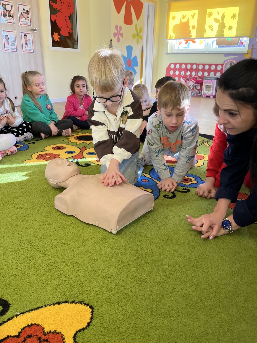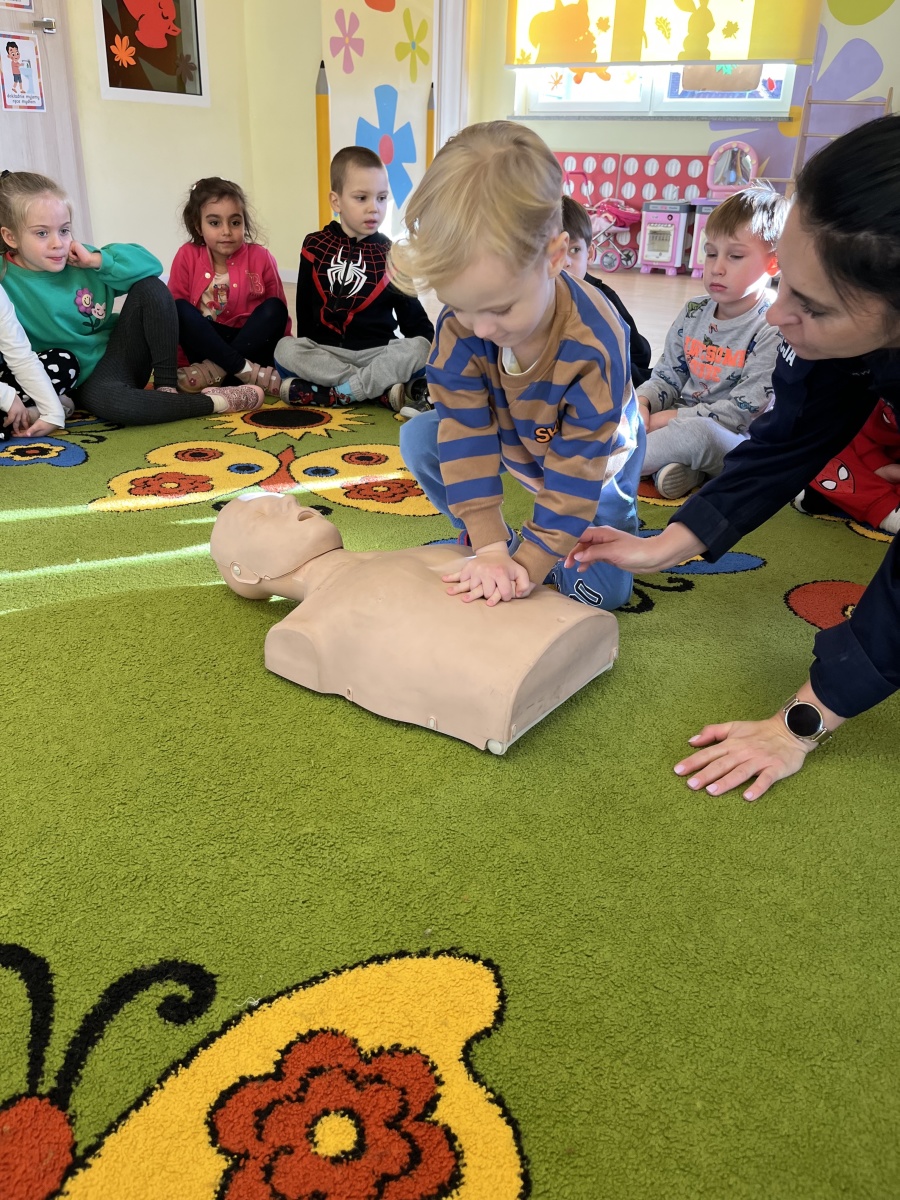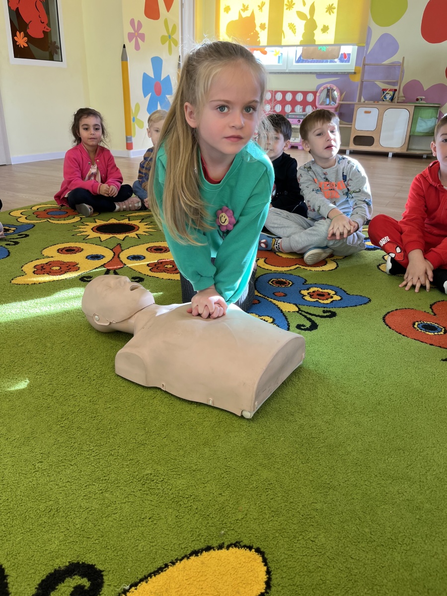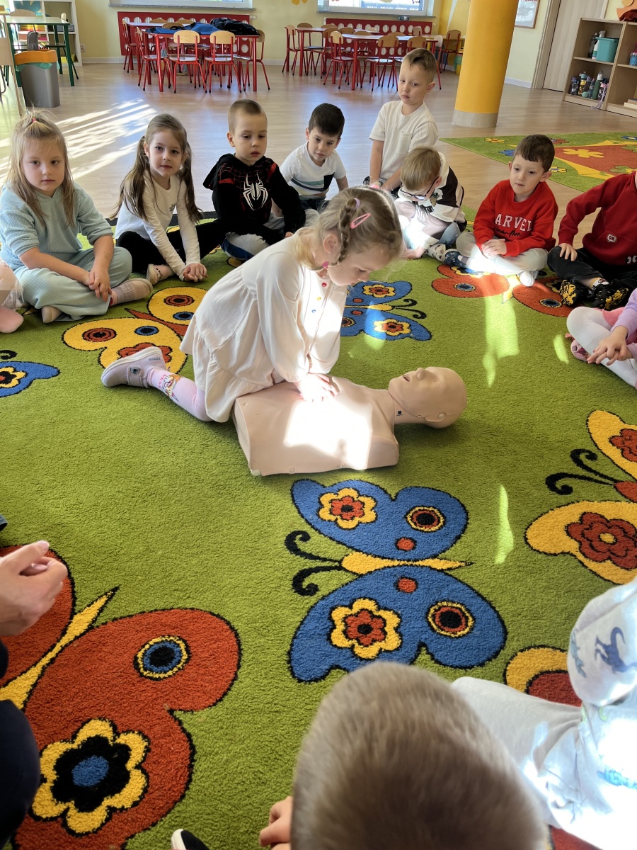 Dziś w naszej grupie „Misiów” odbyły się wyjątkowe zajęcia! Odwiedził nas niezwykły gość – pani policjantka Agnieszka Kwiatkowska, która przeprowadziła z dziećmi bardzo ciekawe spotkanie na temat udzielania pierwszej pomocy. Podczas zajęć dzieci dowiedziały się, jak należy zachować się w sytuacji zagrożenia, jak wezwać pomoc oraz co zrobić, gdy ktoś się skaleczy lub źle się poczuje. Pani policjantka wytłumaczyła też, jak ważne jest zachowanie spokoju i szybkie reagowanie. Dzieci z dużym zainteresowaniem słuchały, zadawały pytania i chętnie uczestniczyły w ćwiczeniach praktycznych. Na zakończenie spotkania wszystkie „Misie” podziękowały pani policjantce za przekazaną wiedzę i poświęcony czas. Serdecznie dziękujemy pani Agnieszce za wspaniałe zajęcia i troskę o bezpieczeństwo naszych przedszkolaków!????????♀️❤️