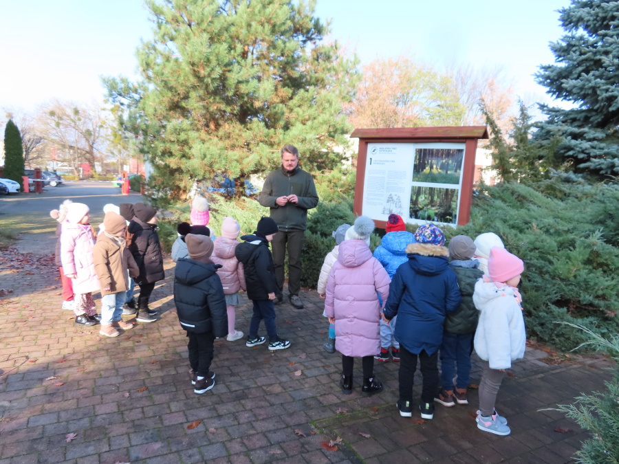 Dziś nasze Misie wybrały się na wycieczkę do Nadleśnictwa. Na miejscu przywitał nas pan leśniczy, który przeprowadził bardzo ciekawą lekcję przyrodniczą o tym, jak zwierzęta przygotowują się do zimy i gdzie spędzają ten chłodny czas. Dzieci dowiedziały się, że niektóre zwierzęta, takie jak niedźwiedzie, jeże czy borsuki, zapadają w sen zimowy, a inne – jak sarny czy lisy – przez całą zimę są aktywne i muszą szukać pożywienia. Pan leśniczy pokazał różne zimowe domy zwierząt, opowiedział, czym się żywią i na jak długo zasypiają. Na zakończenie zajęć misie mogły zadawać pytania i obejrzeć zdjęcia oraz makiety leśnych zwierząt. To była bardzo interesująca i pouczająca wycieczka! ????????❄️