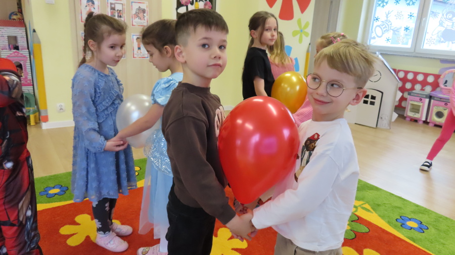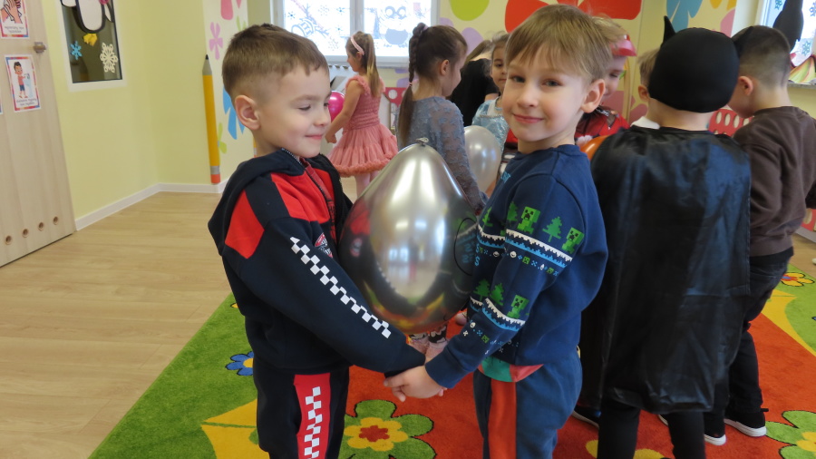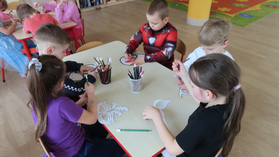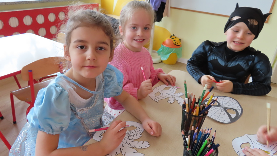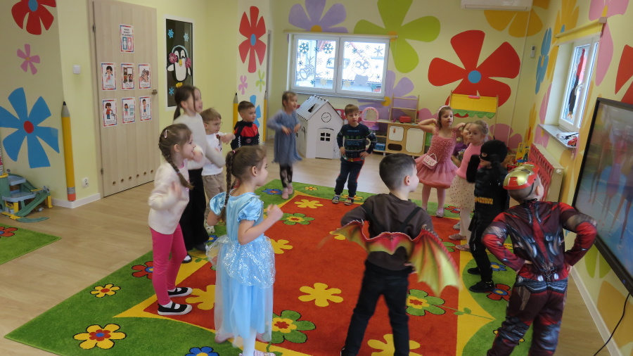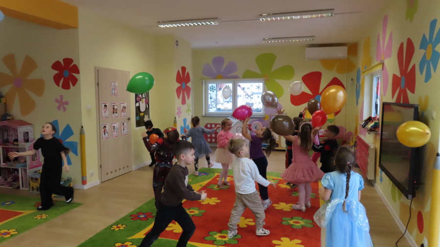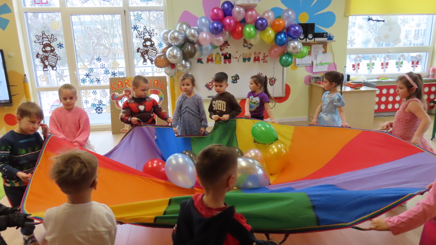 Dziś dzieci z grupy Misiów uczestniczyły w zajęciach poświęconych karnawałowi. ????????Przedszkolaki przebrały się w wybrane przez siebie postacie z bajek. Podczas zajęć nie zabrakło tańców, zabaw z chustą animacyjną oraz tańców w parach z balonami. Następnie dzieci wykonały kolorowe maski karnawałowe. Były to bardzo radosne i udane zajęcia, pełne uśmiechu i dobrej zabawy.