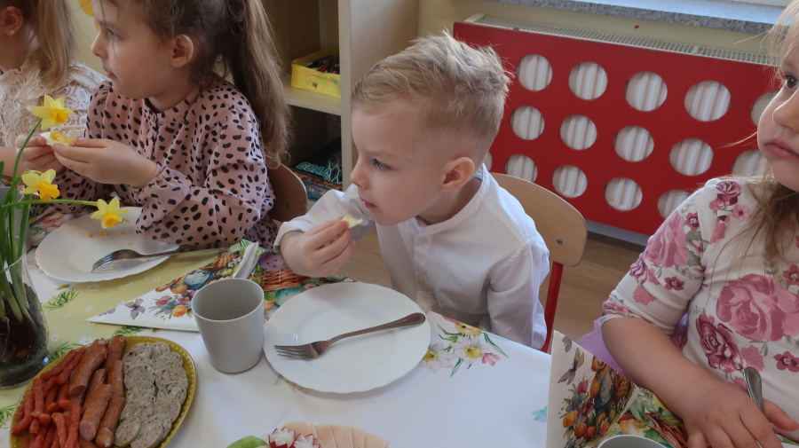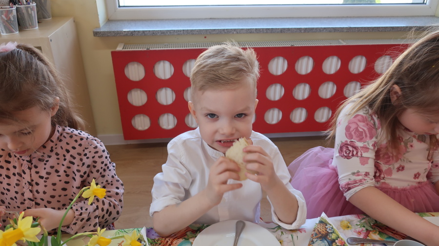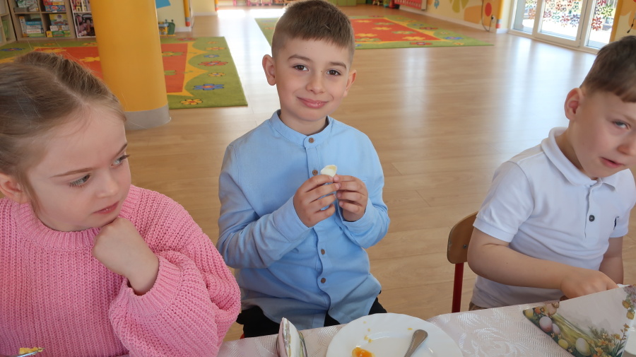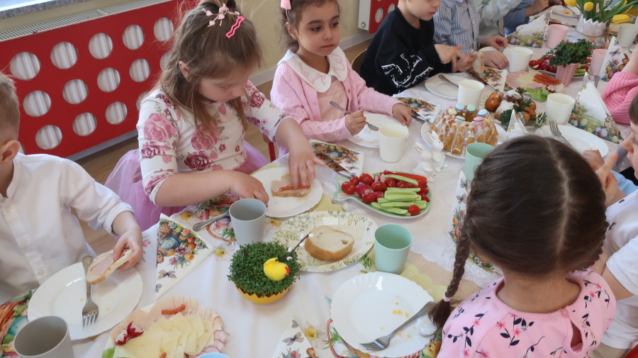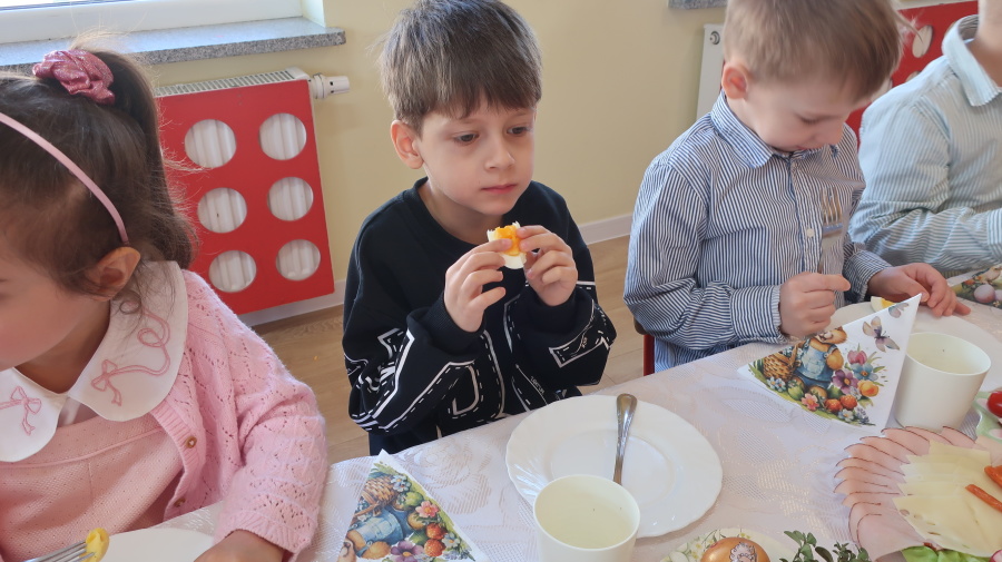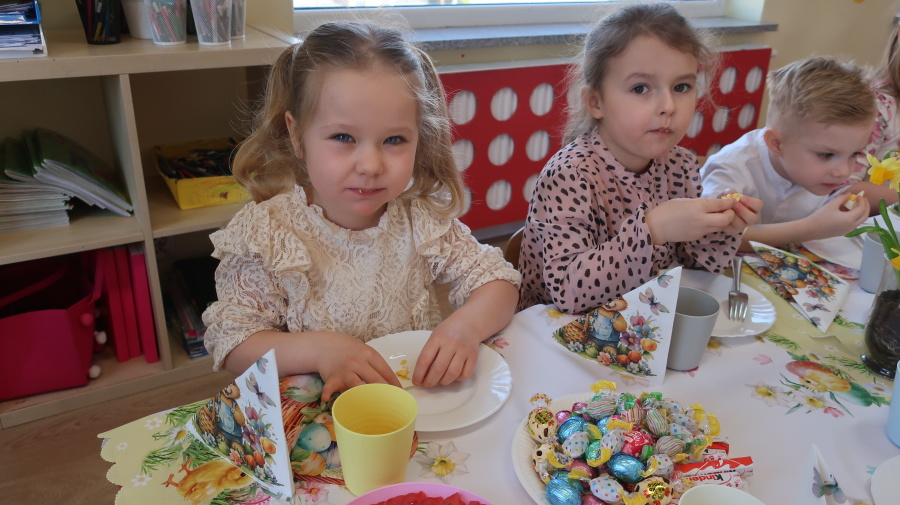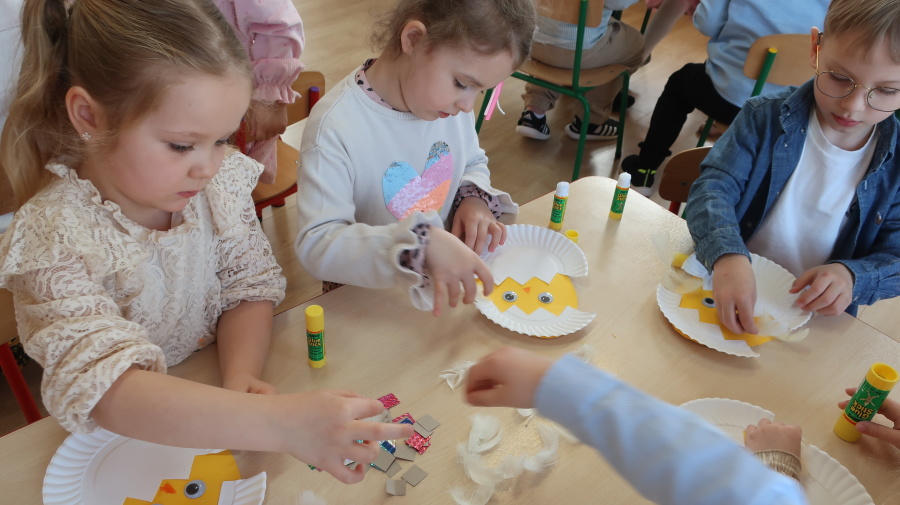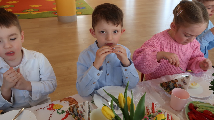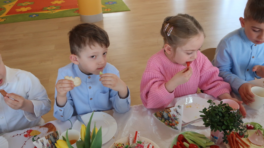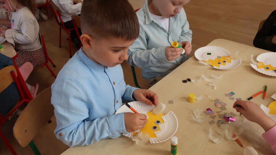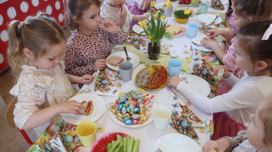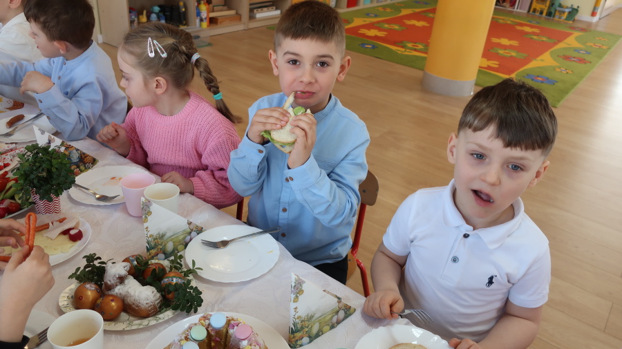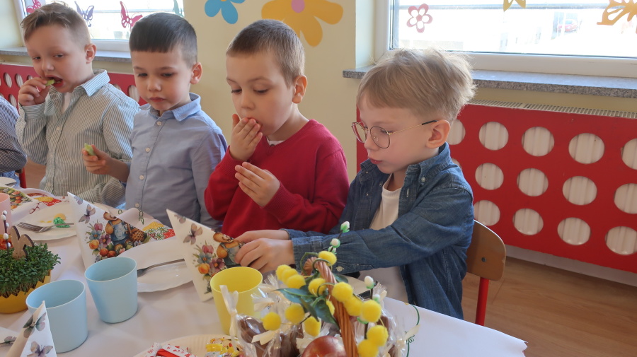 Tradycje wielkanocne w grupie Misiów ???? Dzisiejsze zajęcia w grupie Misiów poświęcone były tematyce tradycji wielkanocnych, ze szczególnym uwzględnieniem koszyczka wielkanocnego. Dzieci poznały, jakie produkty wkładamy do koszyczka oraz jakie mają one znaczenie. Następnie przedszkolaki wspólnie zasiadły do uroczystego śniadania wielkanocnego. Dzięki zaangażowaniu Rodziców, którzy przynieśli potrzebne produkty, mogliśmy stworzyć wyjątkową, świąteczną atmosferę. Serdecznie dziękujemy za pomoc i wsparcie! Po śniadaniu dzieci wykonały pracę plastyczną – wielkanocnego kurczaczka, rozwijając swoją kreatywność i zdolności manualne. To był bardzo miły, świąteczny dzień pełen radości, wspólnego świętowania i nauki. ????????