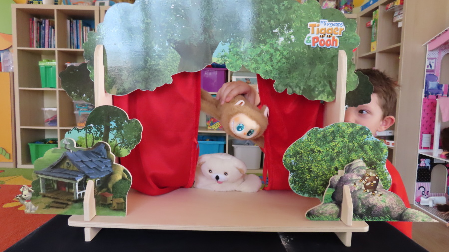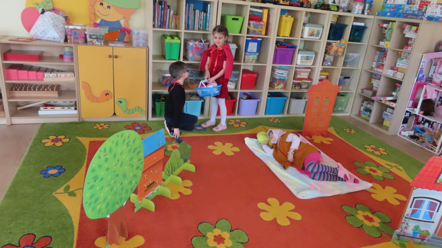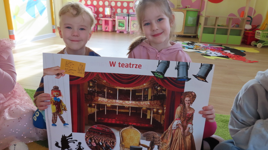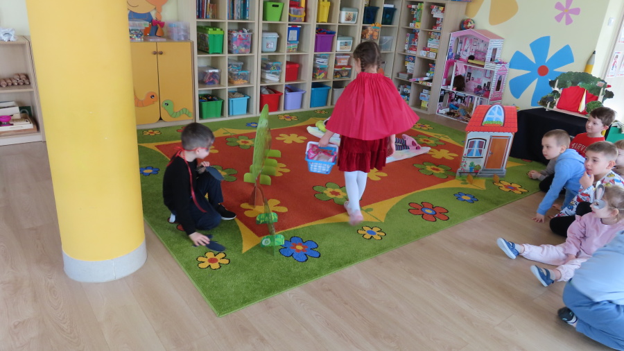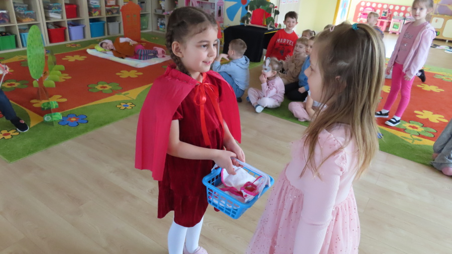 Dzisiejszy dzień w naszej grupie upłynął pod hasłem „Magia kina i teatru”. Dzieci zapoznały się z zasadami właściwego zachowania w teatrze – dowiedziały się, jak należy zachowywać się podczas przedstawienia, dlaczego ważna jest cisza na widowni oraz w jaki sposób okazujemy aktorom uznanie po występie. Rozmawialiśmy również o różnych rodzajach przedstawień teatralnych. Dzieci poznały między innymi teatr lalek, teatr cieni oraz teatr z udziałem żywych aktorów. Dowiedziały się, że teatr to miejsce pełne wyobraźni, emocji i niezwykłych historii. Największą atrakcją dnia był teatrzyk przygotowany przez same dzieci. Mali aktorzy z ogromnym zaangażowaniem zaprezentowali przedstawienie pt. „Czerwony Kapturek”. Dzieci wcieliły się w role bohaterów, używały przygotowanych rekwizytów i z wielką radością odgrywały swoje role. Występ sprawił wszystkim wiele radości i pozwolił poczuć prawdziwą atmosferę teatru.