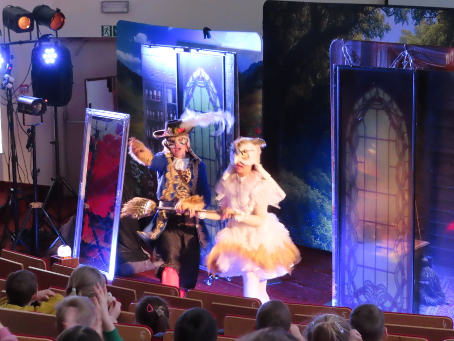 Kropeczki i Misie uczestniczyły dzisiaj w spektaklu pt. \"Kot w butach\" w Wyższej Szkole Administracji Publicznej w Ostrołęce. ????????Spektakl zaprezentowany został przez Teatr Współczesny w pomysłowej i zabawnej formie. Lekkie, dynamiczne i dowcipne przedstawienie zawładnęło sercami najmłodszych widzów. Dzieci na podstawie tej bajki przekonują się, że inteligencja, bystrość umysłu i wiara w siebie znaczą więcej niż bezwzględna siła czy podstępna moc.